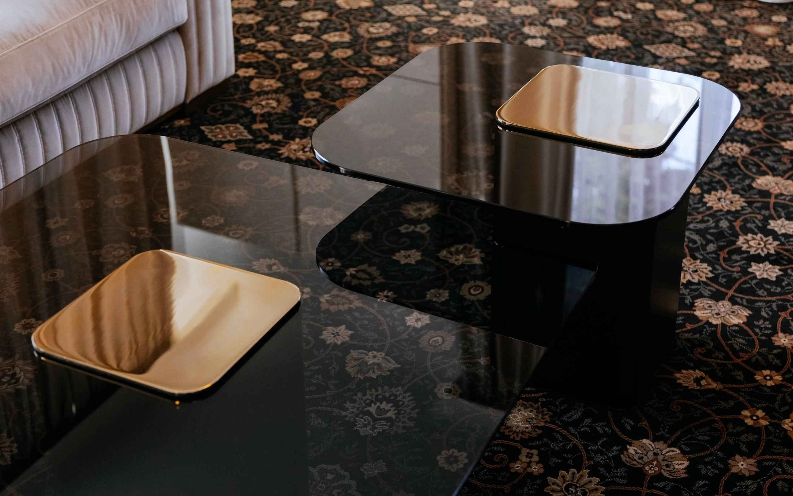 Ниската маса QUADRI TONDO е част от колекцията на италианския производител VIBIEFFE. Основа от дърво в черен финиш. Плот от опушено стъкло с метален детайл от месинг.