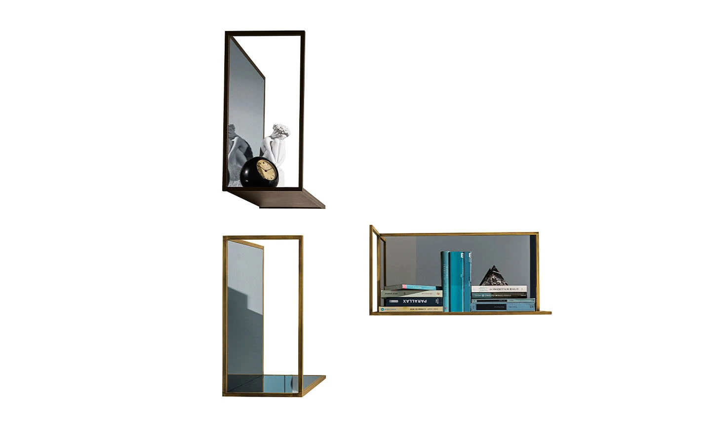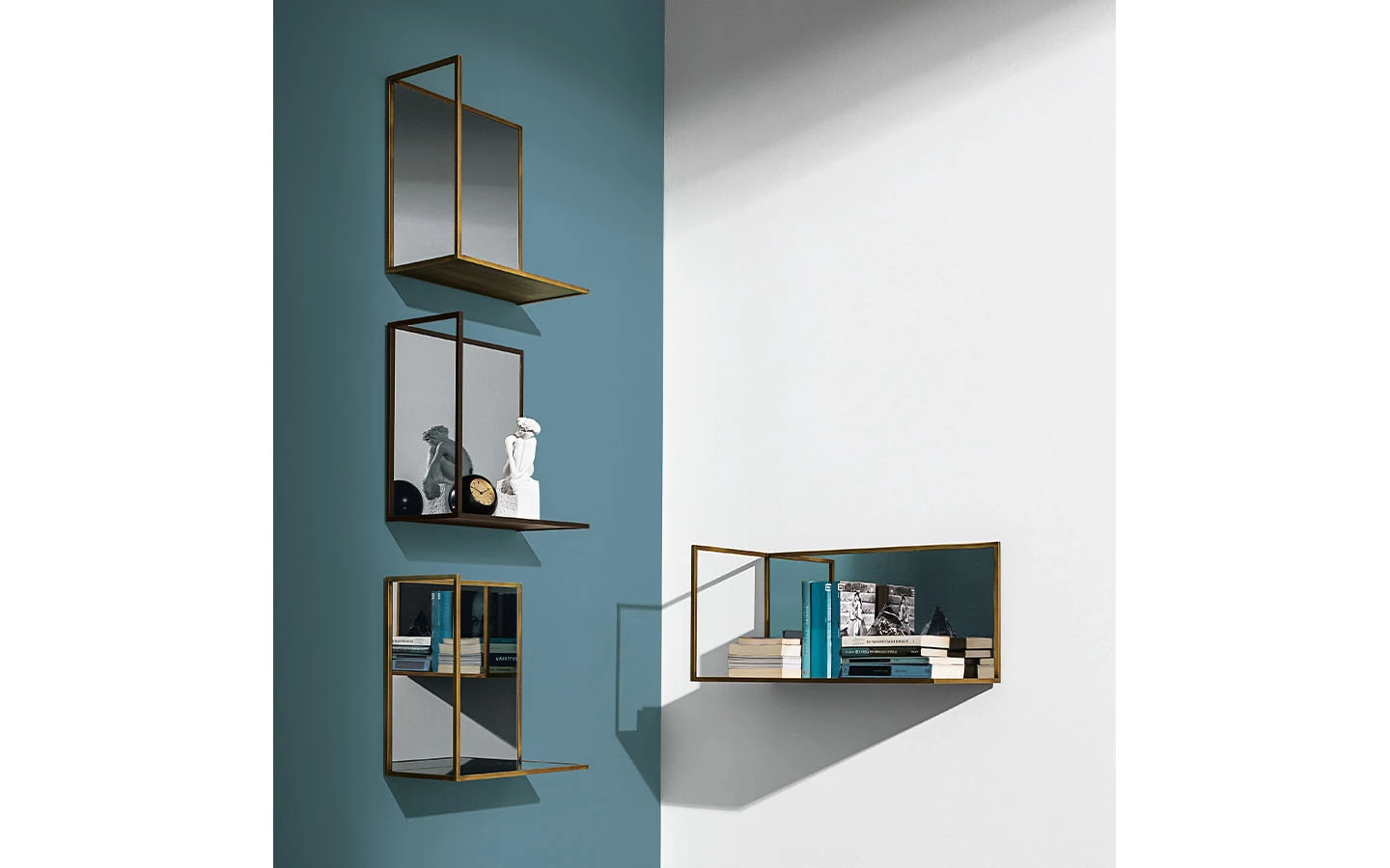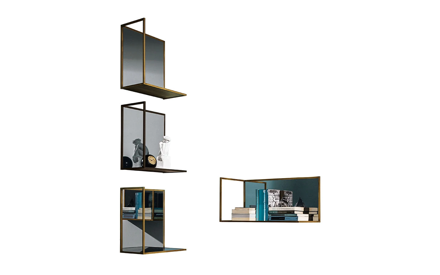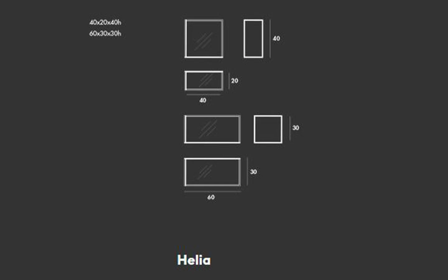 Изтънчената и минималистична структура на HELIA е обогатена с рафтове от бронзово или опушено огледало, което придава изключителен чар на интериора. Двата размера и различните ширини позволяват разнообразни приложения и комбинации.