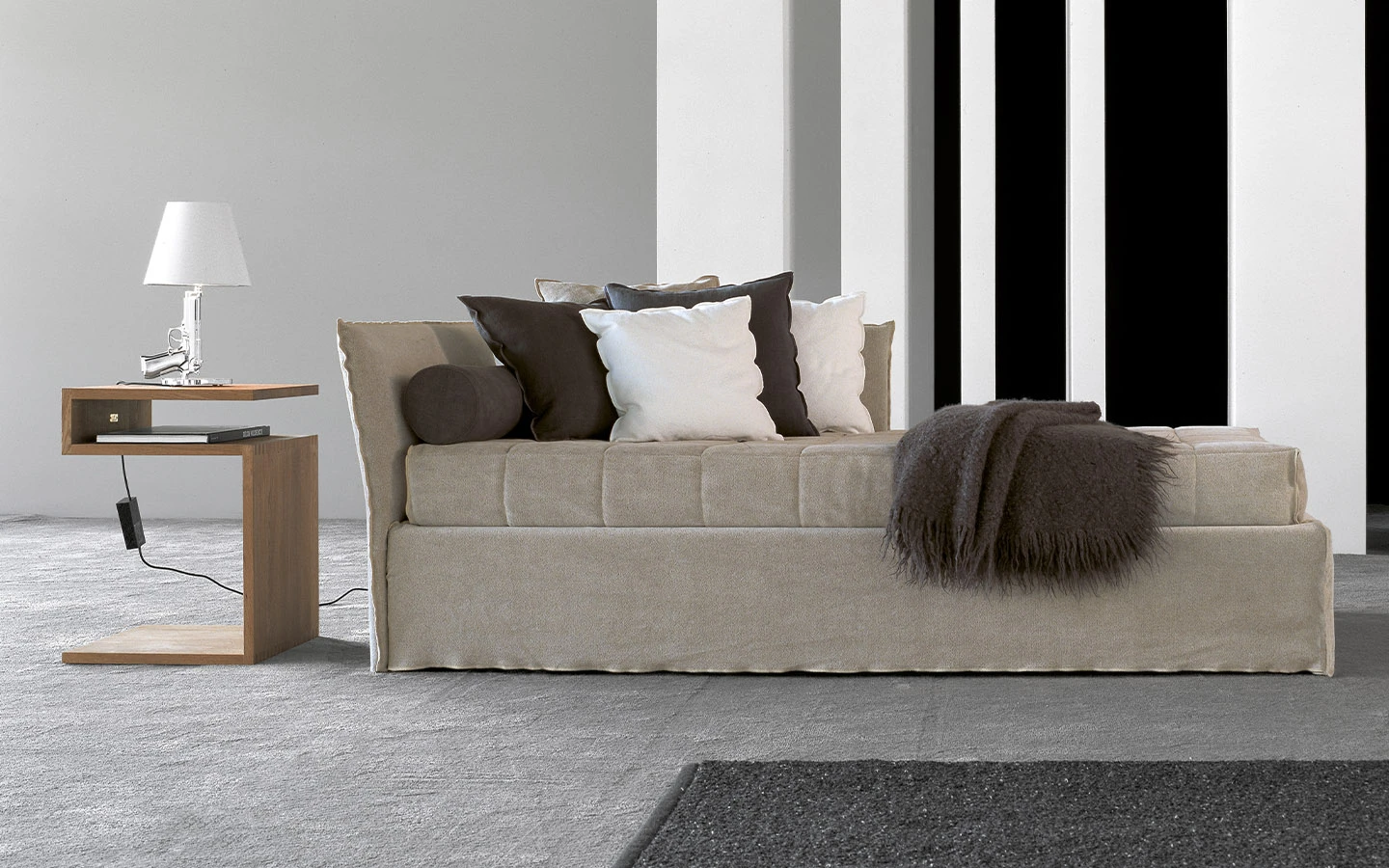 LAZY DAY BED от Flexteam е стилен разтегателен диван, проектиран за комфорт и елегантност, отразявайки ангажимента на марката към висококачествена изработка. Модерният му дизайн включва изчистени линии и изчистена форма, което го прави универсално допълнение към съвременни интериори. Гъвкавият му дизайн му позволява да служи като легло, лежанка или диван, правейки го подходящ както за жилищни, така и за обществени помещения. LAZY DAY BED от Flexteam е елегантен и функционален избор за тези, които търсят изтънчена, но удобна мебел.
