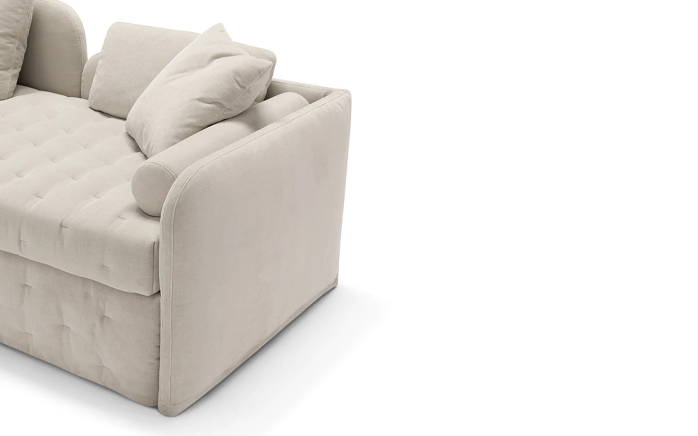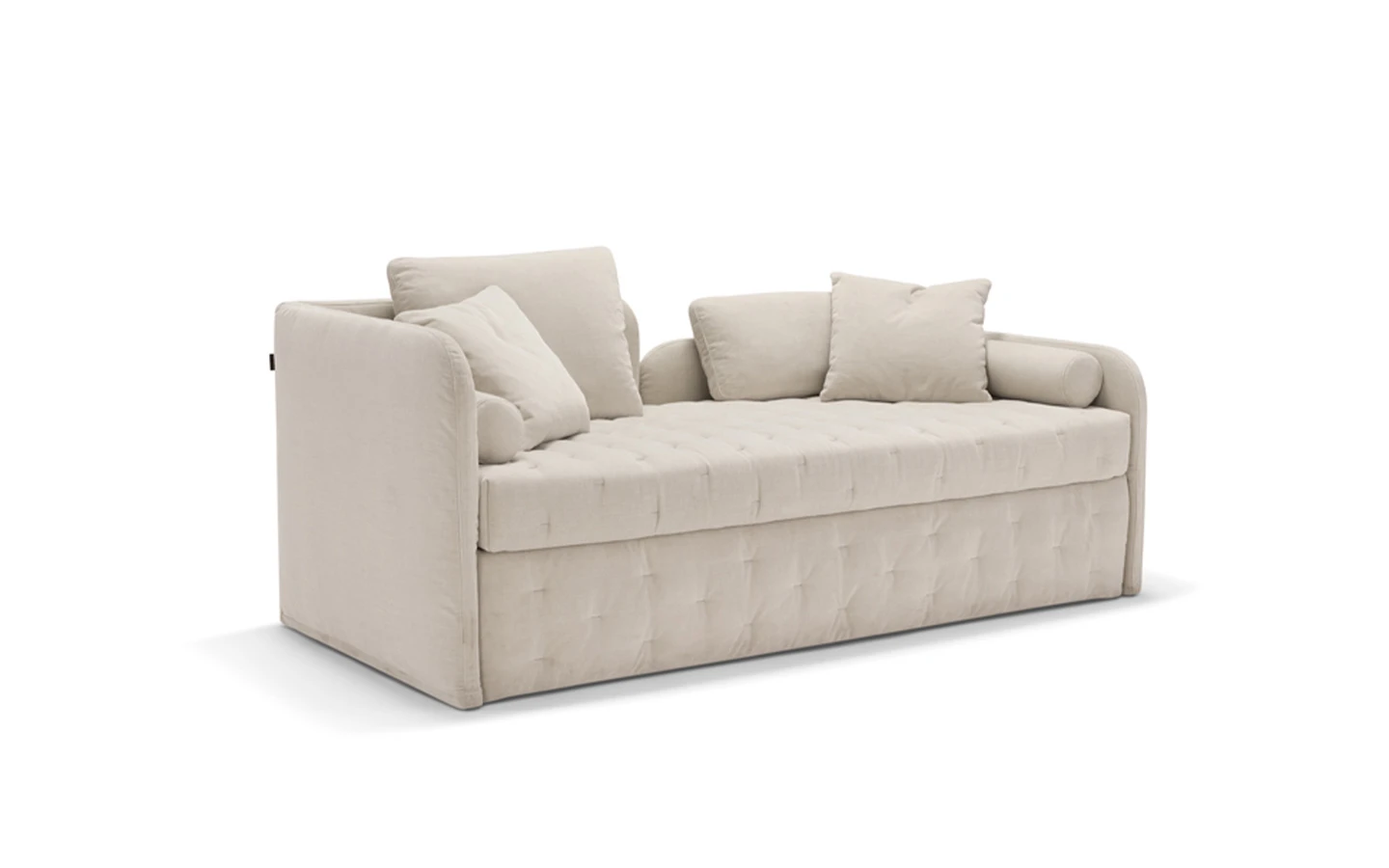 NAOMY е италиански разтегателен диван от колекцията на италианския производител Max Divani. Моделът NAOMY има романтичен характер: разтегателен диван с втора разтегателна основа за легло, който е едновременно привлекателен и функционален. С подлакътници и облегалки, които се предлагат в четири различни комбинации от височини, този модел е допълнен с комплект меки възглавници с гъши пух, както и две допълнителни цилиндрични възглавници. Елегантният капитонаж на текстилното покритие на седалката и основата добавя нотка на занаятчийски детайл. Диванът може да бъде тапициран в дамаска или еко кожа – материал и цвят по избор на клиента. Цената на дивана се формира на база на избора на вид тапицерия.