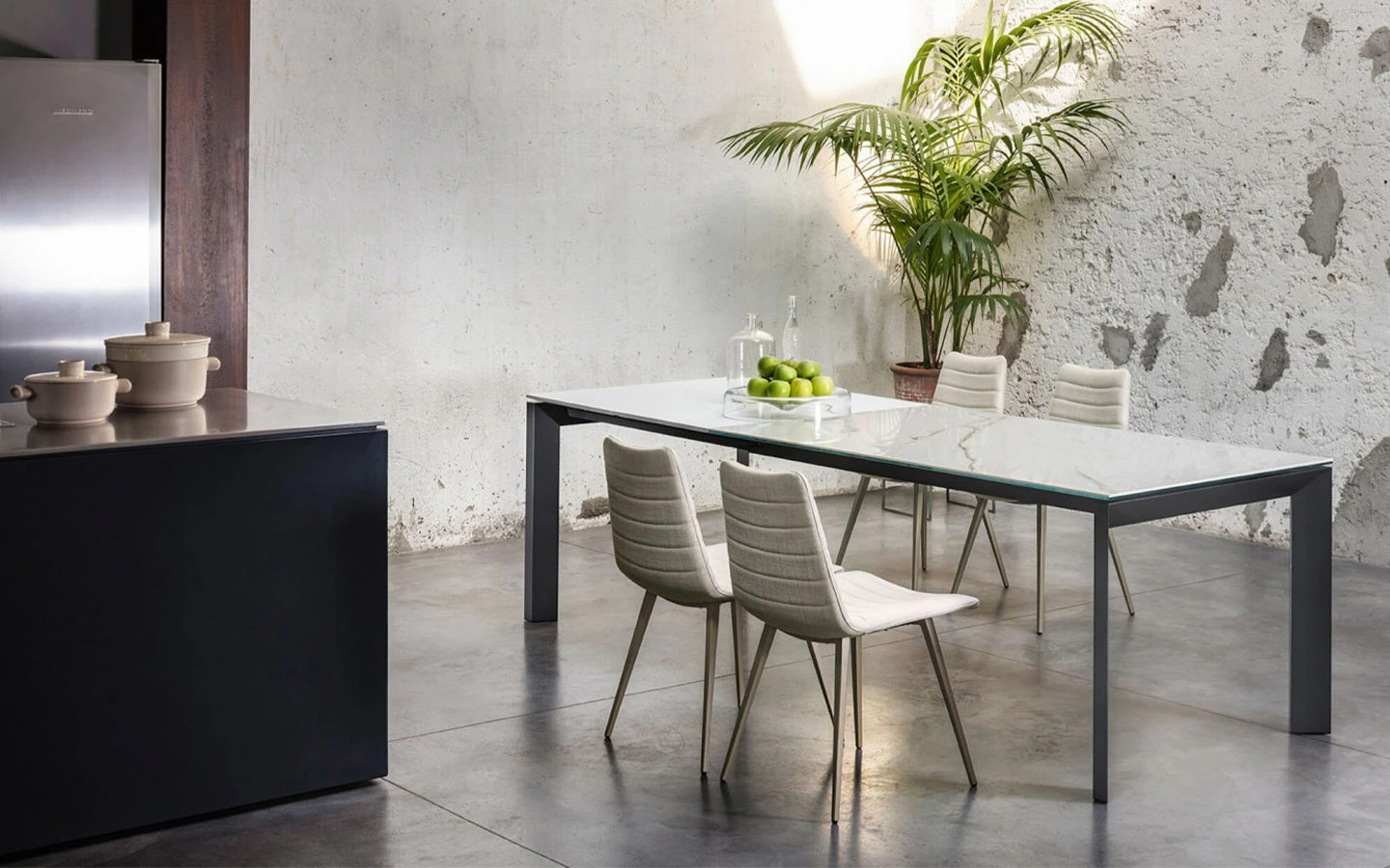 Разтегателната трапезна маса APOLLO от MIDJ е с изчистен и модерен дизайн, проектирана от Studio Kappa. Тя разполага с удобен разтегателен механизъм с плъзгащи се разширения, които се прибират под плота. Масата се предлага в няколко размера с възможност за разтягане до 290 см. Тя е подходяща за съвременни трапезарии и отворени жилищни пространства, съчетавайки стил и функционалност.