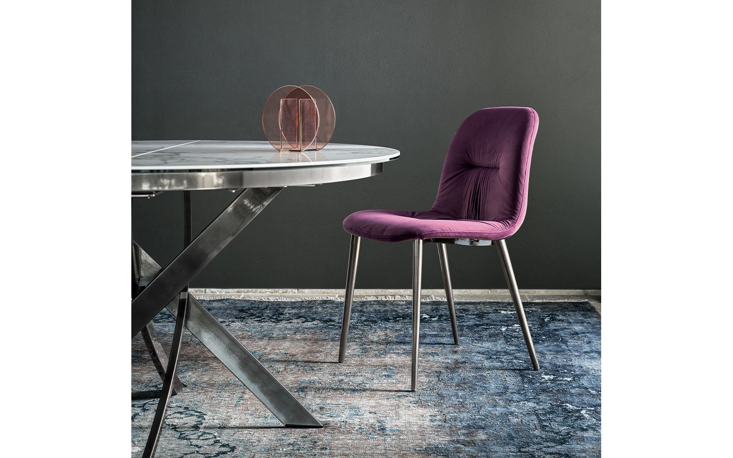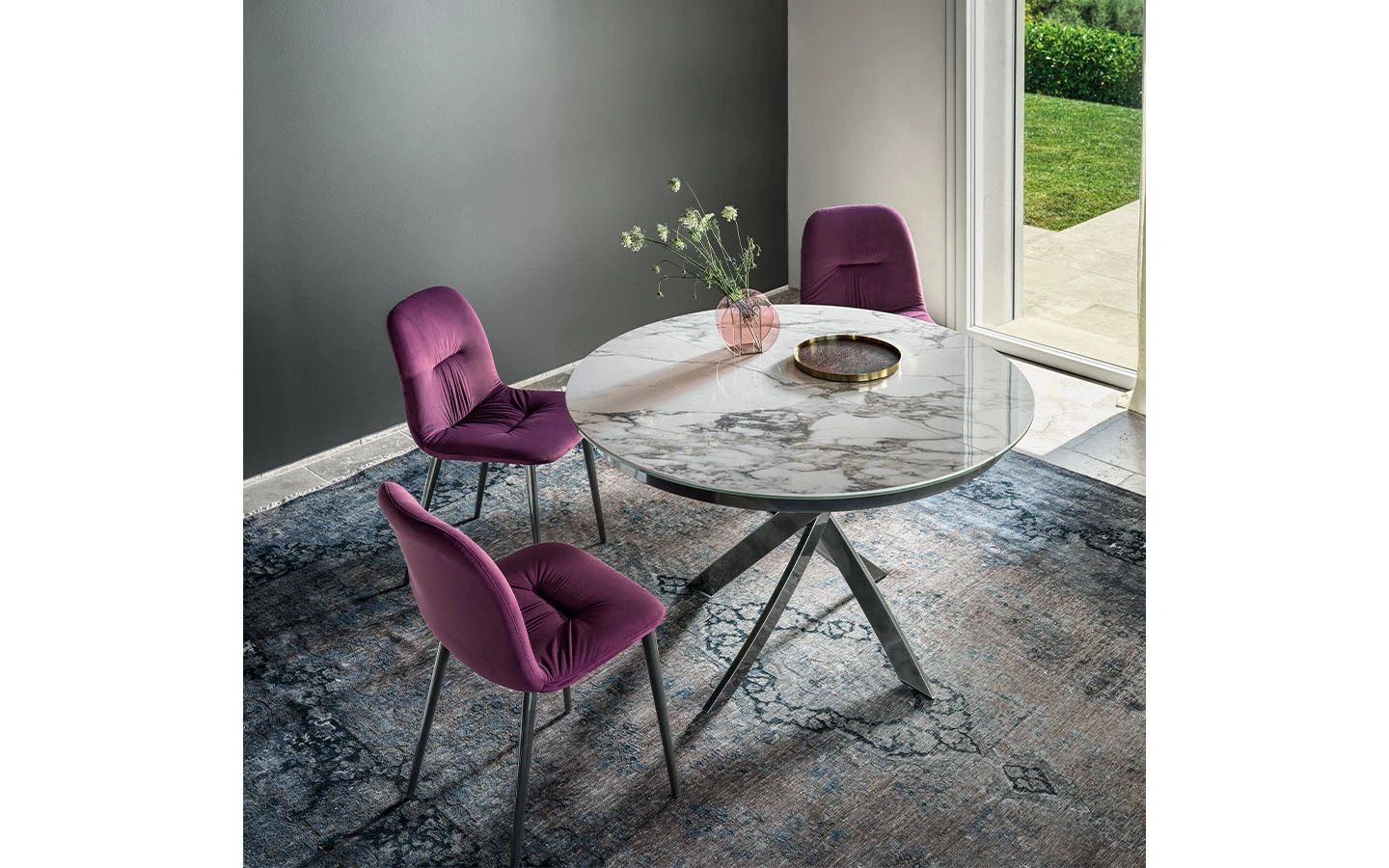 Разтегателната маса BARONE от Bontempi Casa е изискана и многофункционална трапезна маса, проектирана от Pocci & Dondoli. Характеризира се с лакирана метална основа, артистично оформена като кръстосани саби, което осигурява както стабилност, така и впечатляваща визия. Масата разполага с удобен разтегателен механизъм с централен разширителен елемент, който се интегрира безпроблемно към основния плот. Когато не се използва, разширението остава скрито, запазвайки изчистения дизайн на масата. Съчетавайки артистичен дизайн и функционалност, BARONE е перфектен избор за модерни и елегантни трапезарии.