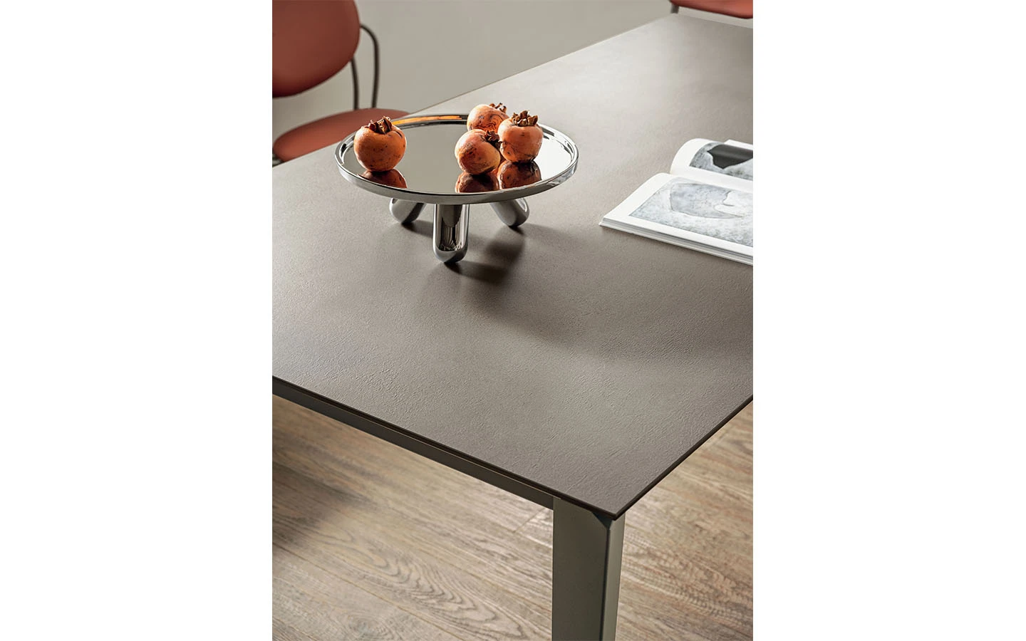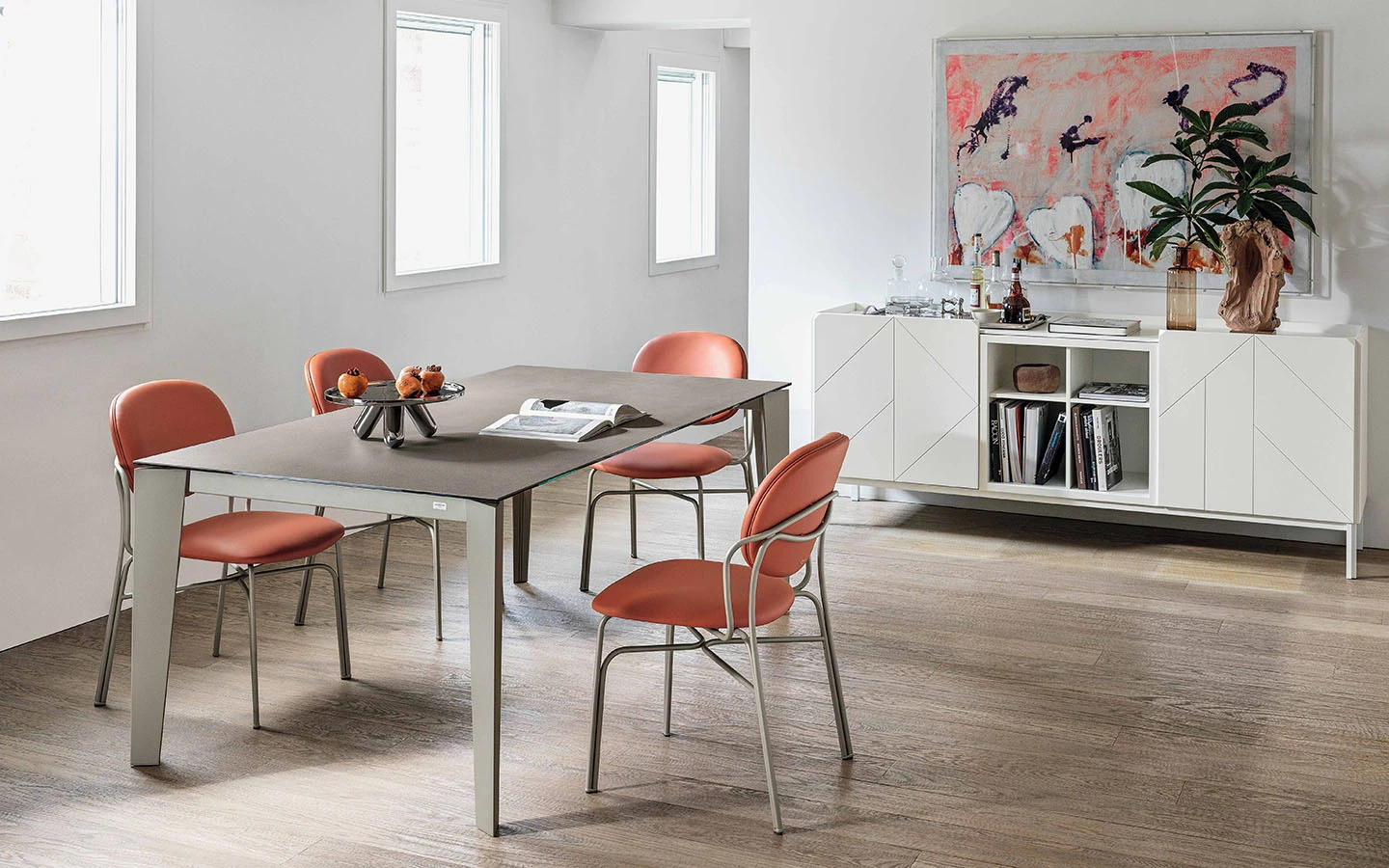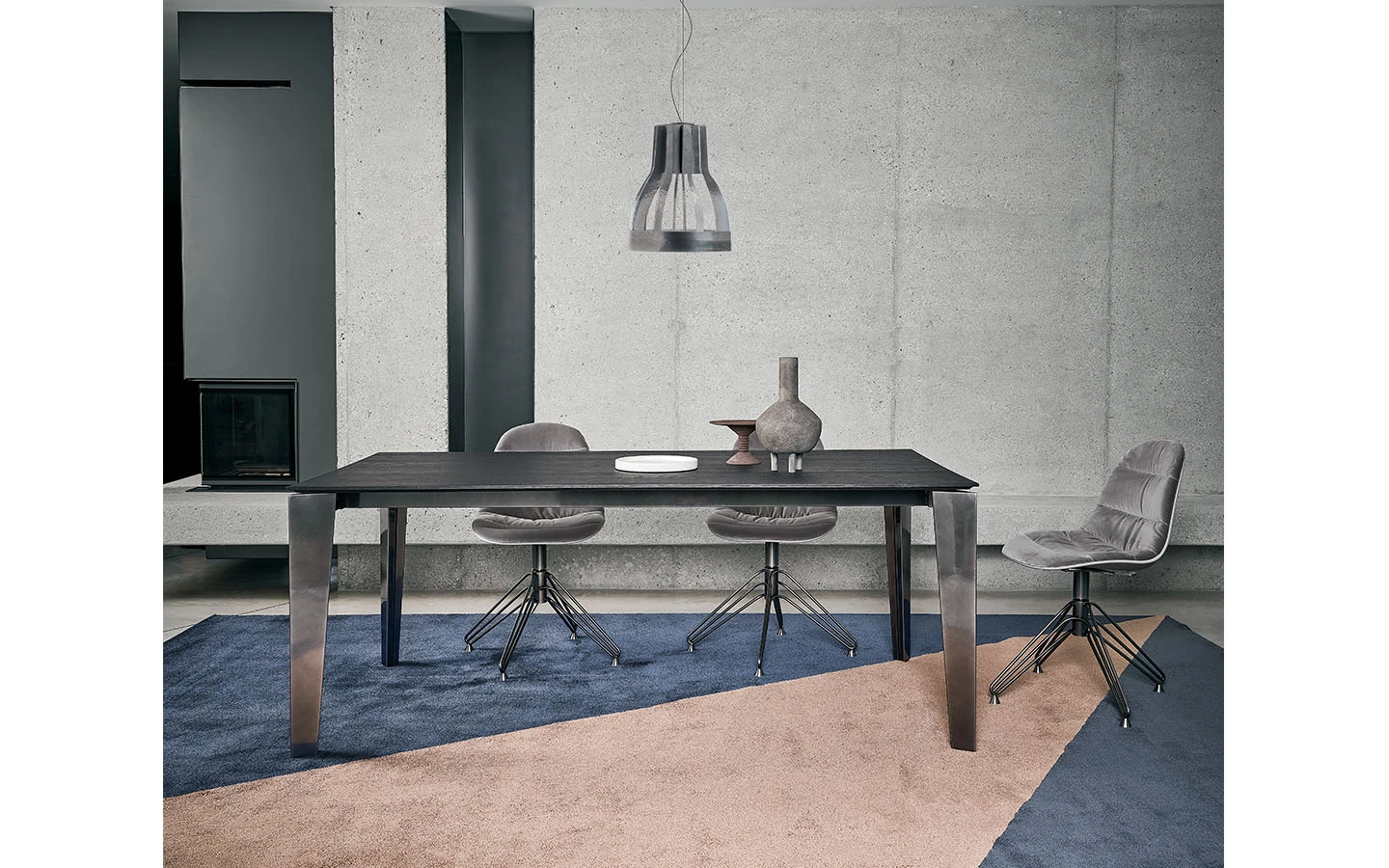 Разтегателната маса CRUZ от Bontempi Casa, проектирана от Daniele Molteni, е стилно и многофункционално решение за трапезария, което лесно се адаптира към различни пространства и поводи. Конструкцията ѝ е изработена от метал, предлаган в няколко цветови варианта, което позволява персонализиране спрямо интериора. Краката са елегантно скосени, придавайки модерен и изтънчен вид на цялостния дизайн. Разтегателният механизъм включва едно или две разширителни крила в зависимост от размера, които са в същия материал като основния плот, за да се запази хармоничният вид дори когато масата е напълно разгъната. Персонализацията на масата CRUZ е лесна благодарение на широката гама от покрития за плота и металната конструкция, което позволява съчетаване с всеки стил на обзавеждане. Тази комбинация от естетика и функционалност прави CRUZ отличен избор за модерни трапезарии, осигурявайки удобство и стил за ежедневна употреба и специални събития.