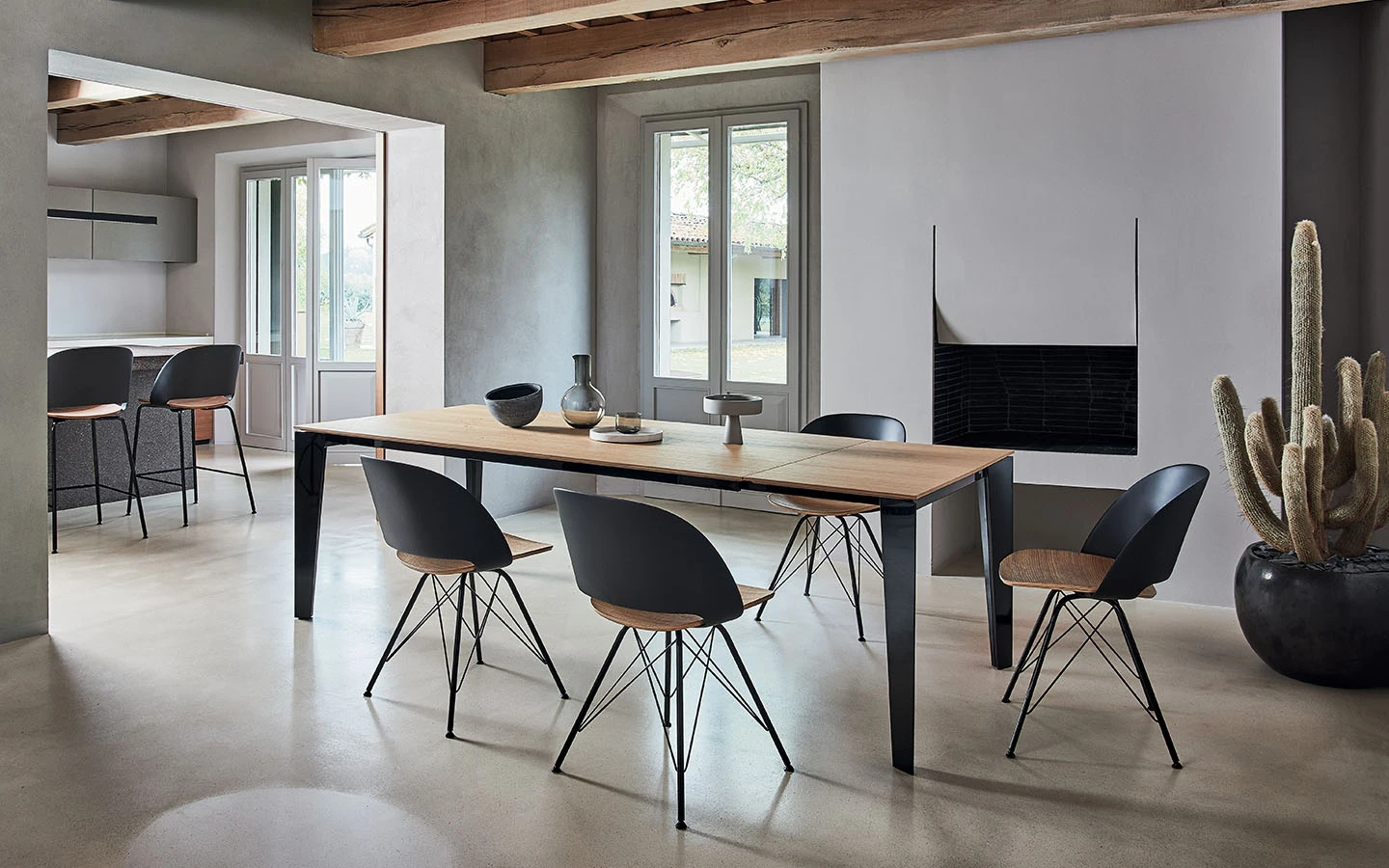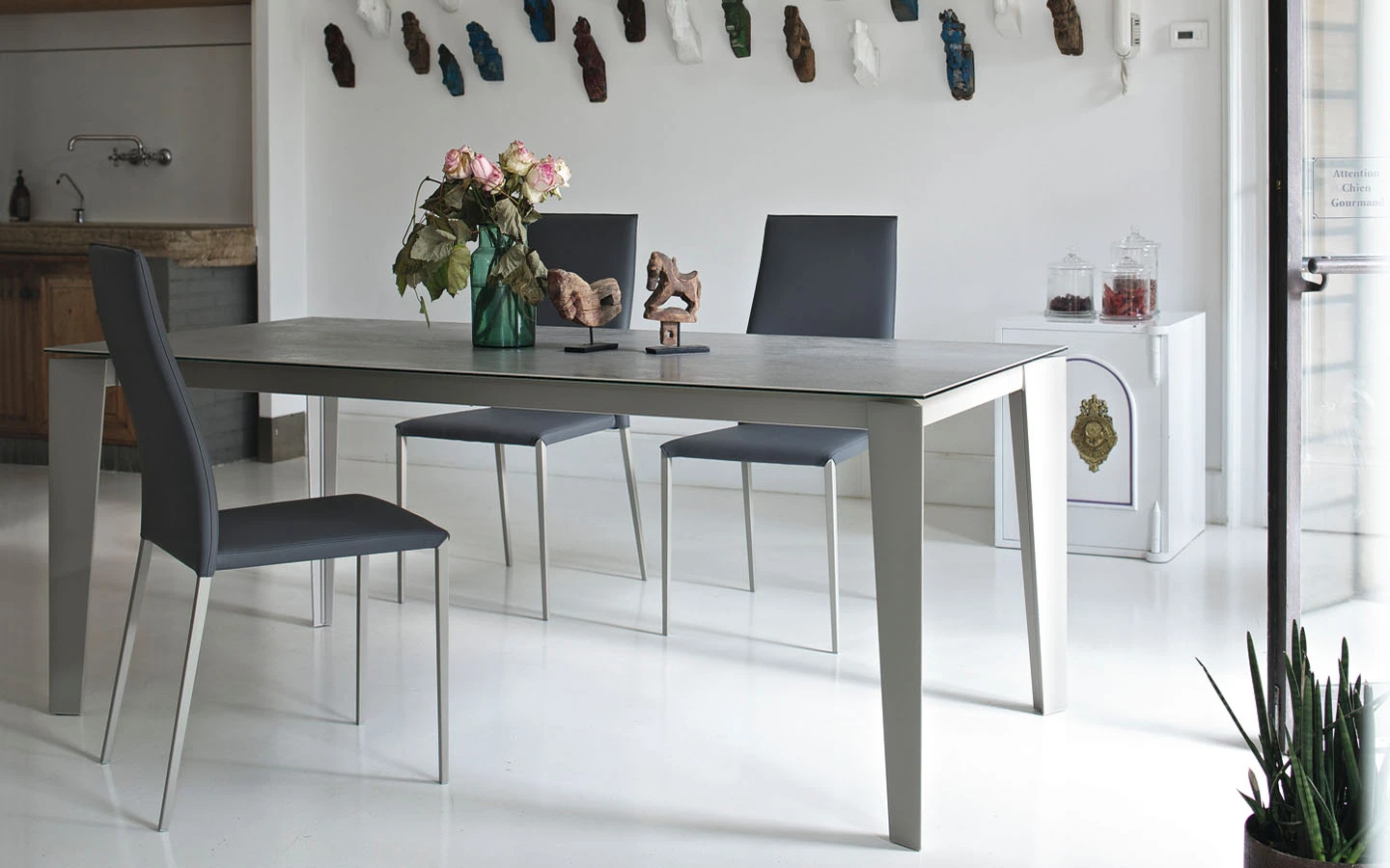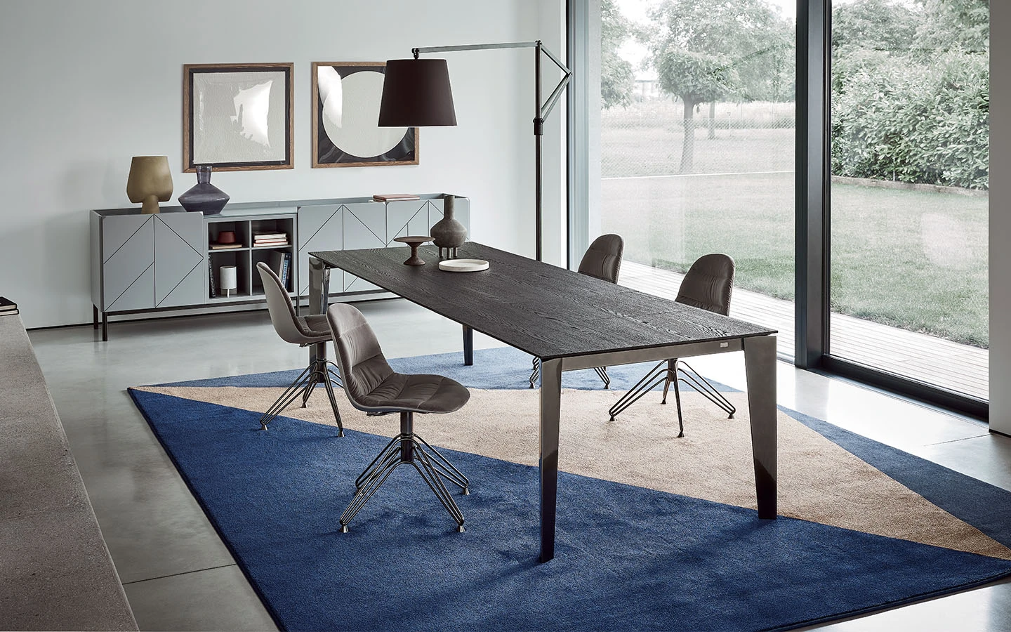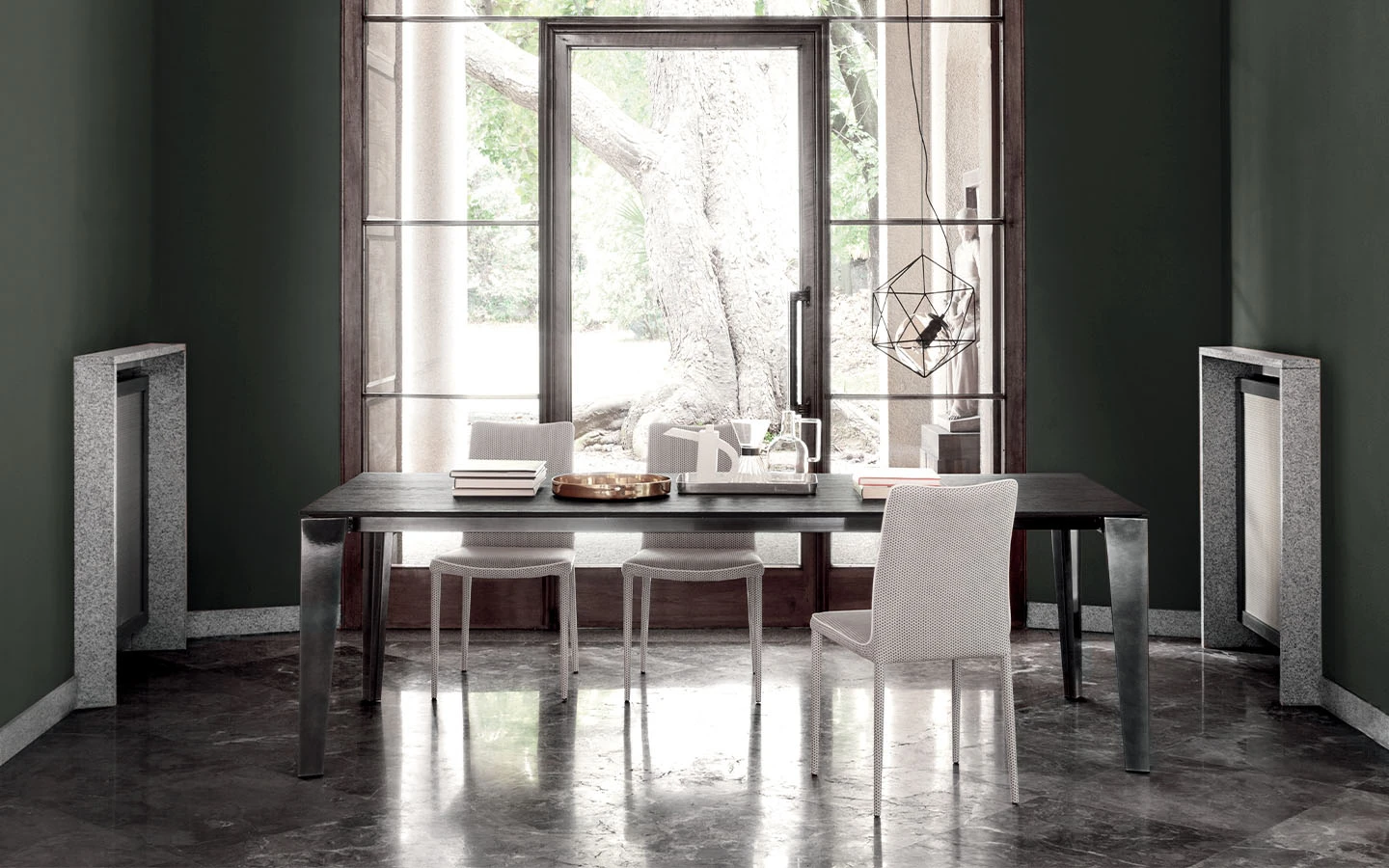 Разтегателната маса CRUZ от Bontempi Casa, проектирана от Daniele Molteni, е стилно и многофункционално решение за трапезария, което лесно се адаптира към различни пространства и поводи. Конструкцията ѝ е изработена от метал, предлаган в няколко цветови варианта, което позволява персонализиране спрямо интериора. Краката са елегантно скосени, придавайки модерен и изтънчен вид на цялостния дизайн. Разтегателният механизъм включва едно или две разширителни крила в зависимост от размера, които са в същия материал като основния плот, за да се запази хармоничният вид дори когато масата е напълно разгъната. Персонализацията на масата CRUZ е лесна благодарение на широката гама от покрития за плота и металната конструкция, което позволява съчетаване с всеки стил на обзавеждане. Тази комбинация от естетика и функционалност прави CRUZ отличен избор за модерни трапезарии, осигурявайки удобство и стил за ежедневна употреба и специални събития.
