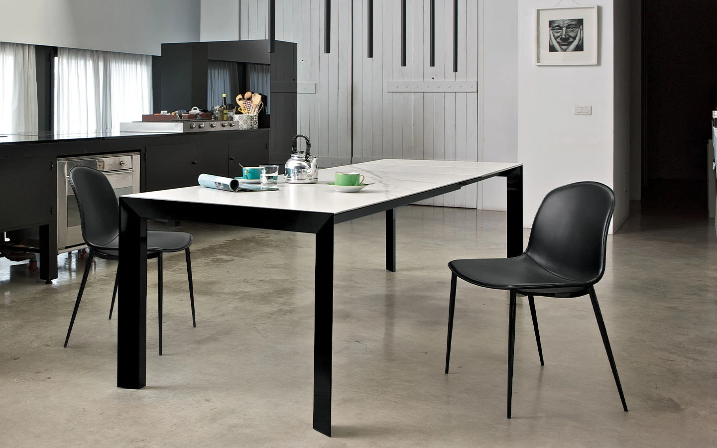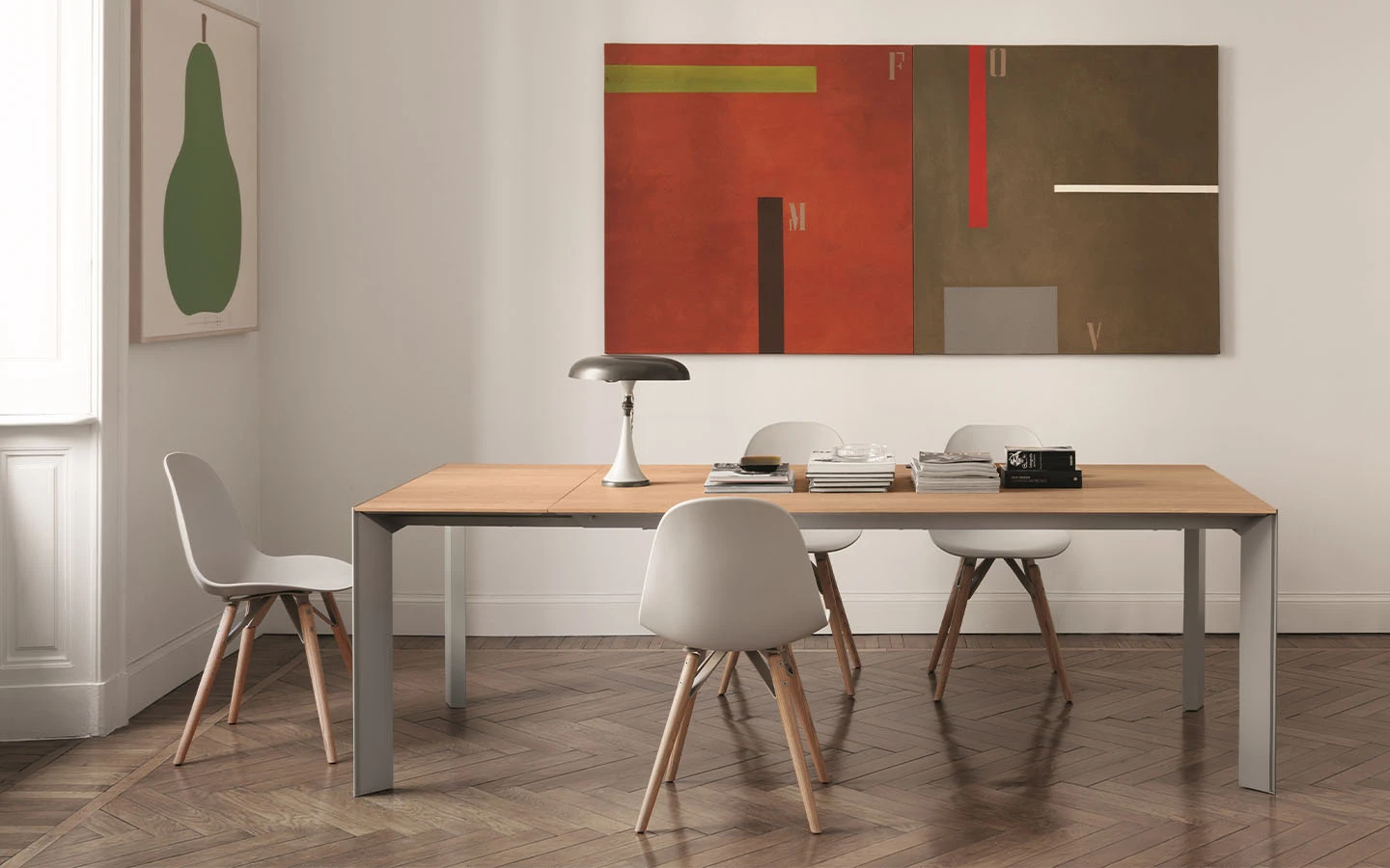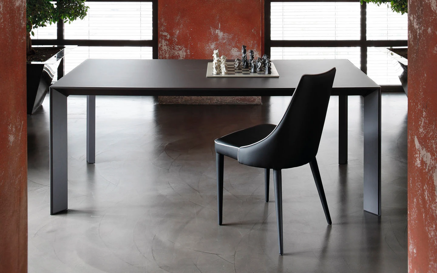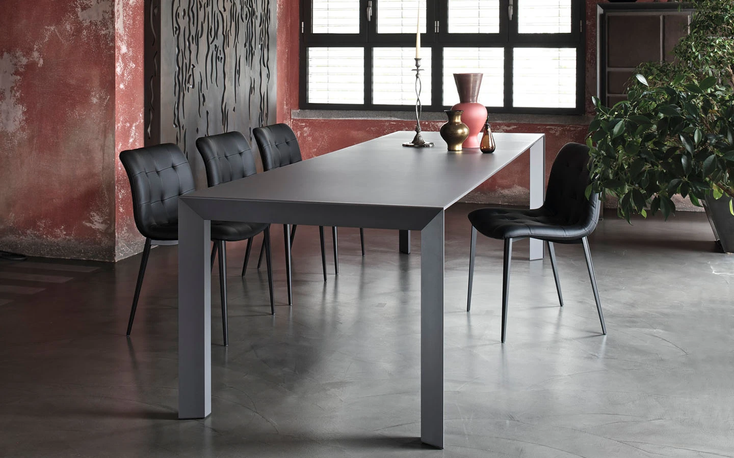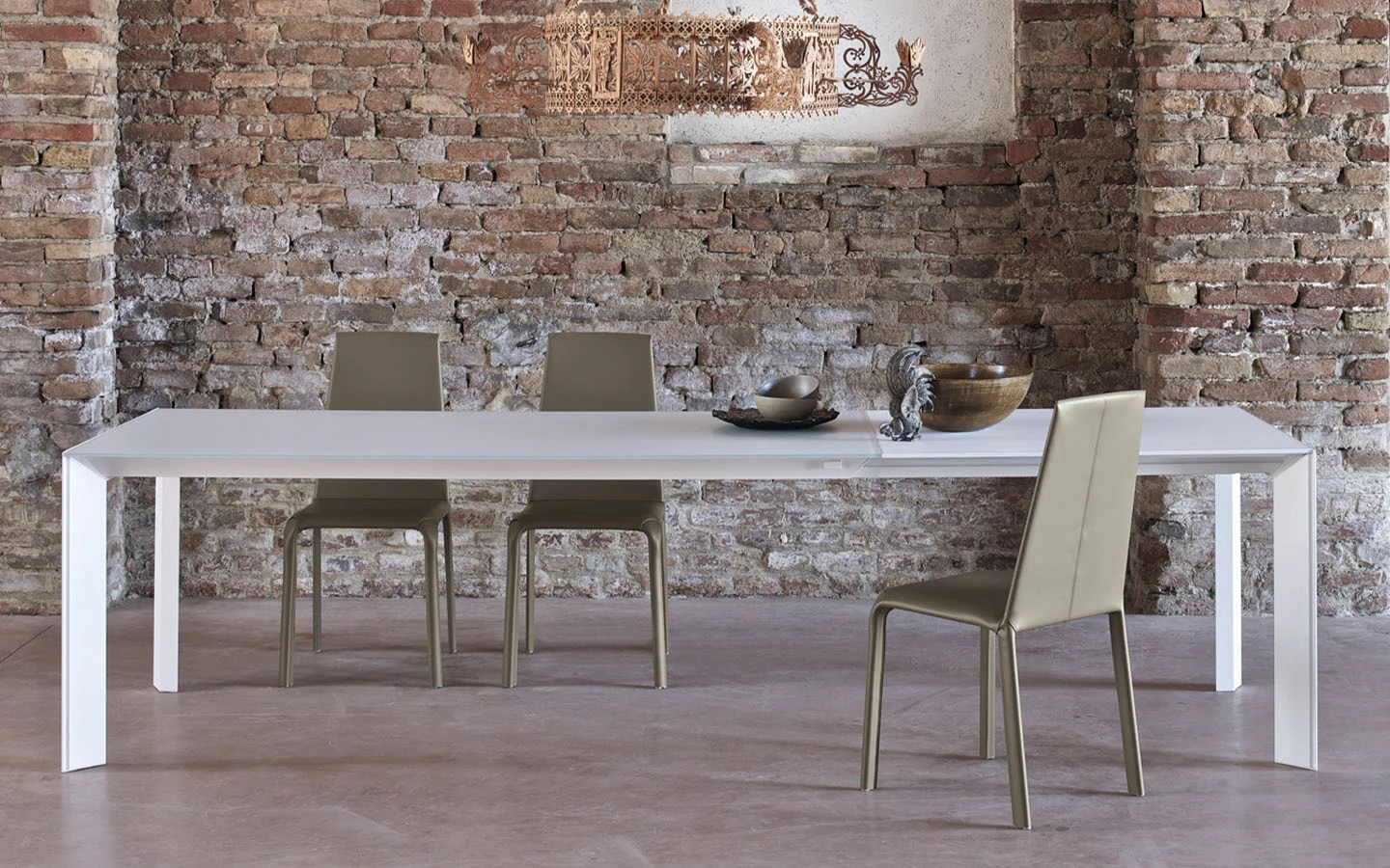 Разтегателната маса GENIO от Bontempi Casa е модерно и универсално решение за трапезария, което лесно се адаптира към различни пространства и поводи. Със своя изчистен и стилен дизайн, тя съчетава елегантност с функционалност. Конструкцията ѝ е изработена от метал и се предлага в различни цветови покрития, което позволява персонализиране спрямо интериора. Краката са разположени в ъглите, придавайки минималистичен и съвременен вид. Разтегателният механизъм включва две разширителни крила. Разширителните елементи могат да са изработени в същия материал като основния плот, което запазва хармоничния и елегантен външен вид на масата дори когато е напълно разгъната. Съчетавайки модерен стил, функционалност и висококачествени материали, разтегателната маса GENIO е отличен избор за съвременни трапезарии, осигурявайки удобство и стил както за ежедневна употреба, така и за специални поводи.