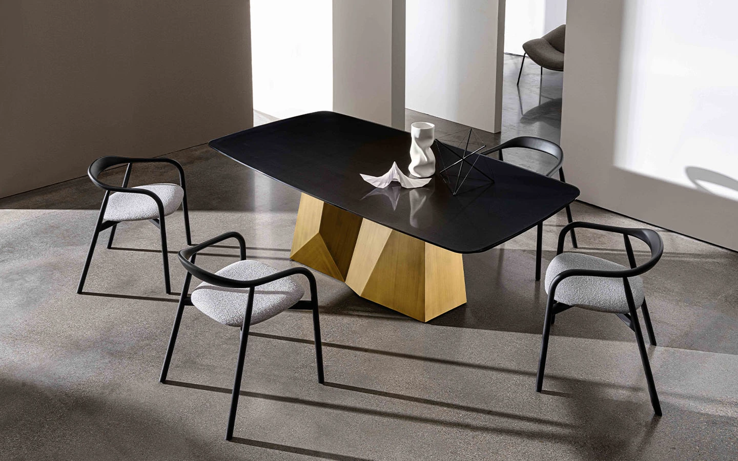Новата основа на масата Deod е абсолютен акцент в пространствата. Контрастът между закръглените форми на плота и силните линии на основата създава уникална комбинация. Тази маса не само че добавя стил, но и придава характер на всяка стая, в която се намира. Масата GRANDEOD SHAPED EXTENSIBLE предлага съвременен и елегантен дизайн, който е подходящ за всякакви интериори.