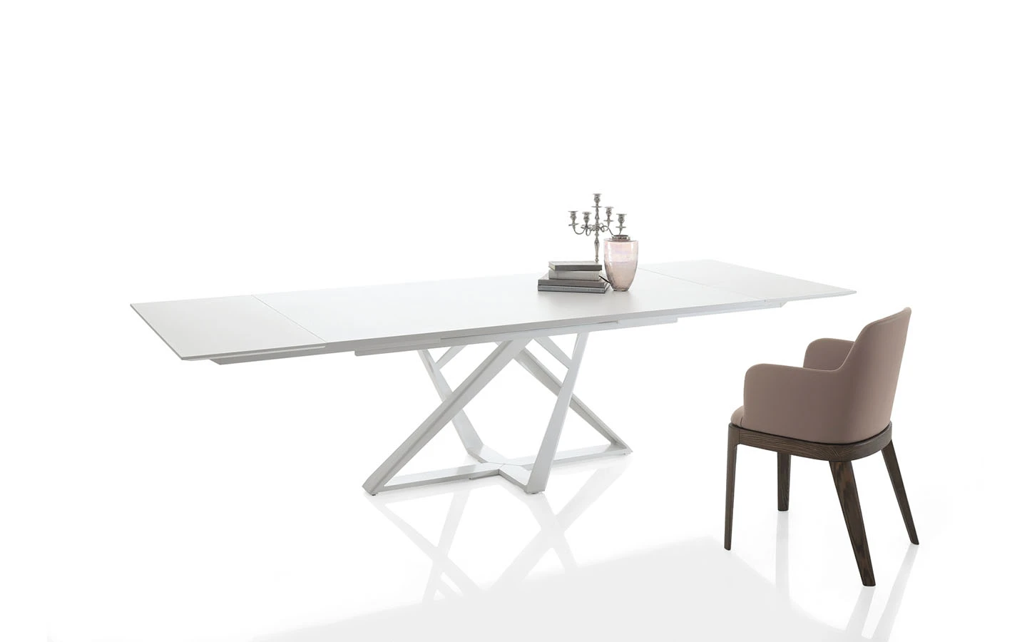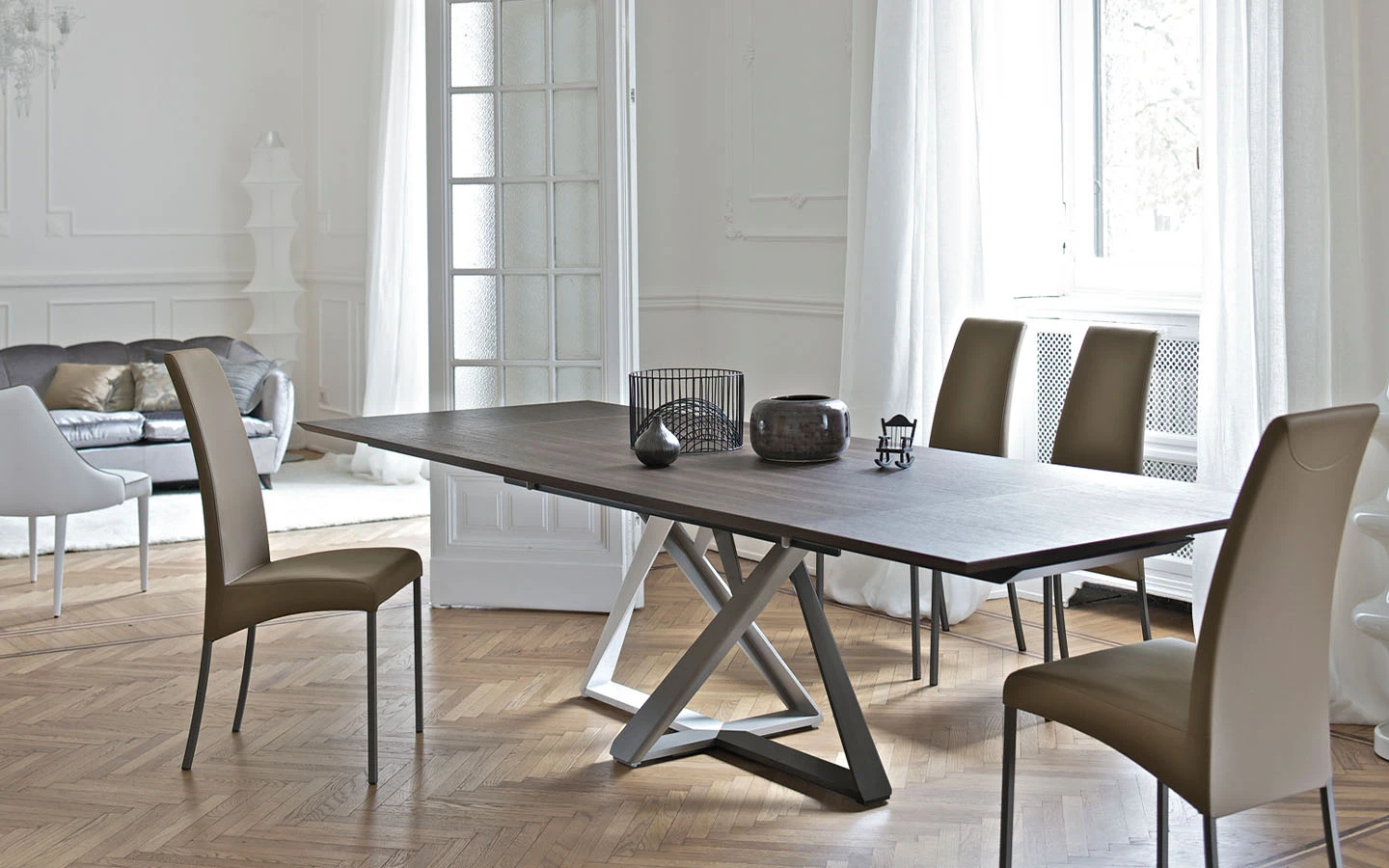 Разтегателната маса MILLENNIUM от Bontempi Casa, проектирана от Pocci & Dondoli, е модерна и универсална трапезна маса, която съчетава иновативен дизайн с функционалност. Нейната основа е изработена от метал с характерен ъглов и скулптурен дизайн, създаващ съвременен силует, който придава изтънченост на всяко пространство. Масата разполага с практичен разтегателен механизъм с две разширителни крила. Съчетавайки естетика и функционалност, разтегателната маса MILLENNIUM е идеален избор за съвременни трапезарии, осигурявайки стил и удобство за всякакви поводи.