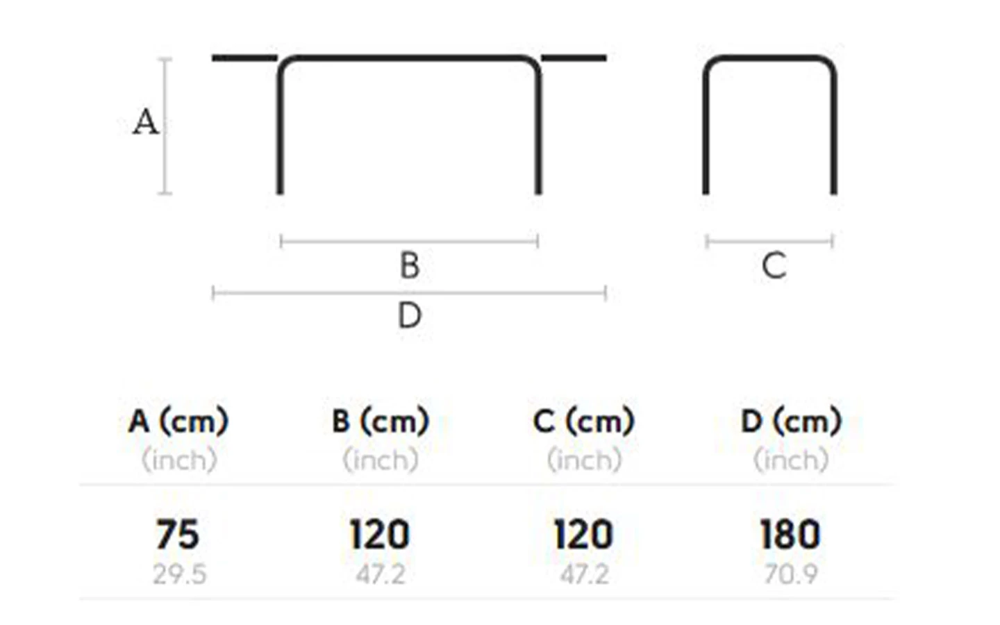 Посочената цена е за маса с плот от фурнировано дърво, в начална категория финиш на метала и с размери см. 120-180/120/75H.
