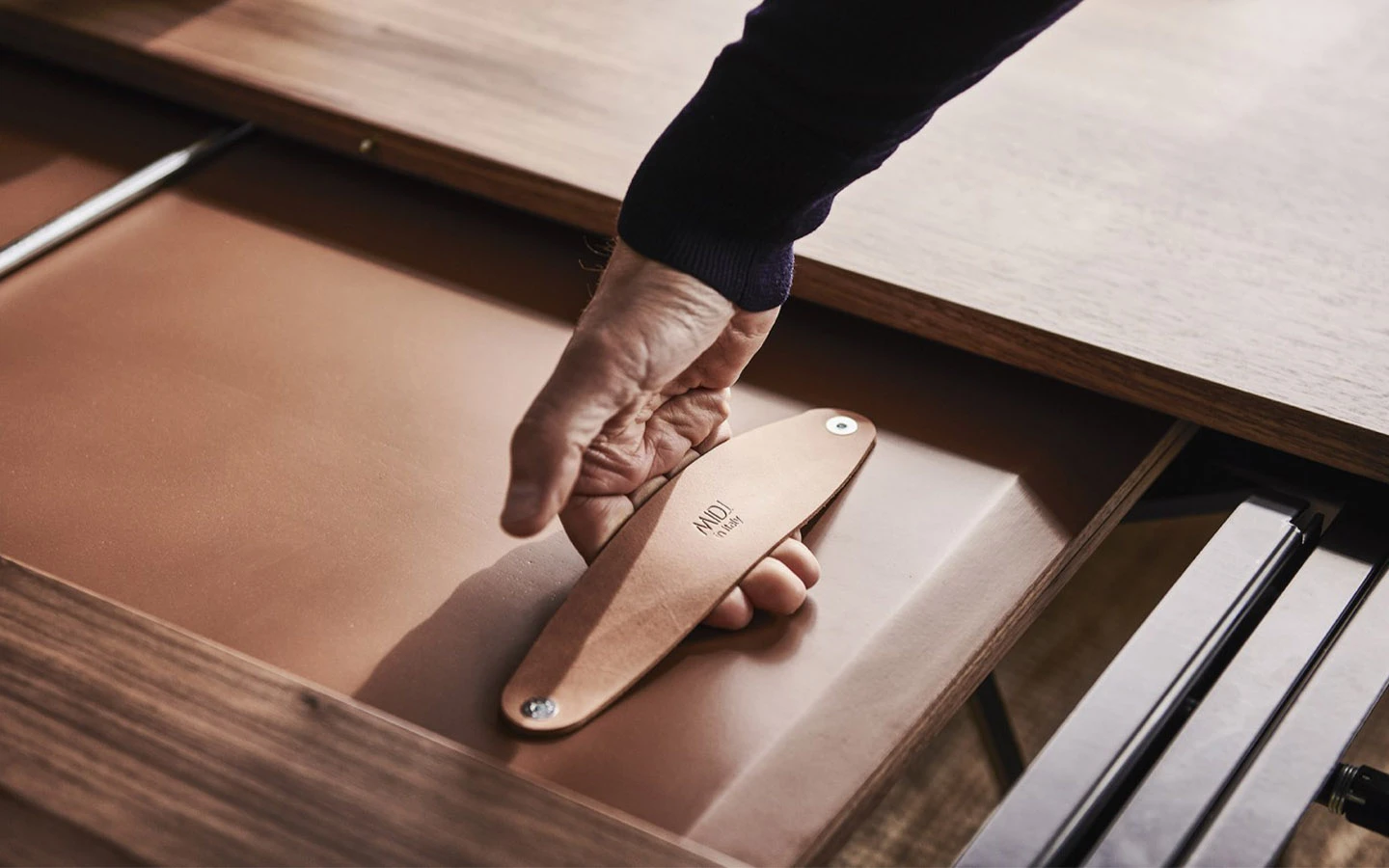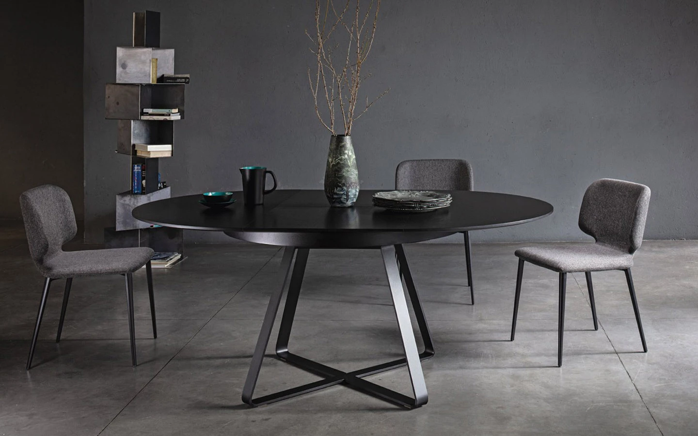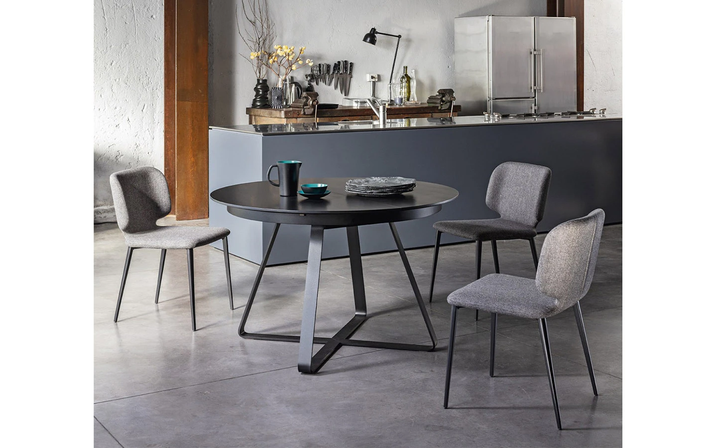 Разтегателната трапезна маса PAUL от италианската марка MIDJ е проектирана от Midj R&D и съчетава елегантен дизайн с висока функционалност. Плотът може да бъде кръгъл или бъчвообразен, изработен от фурнировано дърво или кристалокерамика, като предлага удобен централен разтегателен механизъм. Допълнителните разширения се съхраняват отделно и лесно се поставят при необходимост, което позволява бързо разширяване на масата за повече гости. С диаметър или ширина от 120 см, масата се разтяга до 180 см, като е подходяща за трапезарии, отворени жилищни пространства и търговски обекти, съчетавайки стил и практичност.
