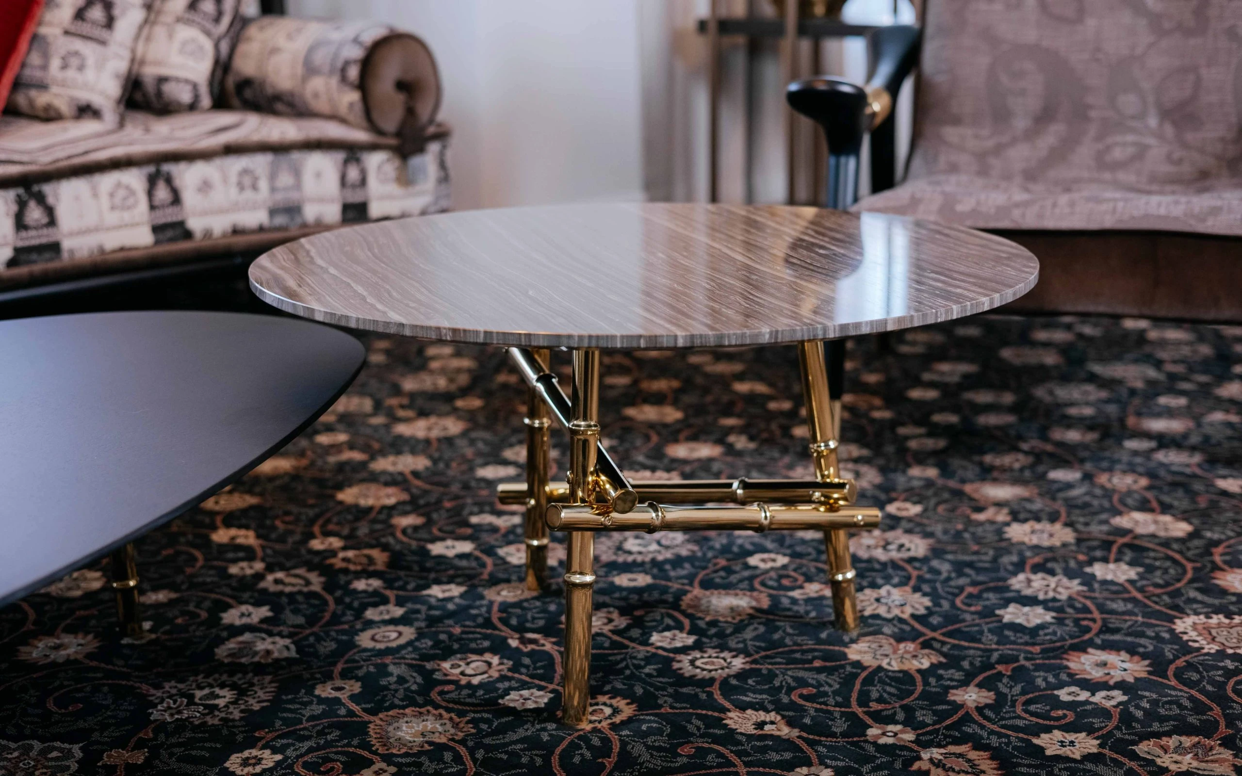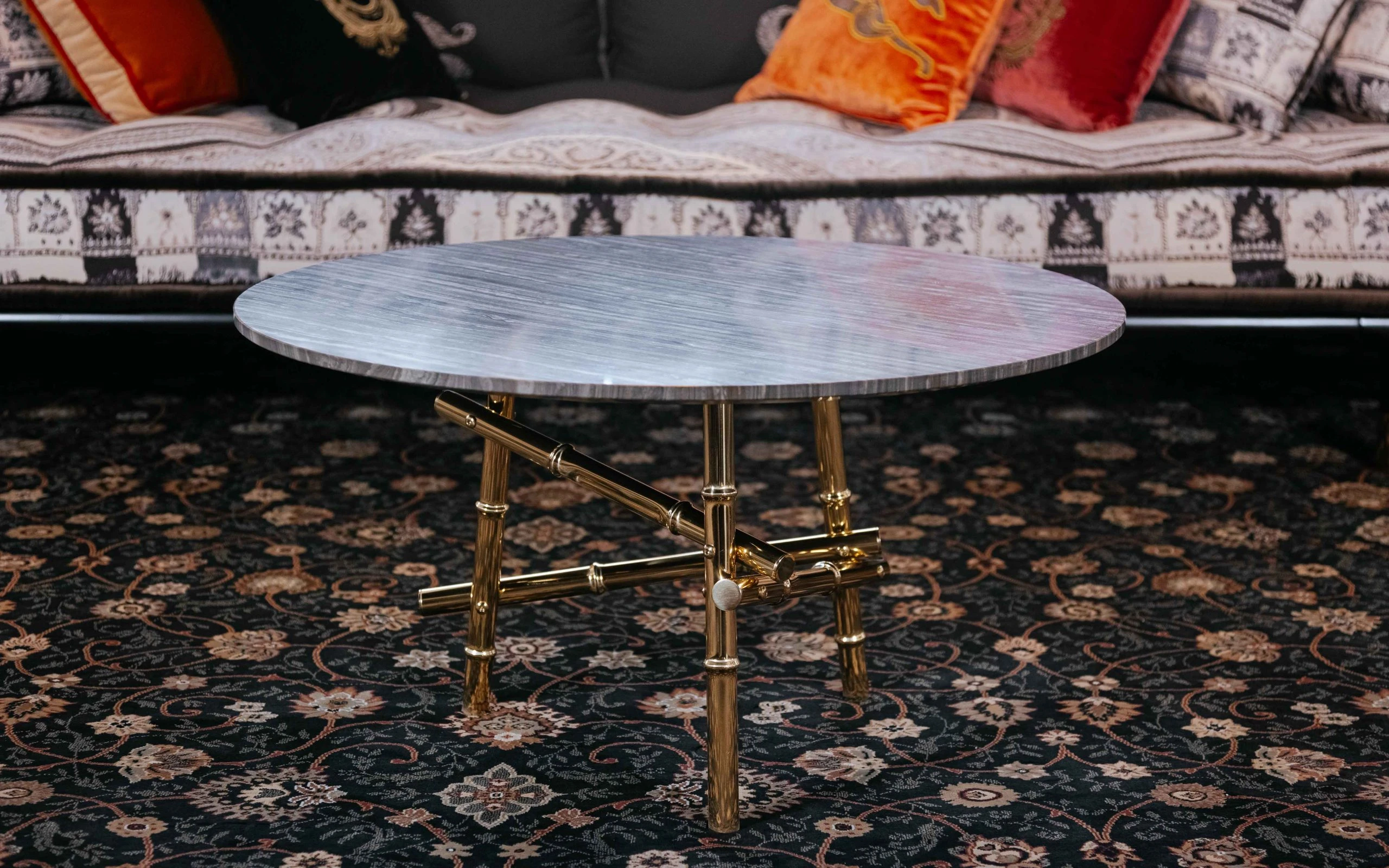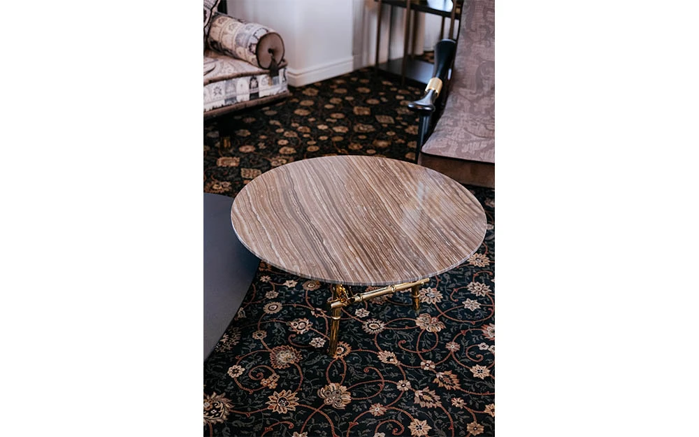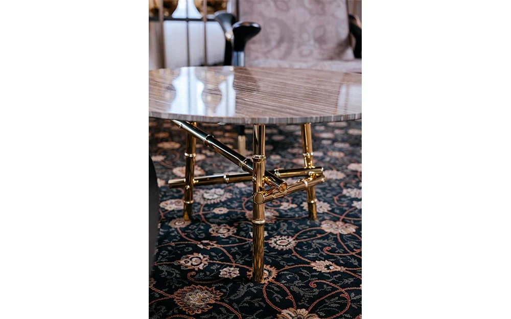 Ниската маса SAMARCANDA SMALL е част от колекцията на ETRO Home Interiors. Елегантна и въздействаща мебел, централната маса SAMARCANDA е с плот от естествен мрамор Eramosa, чиито топли тонове и раирани мотиви напомнят за очарованието на сухите пустини и далечните земи. Приятно динамичен ефект, който контрастира с основата, съставена от усукани бамбукови пръчки – природни елементи, които се превръщат в ценни материали, способни да придават светлина на околната среда. Ниската маса SAMARCANDA SMALL може да се използва самостоятелно или да се комбинира с централна маса от същата линия за създаване на персонализирана композиция.