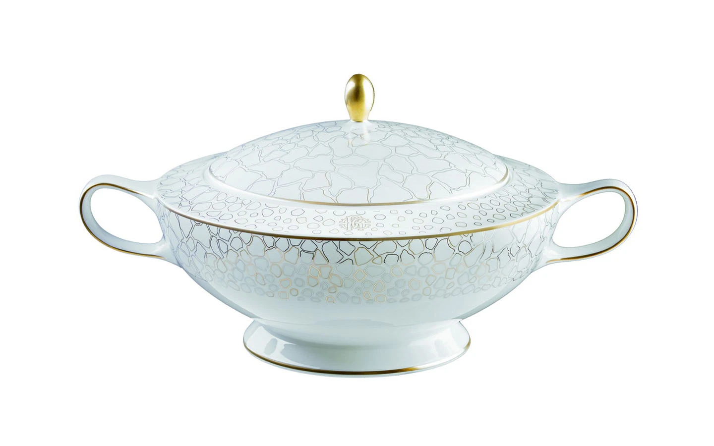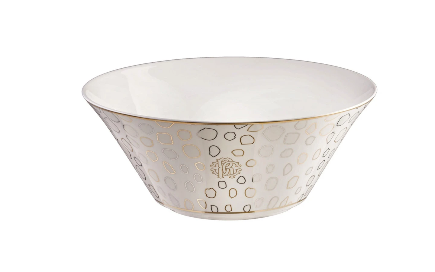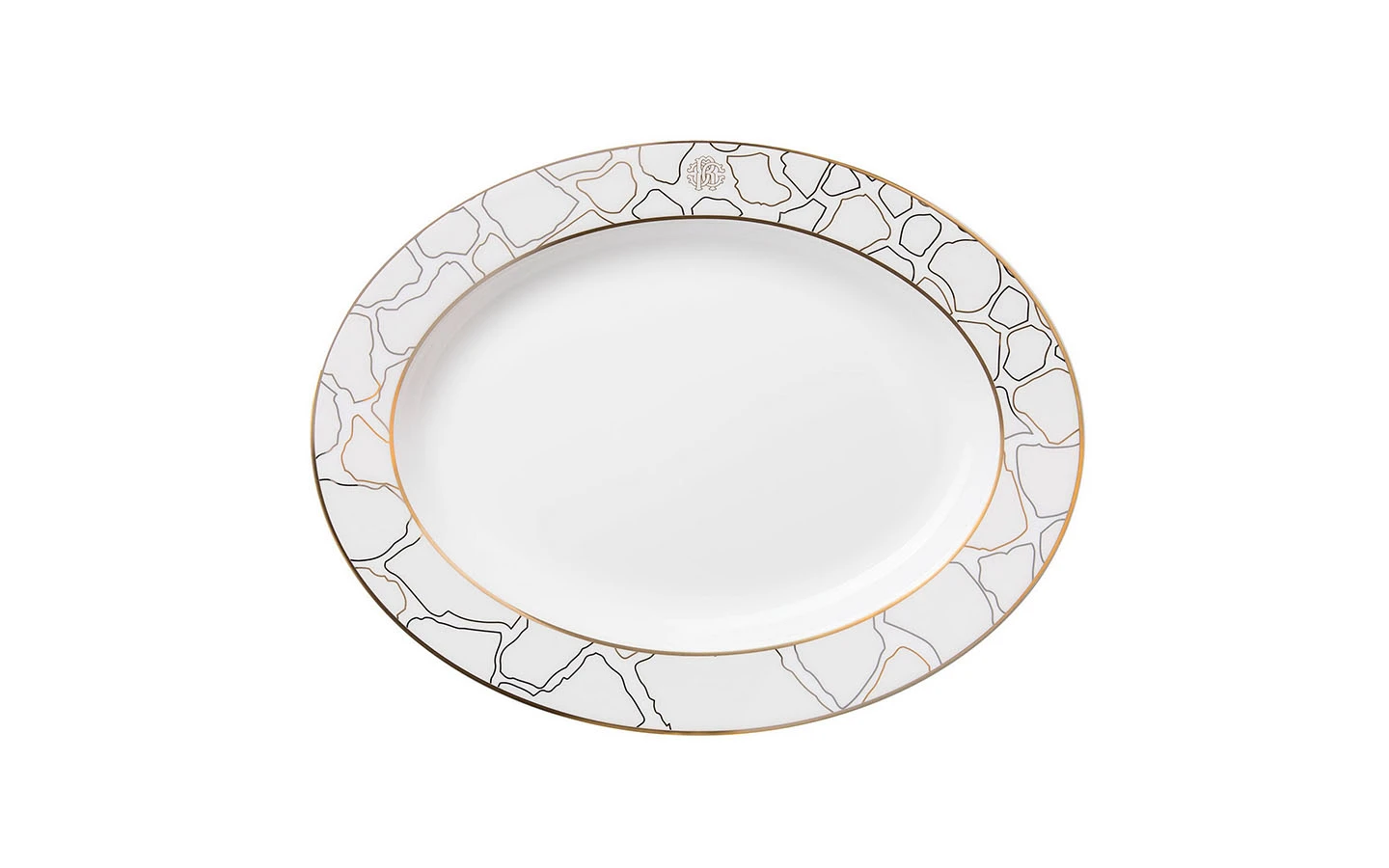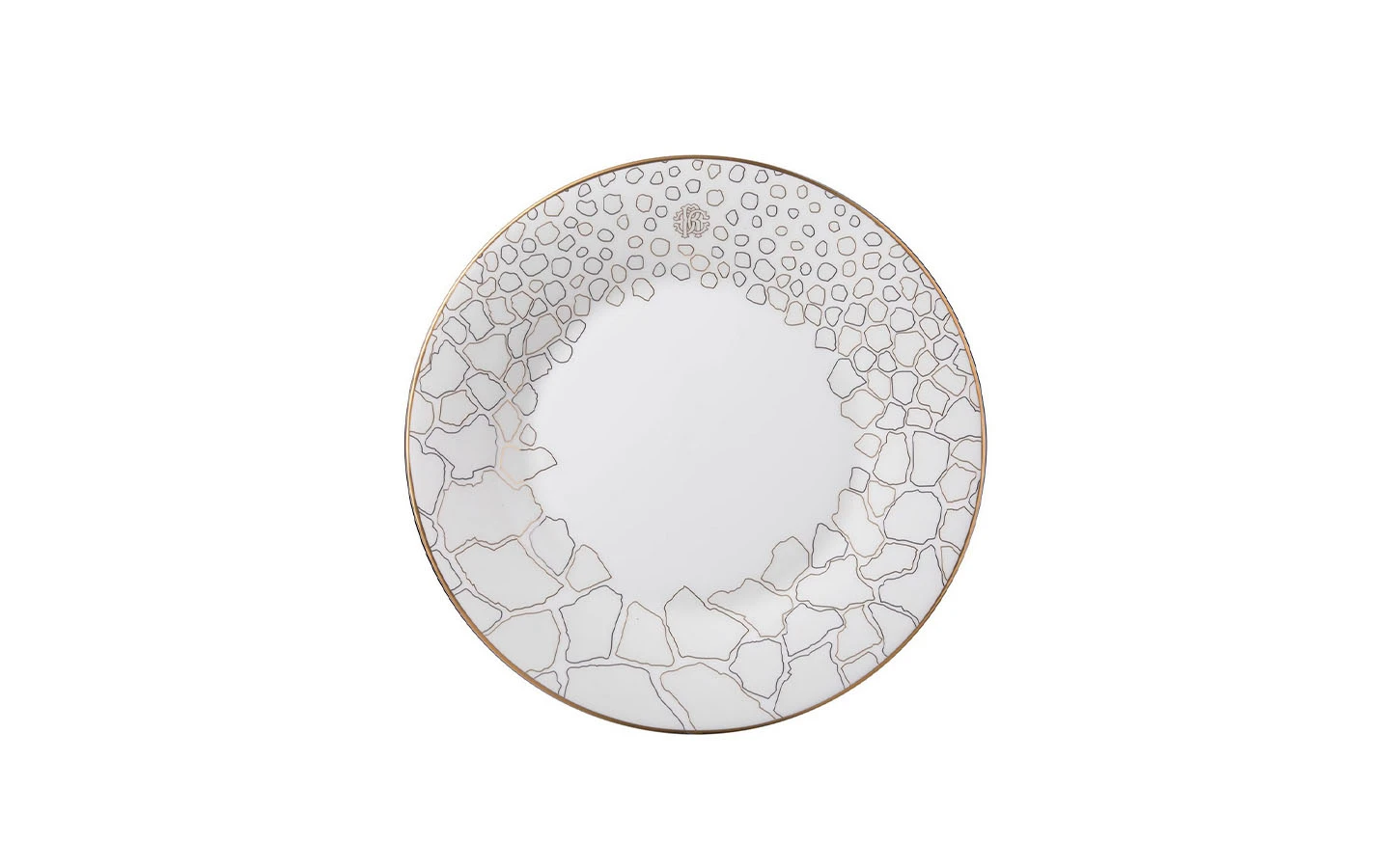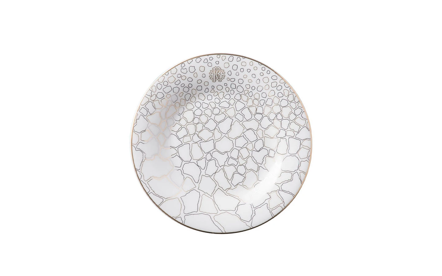 Допълнете масата си с този сервиз Giraffa от Roberto Cavalli Home. Зашеметяващият дизайн на Giraffa е върху красив бял костен порцелан и е с дизайн от златни и платинени фигури, златен кант и деликатно поставено лого на Roberto Cavalli.
