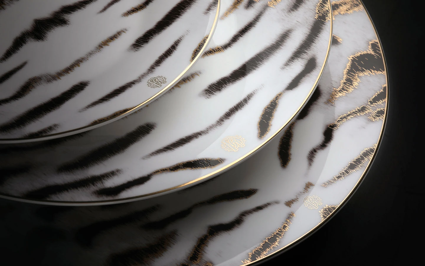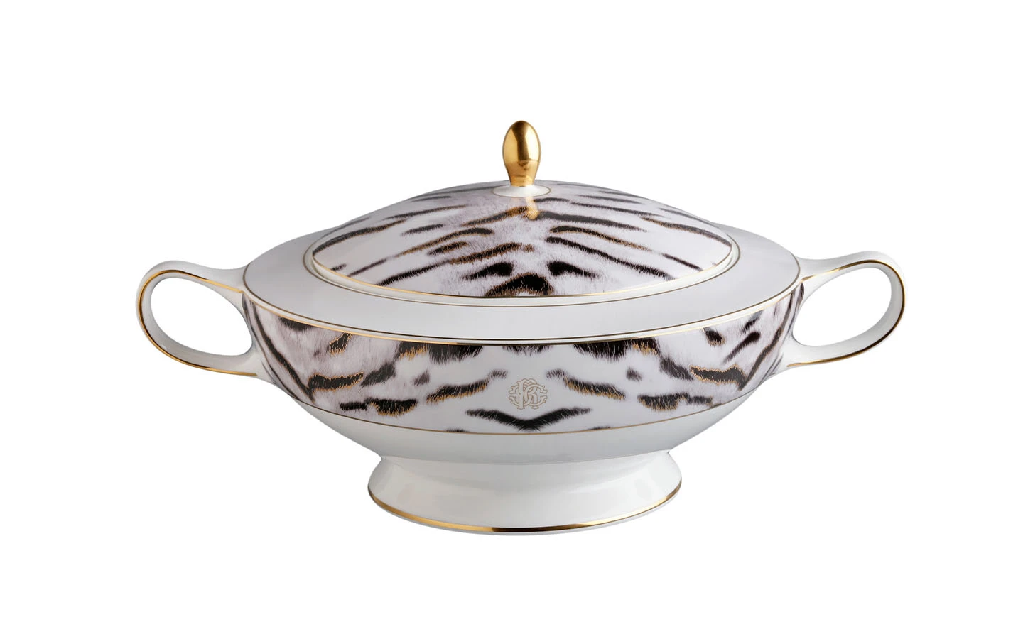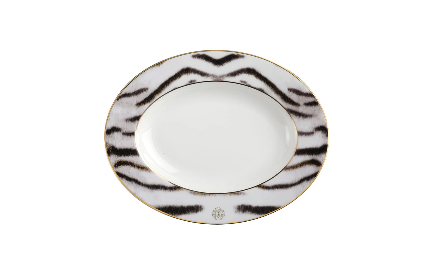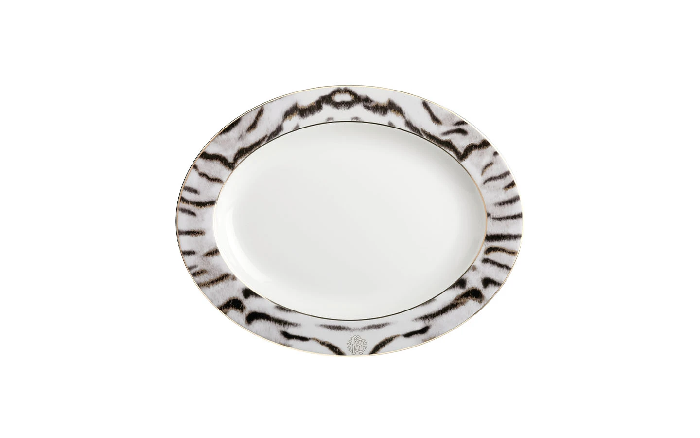 Допълнете масата си с този сервиз Tiger от Roberto Cavalli Home. Изработката е от фин костен порцелан и е със златни детайли с монограм RC. За да завършите колекцията и визията, съчетайте го с подходящите прибори за хранене.