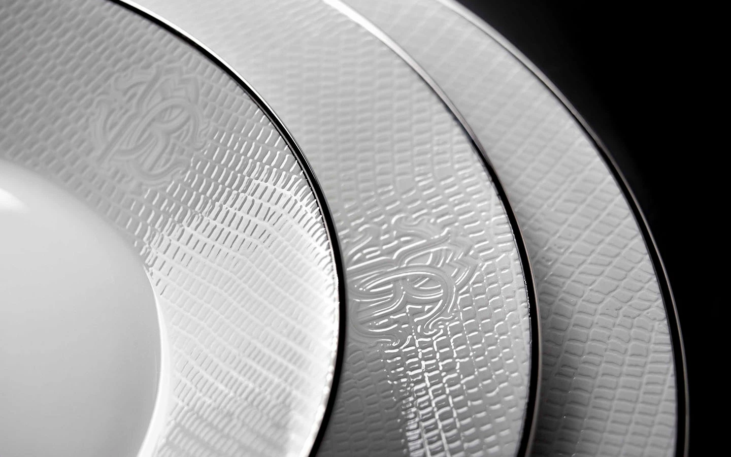 Пренесете висшата мода на масата с колекцията Lizzard Platin от Roberto Cavalli Home. С релефен детайл Lizzard, лого на Roberto Cavalli и фин платинен кант. Красива и много елегантна серия.