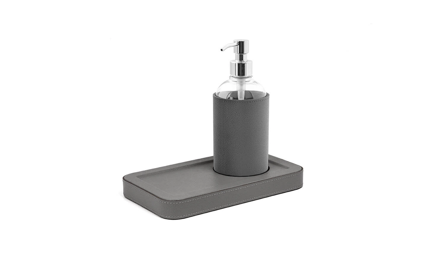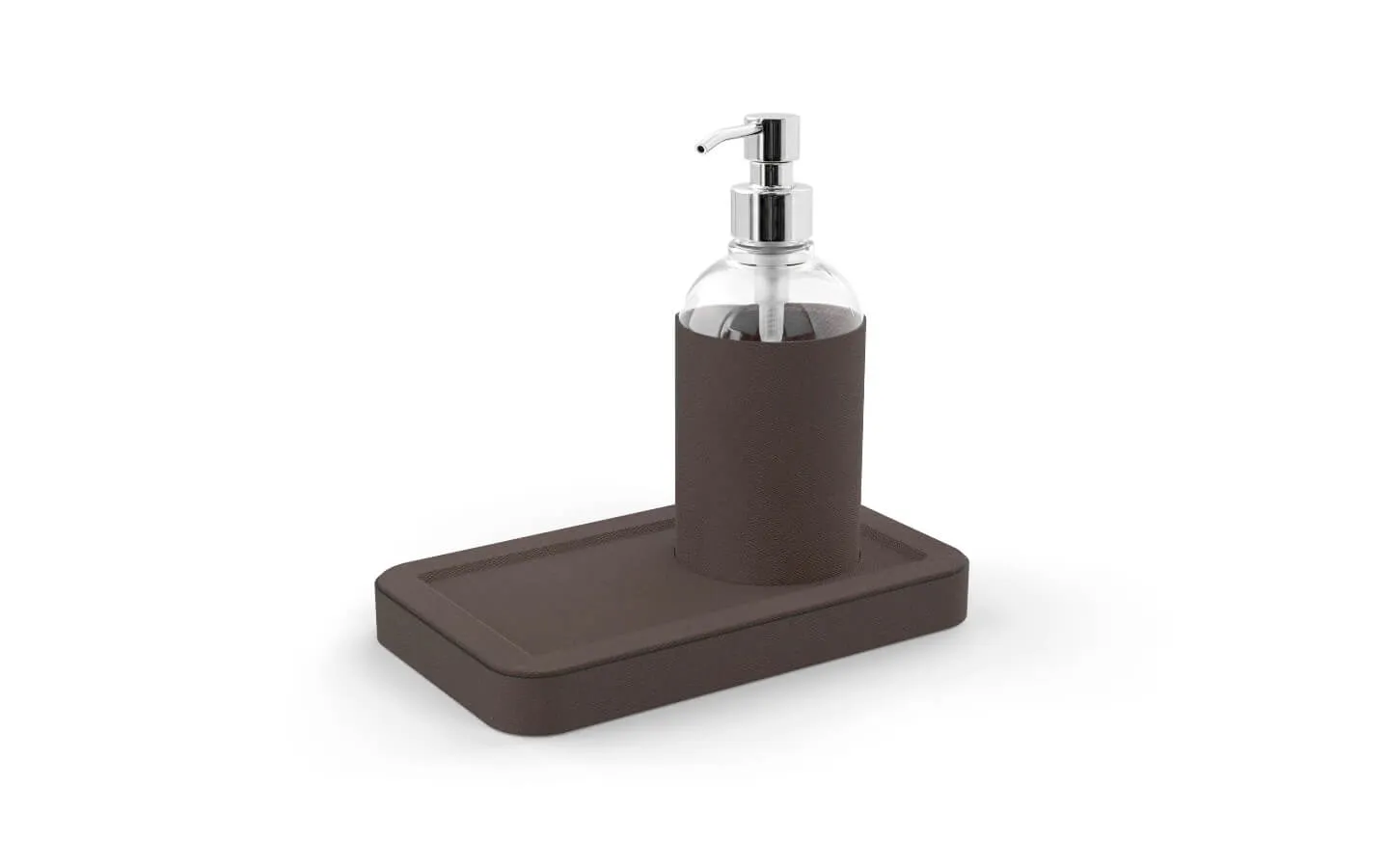 IGEA SMALL TRAY WITH MANUAL DISPENSER на Pinetti е компактен и стилен комплект от поднос с вграден механичен дозатор за сапун или гел, предназначен да внесе изтънченост във всеки детайл от интериора. Изработен е от устойчива кожа. Това го прави идеален за рецепции, магазини, шоуруми, хотели или яхти – места, където премиум материи и функционалност вървят ръка за ръка. Продуктът се изработва ръчно, което гарантира внимание към детайла и високо качество.