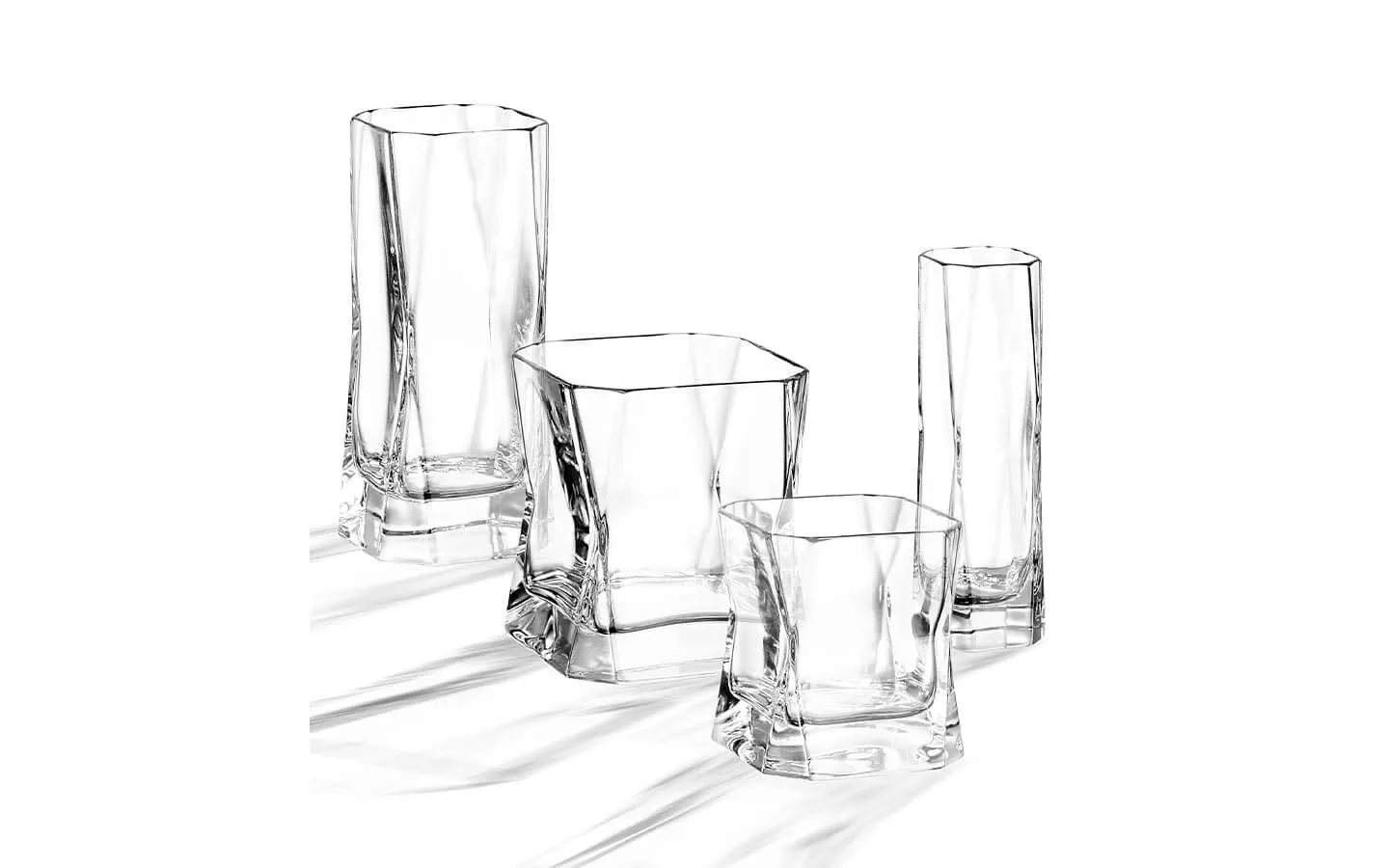 CIBI DOUBLE OLD FASHION от ARNOLFO DI CAMBIO представлява емблематичен комплект от две дизайнерски чаши за уиски, създадени по дизайн на Cini Boeri и произведени в Италия от ръчно духано кристално стъкло. Чашите се отличават с характерен геометричен силует със скосени ръбове и леко стесняваща се форма в центъра, която осигурява сигурен и удобен захват, както и силно разпознаваема визуална идентичност. Масивното тяло и стабилното дъно придават усещане за баланс и плътност, а по-голямата вместимост ги прави идеални за сервиране на уиски, дестилати или коктейли с лед. Комплектът CIBI DOUBLE OLD FASHION съчетава функционалност, авангарден дизайн и неподвластна на времето италианска естетика, превръщайки го в стилен акцент за всяка маса или бар и в изискан избор за подарък.