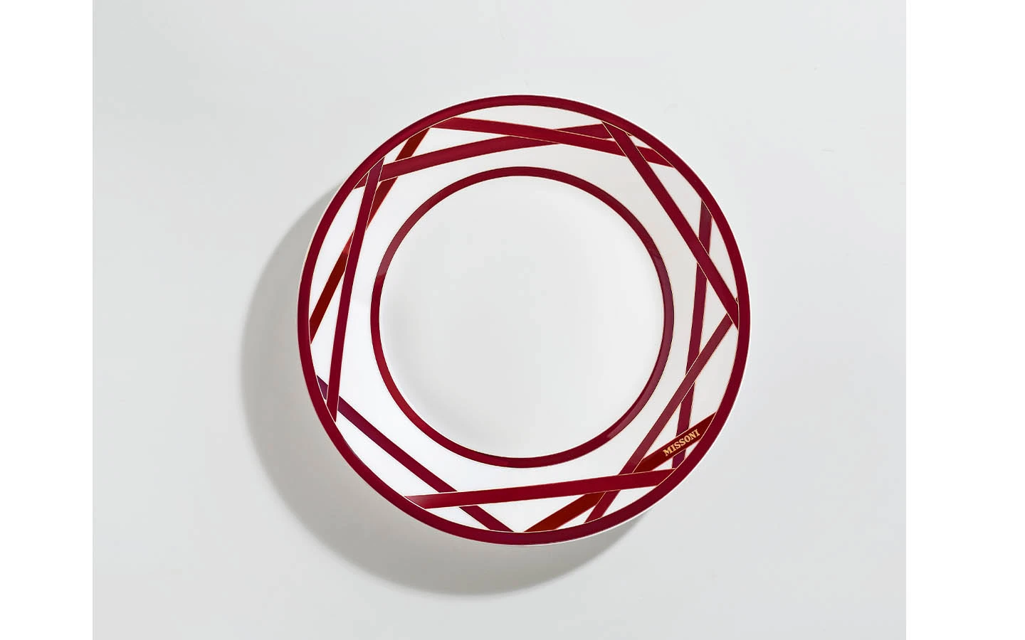 Сет от 2 дълбоки чинии 22 см от колекцията Nastri Bordeaux на Missoni Home. Колекцията се характеризира с хармония, класика и елегантност. Монохромната декорация в цвят бордо е украсена със златен контур, който подчертава нейната красота. 100% фин костен порцелан.