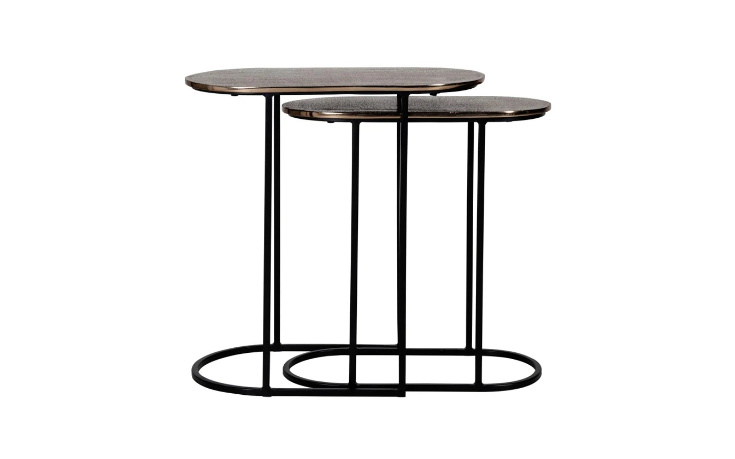 Сет от 2 странични маси CHANDON от колекцията на бранда Richmond Interiors. Структура от метал – финиш Black. Плот от алуминий – финиш Champagne gold.