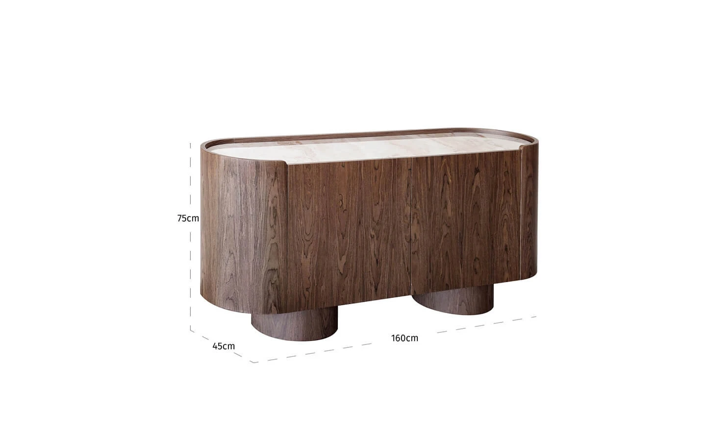 CALLAHAN BROWN 2 DOORS от RICHMOND INTERIORS е елегантен шкаф с модерен и изчистен дизайн, който се отличава с широк, затворен силует и спокойни хоризонтални линии. Топлият кафяв нюанс придава дълбочина и създава балансирано и уютно излъчване в интериора. Плавните форми и семплата визия позволяват моделът лесно да се впише както в съвременни, така и в по-класически пространства. Шкафът разполага с две врати, зад които се намира практично пространство за съхранение на съдове, аксесоари или други вещи, като същевременно запазва подредения и минималистичен вид на помещението. Плотът с керамична повърхност добавя елегантен акцент и създава фин контраст с топлия кафяв корпус. Конструкцията е изработена от MDF и керамика, което осигурява стабилност и дълготрайност при ежедневна употреба. CALLAHAN BROWN 2 DOORS от RICHMOND INTERIORS е стилно и функционално решение за хол или трапезария, което съчетава практично съхранение и изискана съвременна естетика.