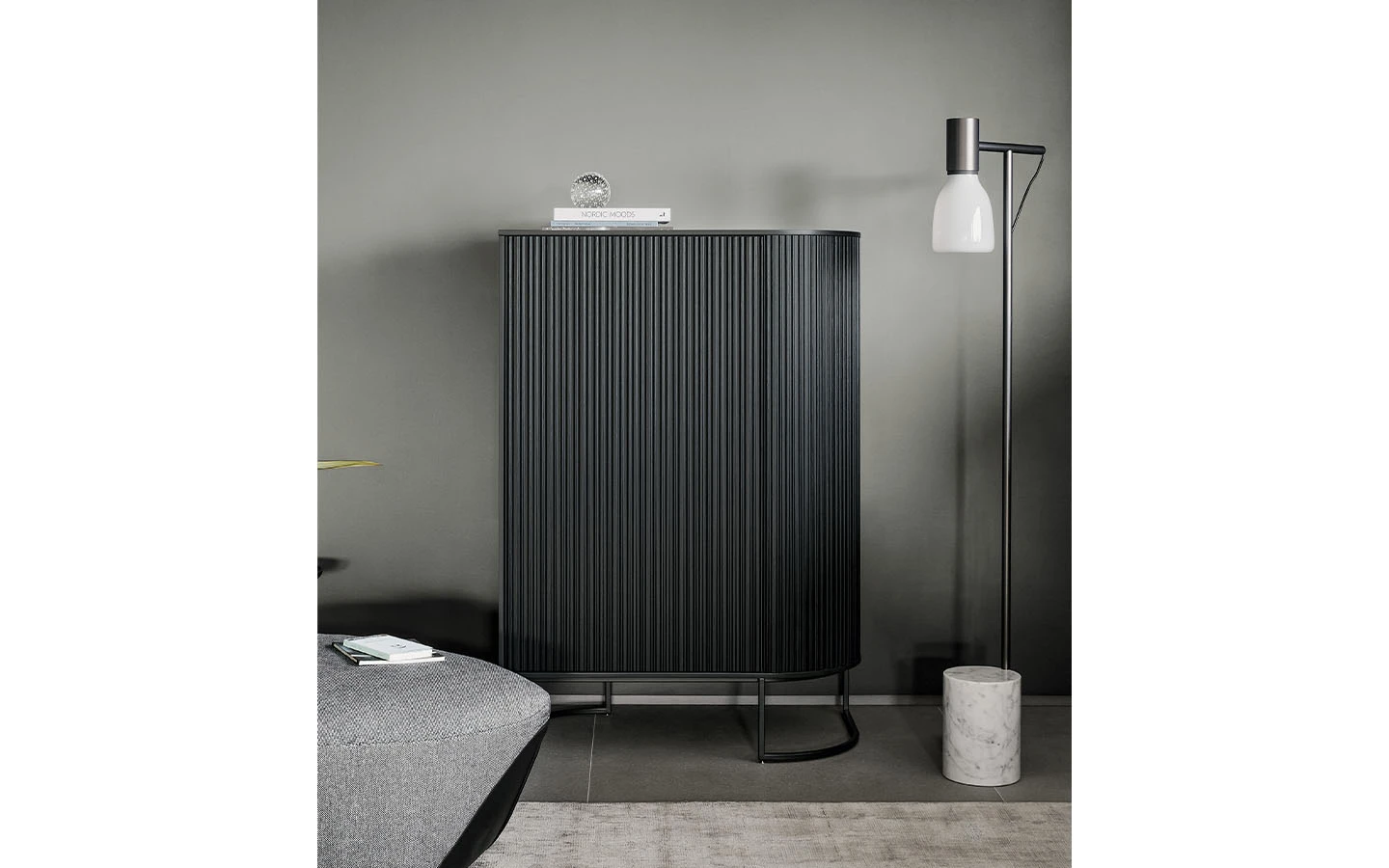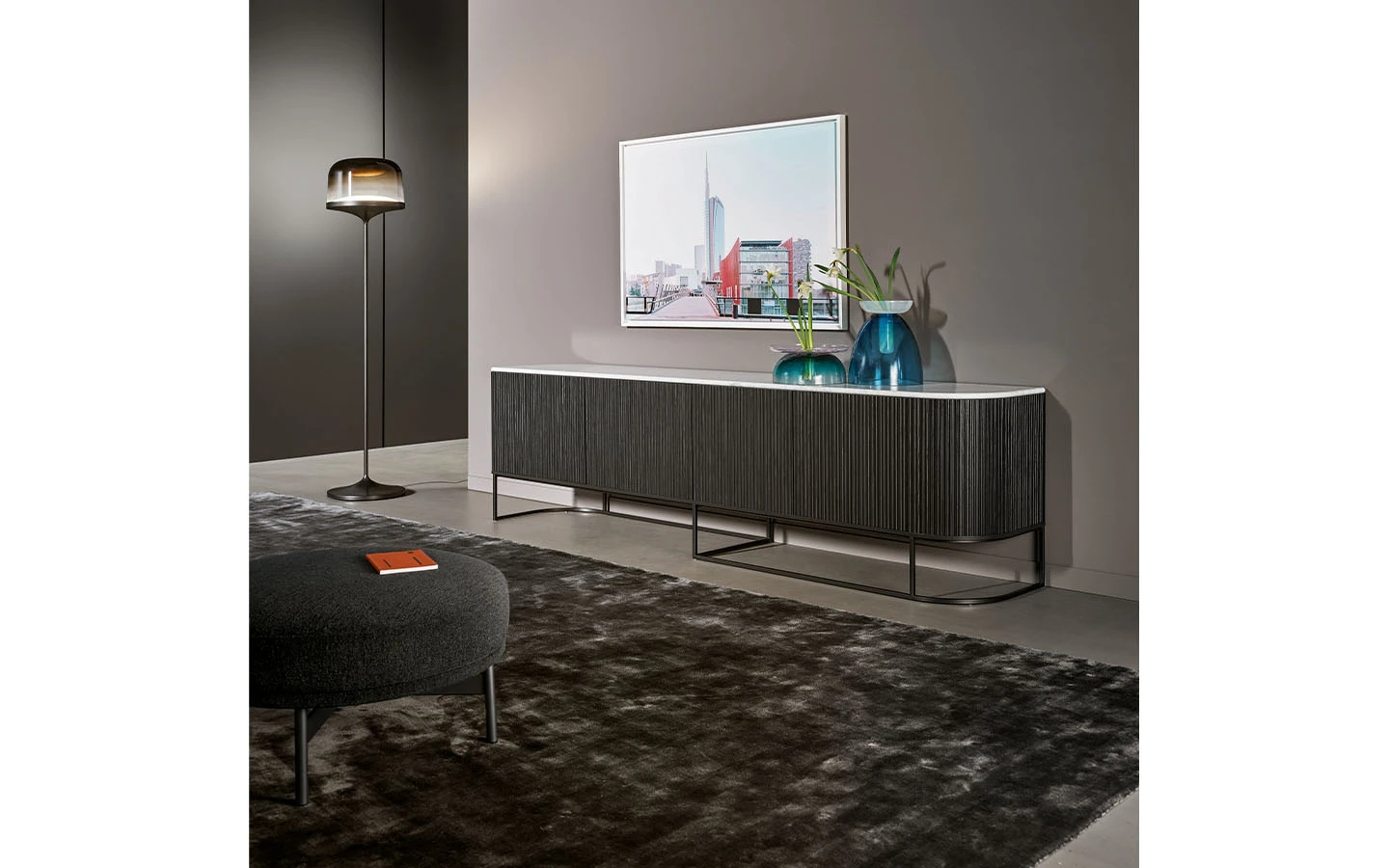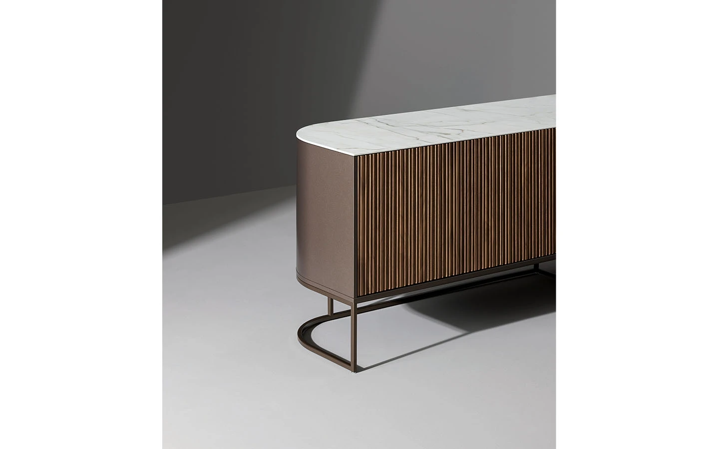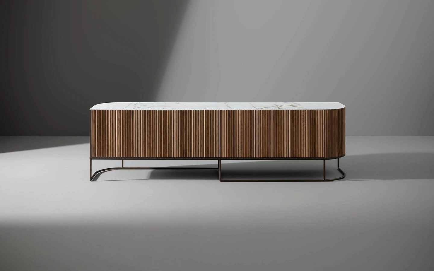 DUNE е дизайнерски дървен шкаф със строг стил, който също така е изключително елегантен и прецизно проектиран до последния детайл. Това е елемент, който се вписва перфектно както в частен дом, така и в офис. Дървените предни врати са с вълнообразна повърхност, която създава редуване на светлина и сянка, докато металната основа има асиметричен дизайн, който подчертава хоризонталната структура на секционния шкаф DUNE.