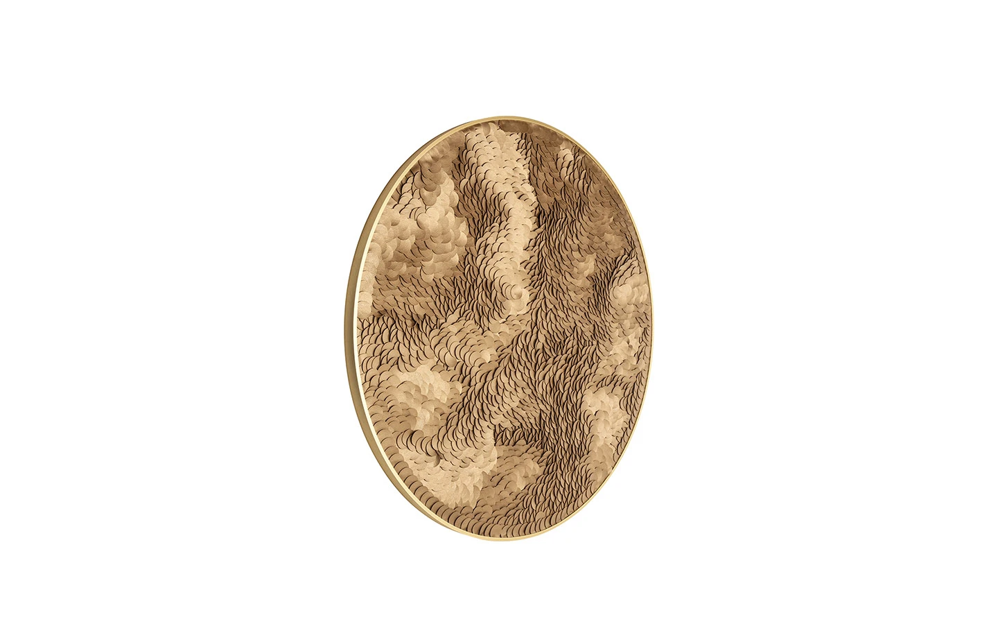Стенната декорация BLOOM от Richmond Interiors е елегантно произведение на изкуството, което съчетава изтънчен дизайн и луксозно излъчване. Със своята кръгла форма и златисти тонове, тя придава усещане за дълбочина и движение, напомнящо на разцъфнали венчелистчета. Тази стенна декорация е идеална за добавяне на луксозен акцент в хола, трапезарията или офис пространството. Нейният модерен дизайн и златисти детайли я правят подходяща за различни интериорни стилове, от класически до съвременни.