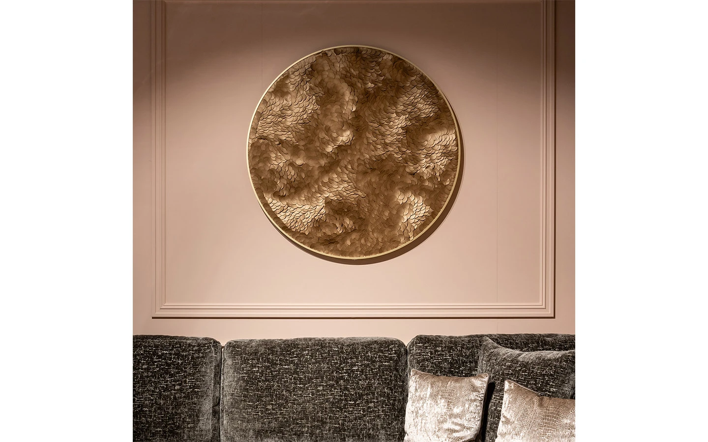 BLOOM е стенна декорация от колекцията на нидерландския производител Richmond Interiors. Стенната декорация е изработена от MDF, кожа и метал – финиш Gold.