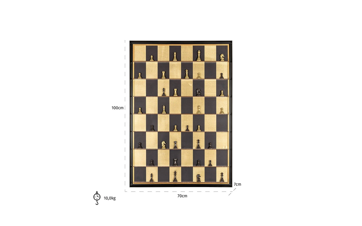 Стенната декорация NALA от Richmond Interiors е впечатляващо произведение на изкуството, което съчетава елегантност и съвременен дизайн. Със своята черно-златиста цветова схема и геометричен мотив, напомнящ на шахматна дъска, тази декорация придава изискан акцент на всяко помещение. Тази стенна декорация е идеална за добавяне на луксозен акцент в хола, трапезарията или офис пространството. Нейният модерен дизайн и златисти детайли я правят подходяща за различни интериорни стилове, от класически до съвременни.