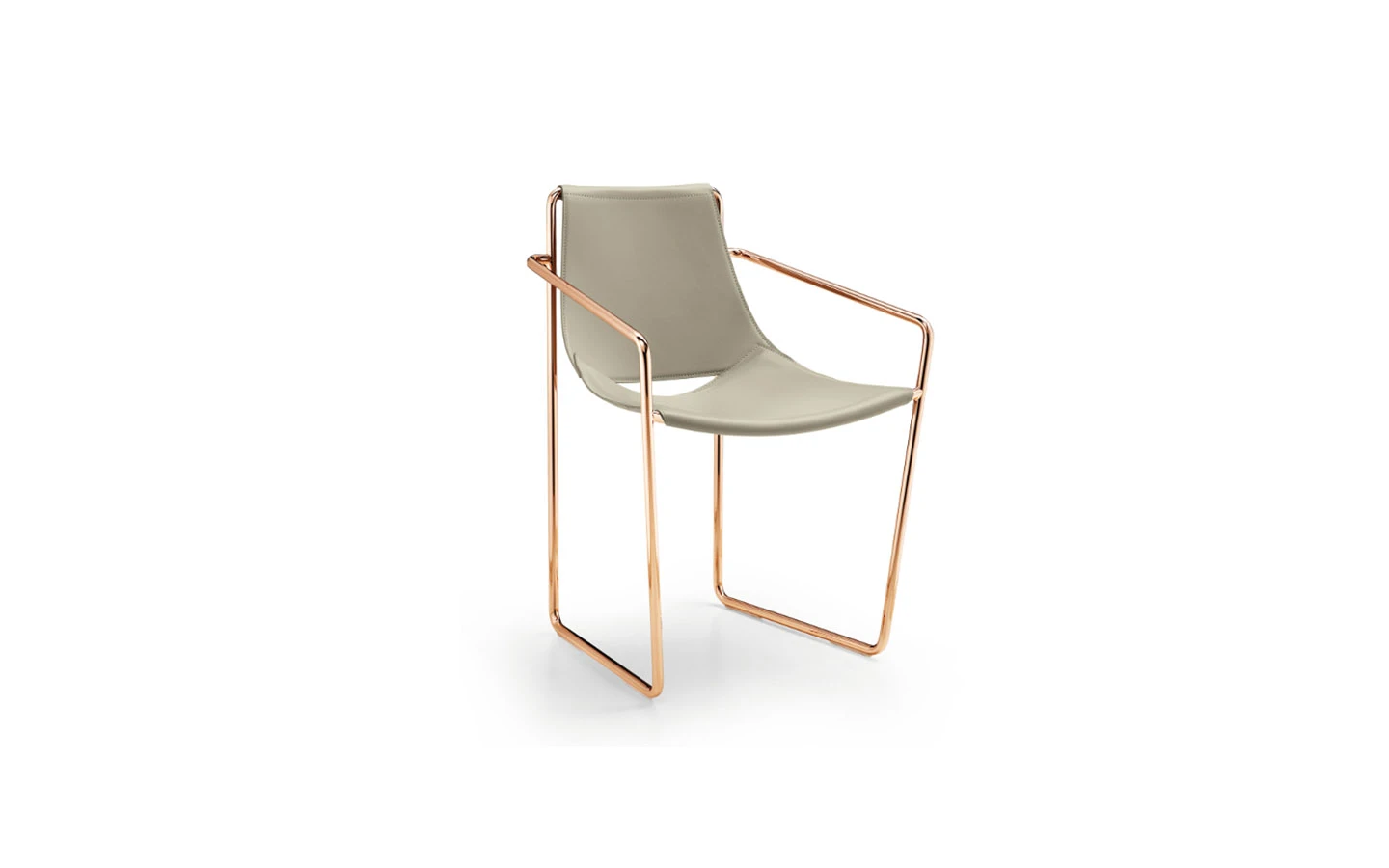 APELLE P M CU е италиански трапезен стол от колекцията на италианския производител MIDJ. Структурата на стола е изработена от метал – финиш по избор. Столът може да бъде тапициран в естествен гъон – вид по избор на клиента. Цената се определя спрямо избора на вид естествен гъон и финиш на метала.