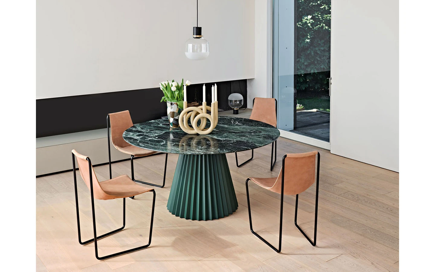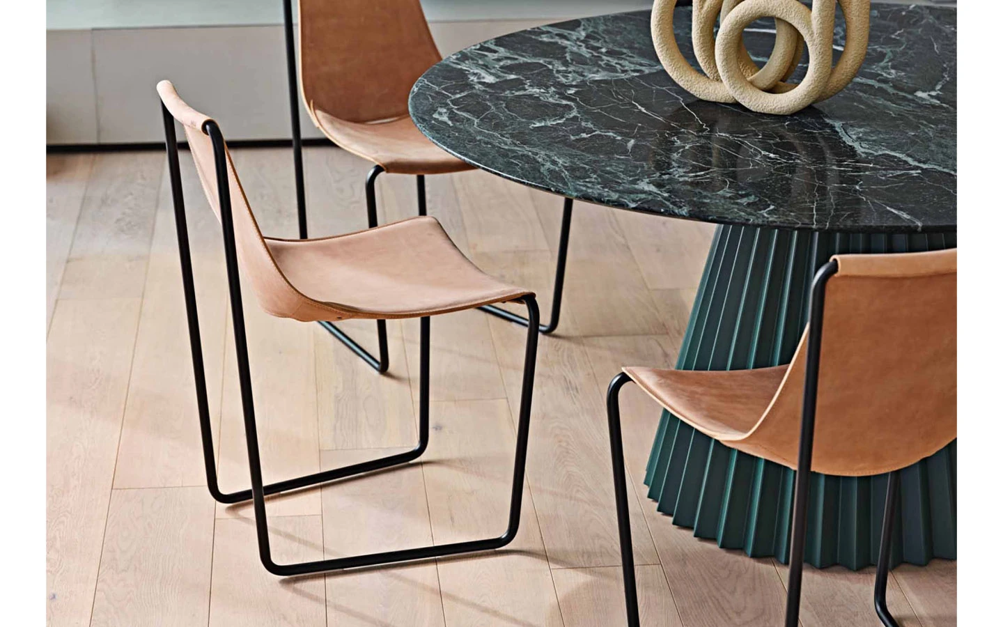 Столът APELLE S M CU на италианския производител MIDJ е изтънчен модел, който съчетава елегантен минимализъм и първокласна изработка. Дизайниран от Beatriz Sempere през 2013 г., той е част от колекцията Apelle, известна със своите обтекаеми линии и хармоничен баланс между метал и естествена кожа. Конструкцията е изградена от тънка метална рамка, която придава лекота и модерна визия. Тапицерията е опъната върху конструкцията по начин, който позволява тя да обгръща тялото, като същевременно остава стабилна и издръжлива. Със своите компактни размери и изчистена форма APELLE S M CU е подходящ за използване както в домашна среда – като трапезарен или допълнителен стол – така и в обществени пространства като чакални, ресторанти или конферентни зали. Столът се изработва по поръчка в Италия, с прецизност и внимание към всеки детайл, и предлага отлично съчетание между съвременен стил, функционалност и дълготрайно качество.