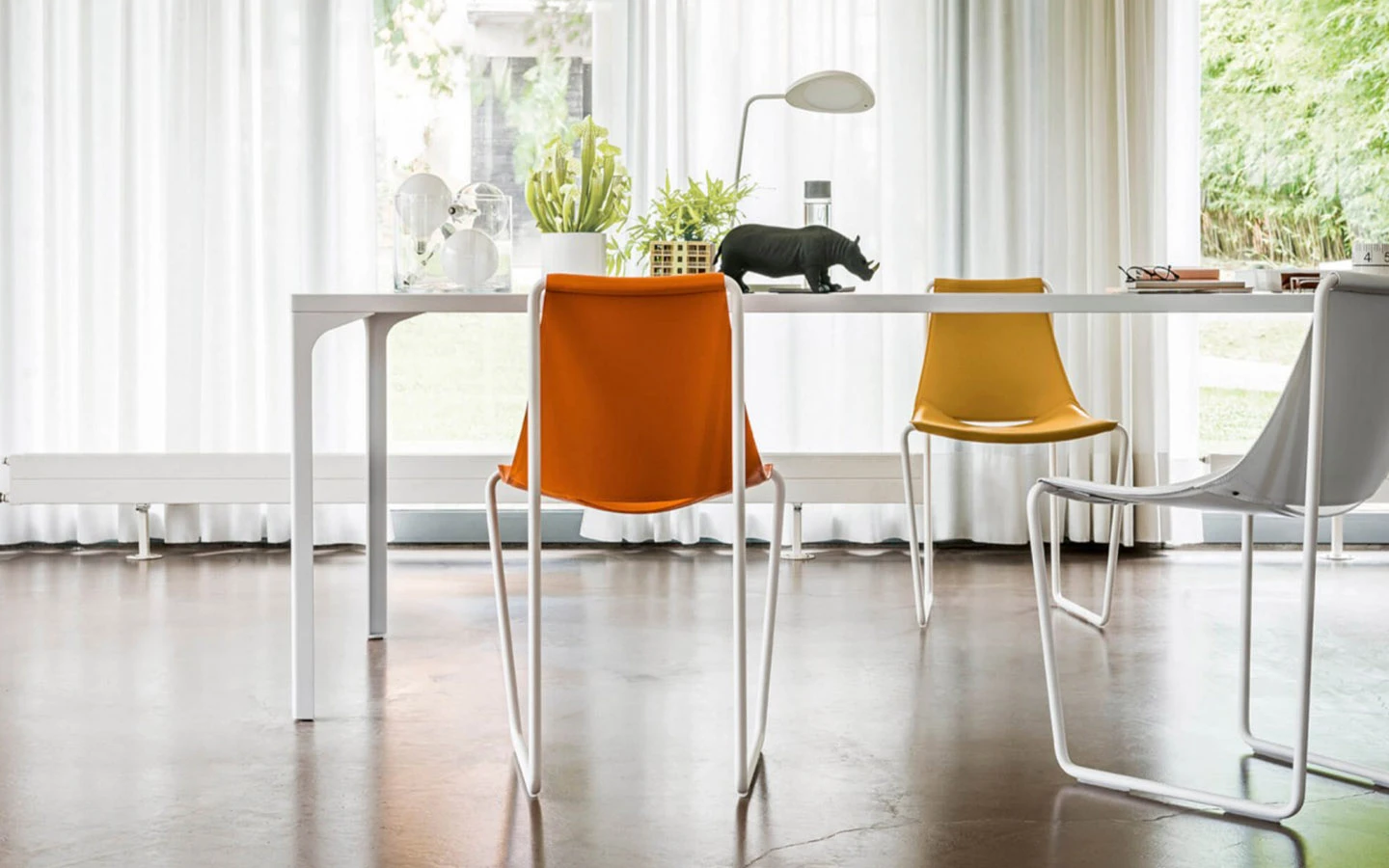 APELLE S M CU е италиански трапезен стол от колекцията на италианския производител MIDJ. Структурата на стола е изработена от метал – финиш по избор. Столът може да бъде тапициран в естествен гъон – вид по избор на клиента. Цената се определя спрямо избора на вид естествен гъон и финиш на метала.