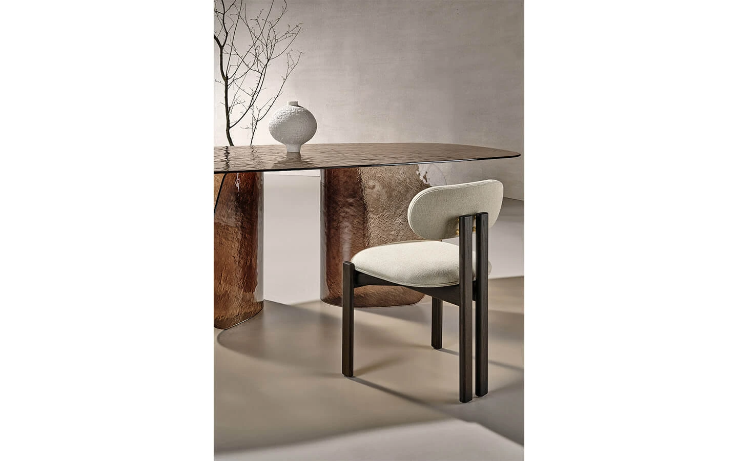 Столът BAY на NATURE DESIGN впечатлява с елегантен силует и плавни, обгръщащи форми, които създават усещане за комфорт още от пръв поглед. Моделът се предлага с рамка от масивно дърво или метал, което позволява лесно съчетаване с различни интериорни стилове. Седалката и облегалката са тапицирани и могат да бъдат изпълнени в плат, естествена кожа или набук, като всяка опция добавя собствен характер и текстура. Благодарение на изчистения си дизайн и компактните си размери BAY е подходящ както за трапезария, така и за по-елегантна кухня или зона за хранене, превръщайки се в стилен и удобен акцент в пространството.