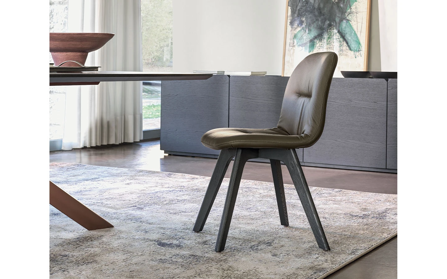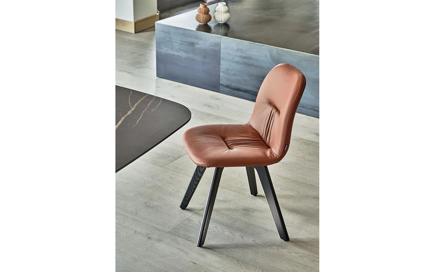 Столът CHANTAL от Bontempi Casa е елегантен избор за сядане, който съчетава съвременен дизайн с възможности за персонализация. Той се предлага с рамка от масивна дървесина, която осигурява естествен и изтънчен външен вид.