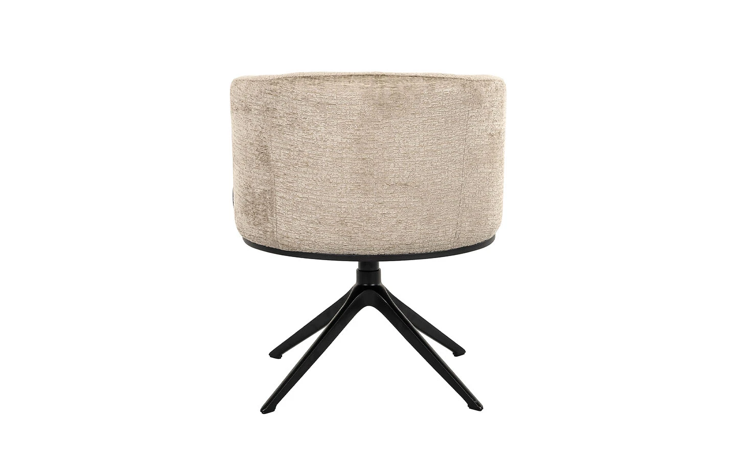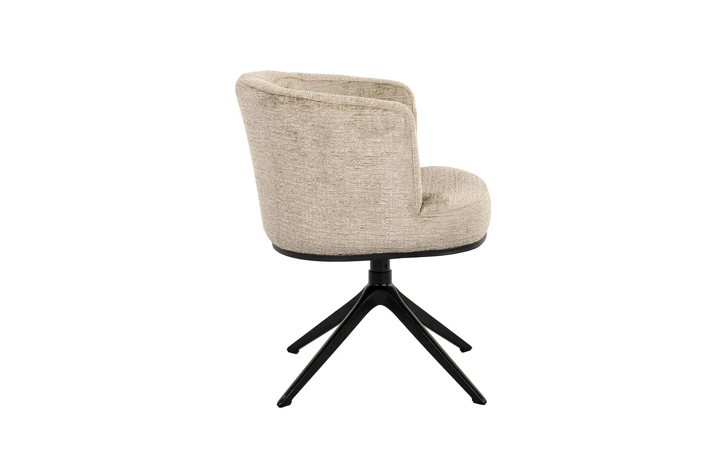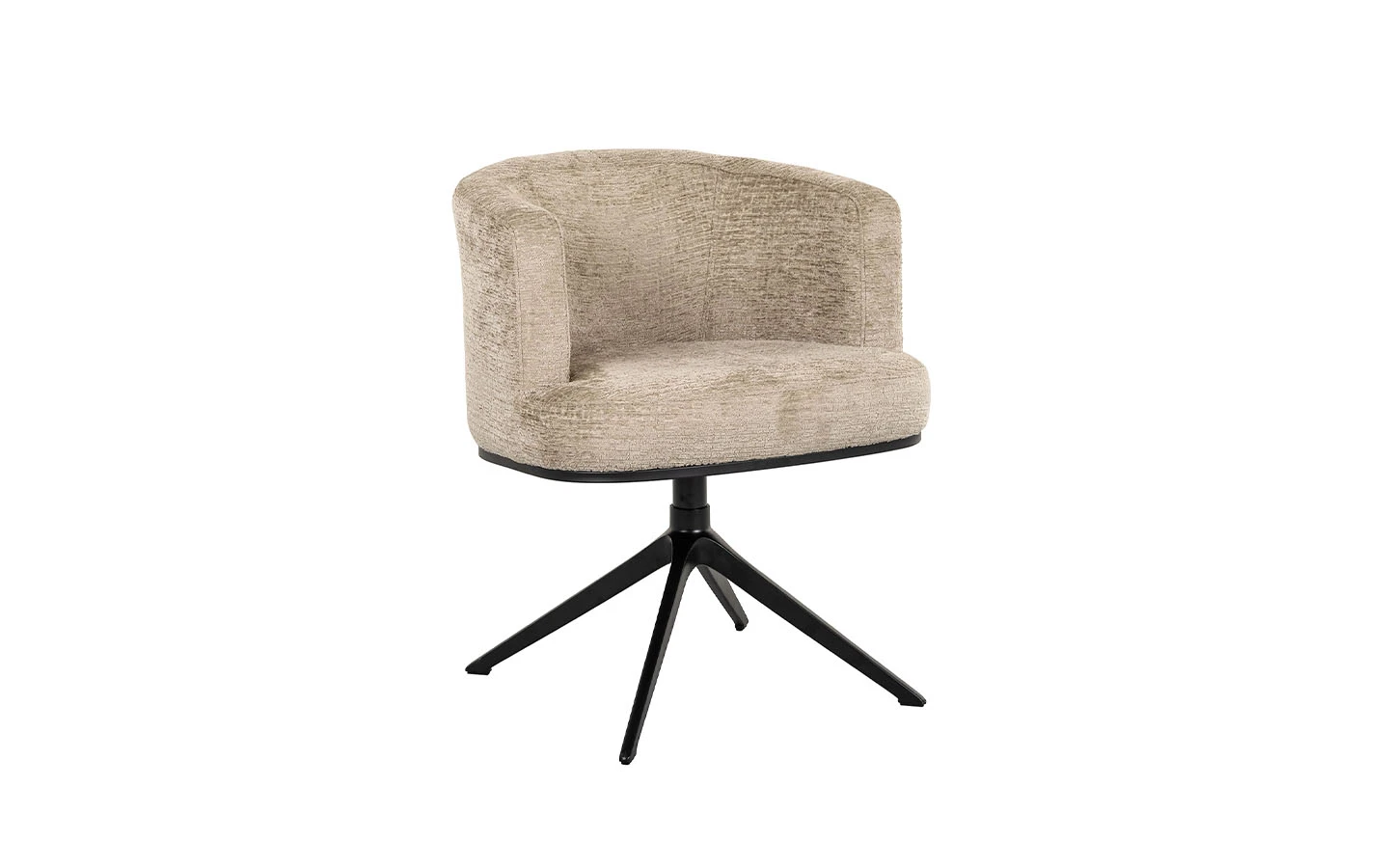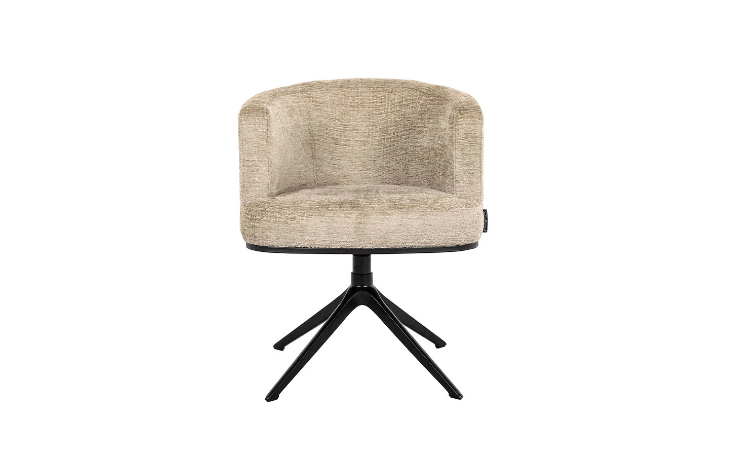 CHEYENNE DESERT FUSION е трапезарен стол от колекцията на нидерландския производител Richmond Interiors. Основата е въртяща се и е изработена от метал – финиш Black. Столът е тапициран в дамаска – Fusion 109 Desert.