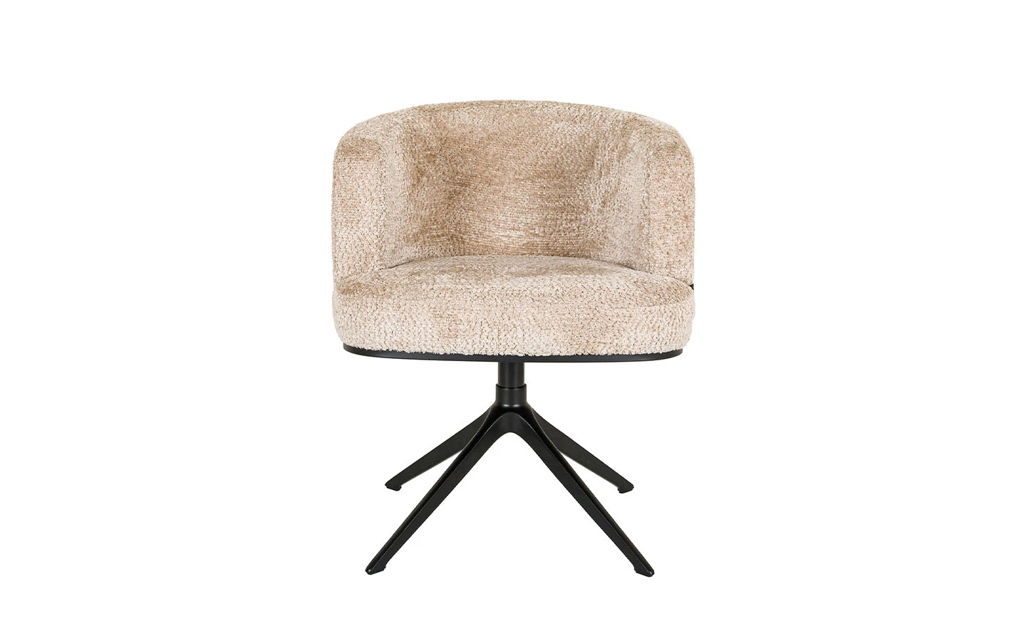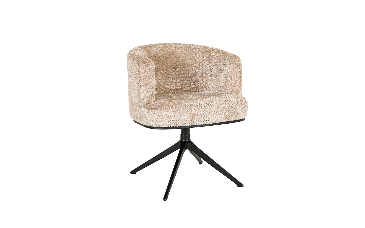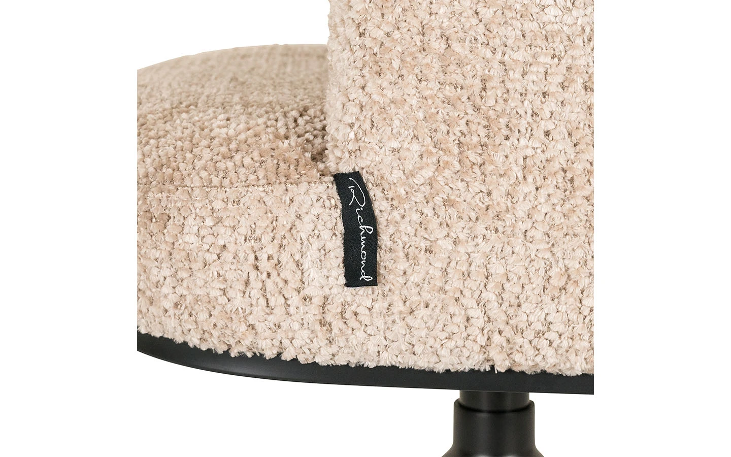 CHEYENNE LOVELY BEIGE е трапезарен стол от колекцията на нидерландския производител Richmond Interiors. Основата е въртяща се и е изработена от метал – финиш Black. Столът е тапициран в дамаска – Be Lovely 170 Beige.