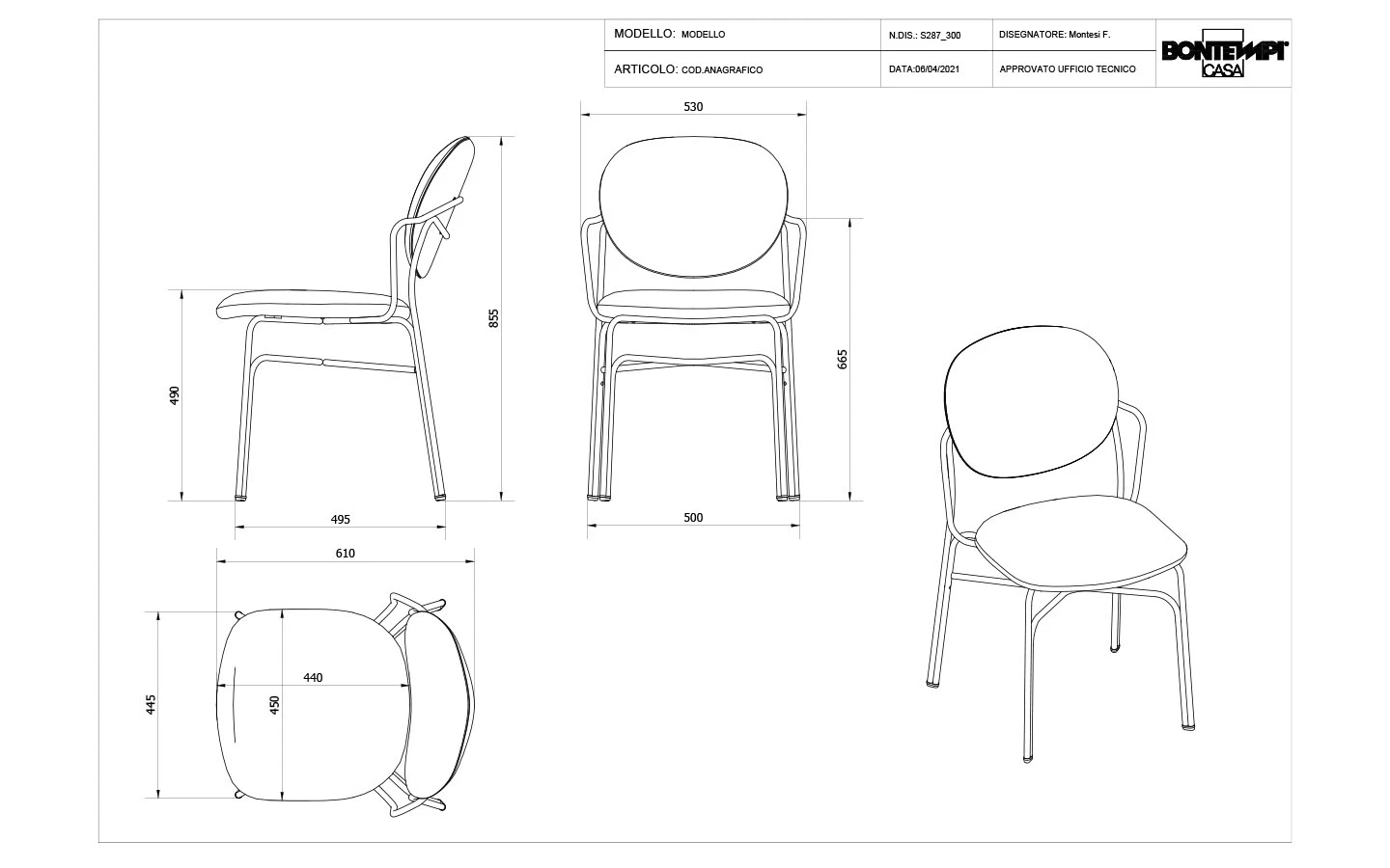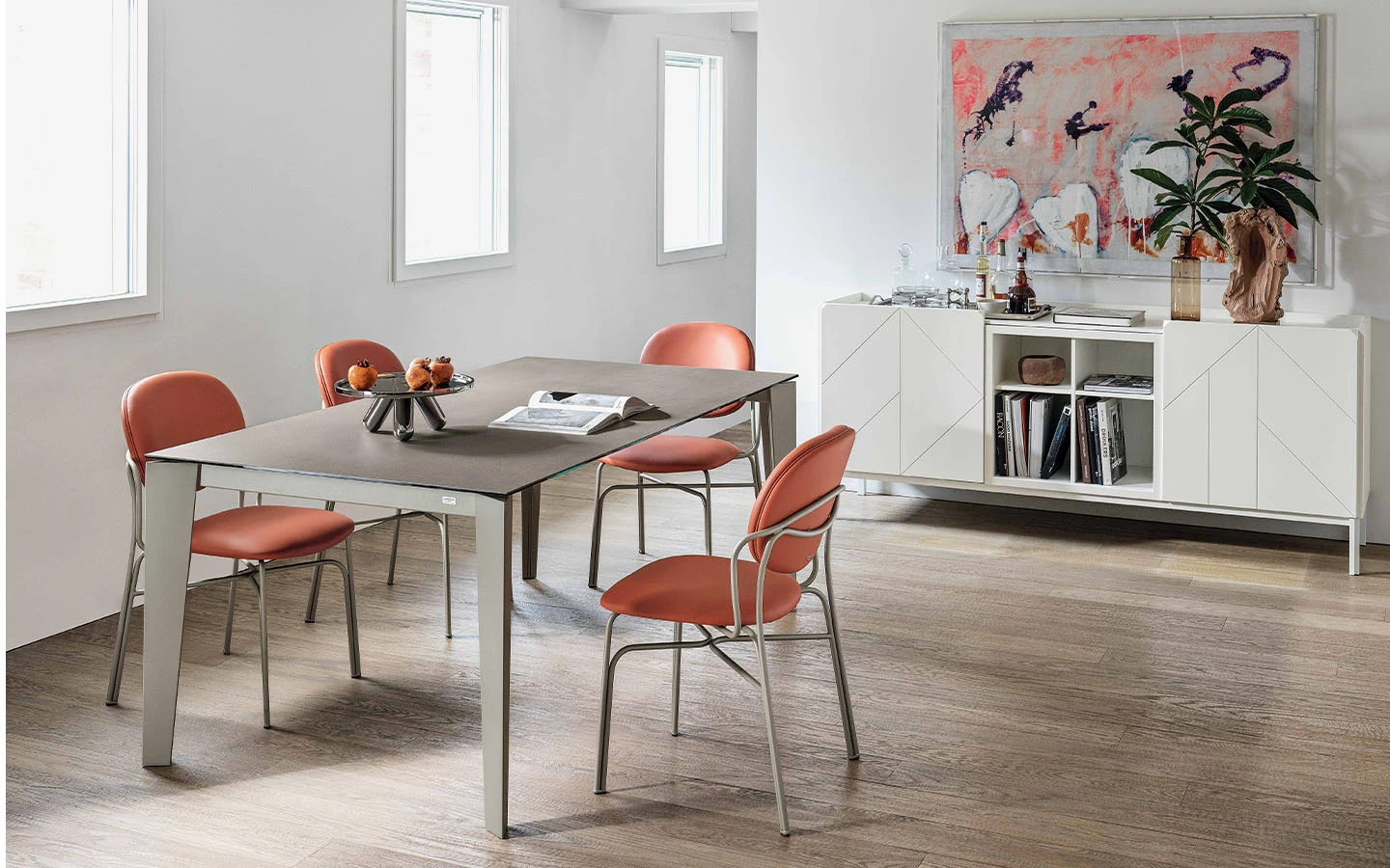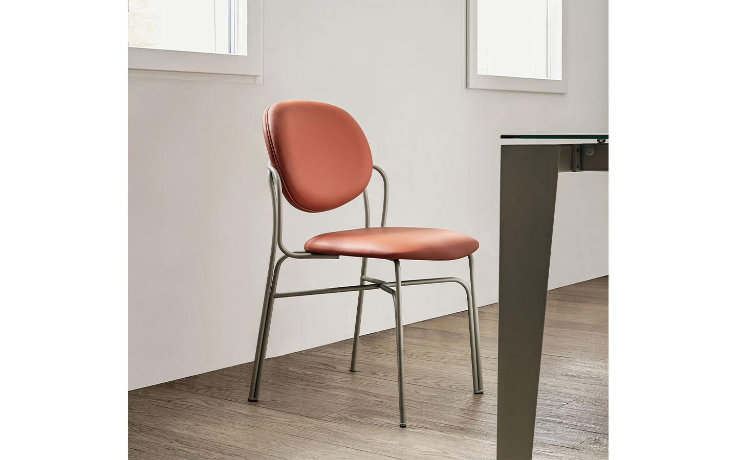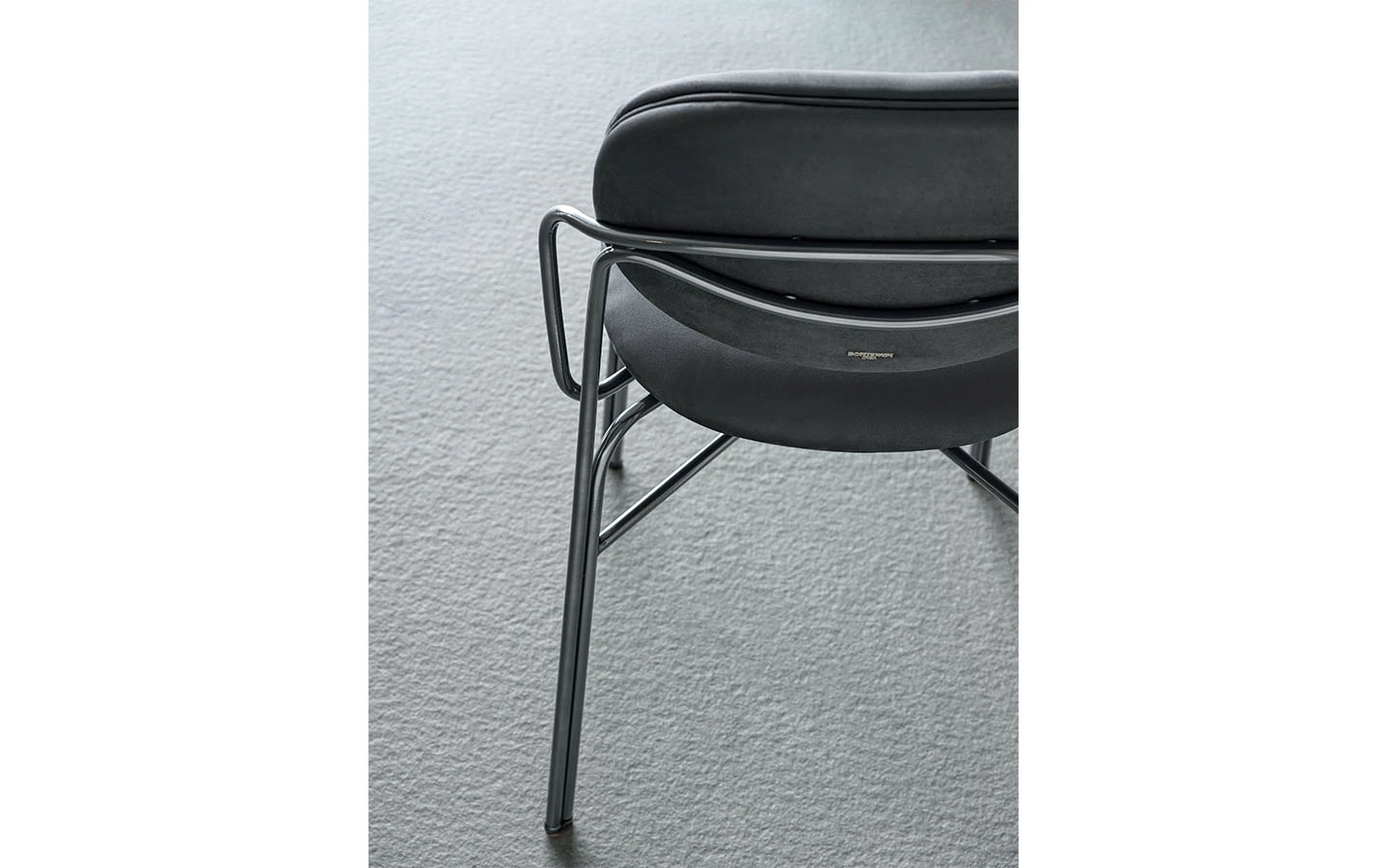 Столът DADA от Bontempi Casa, проектиран от Pocci & Dondoli, представлява съвременна интерпретация на дизайна от 50-те години на миналия век, съчетавайки модерна естетика и елегантност. Той се отличава с тънка, извита метална рамка, която създава изчистен профил, поддържащ удобно тапицирани седалка и облегалка. Изисканият дизайн и възможностите за персонализация правят стола DADA подходящ за трапезарии, дневни или офис пространства. Той отразява ангажимента на Bontempi Casa към качество и стил.