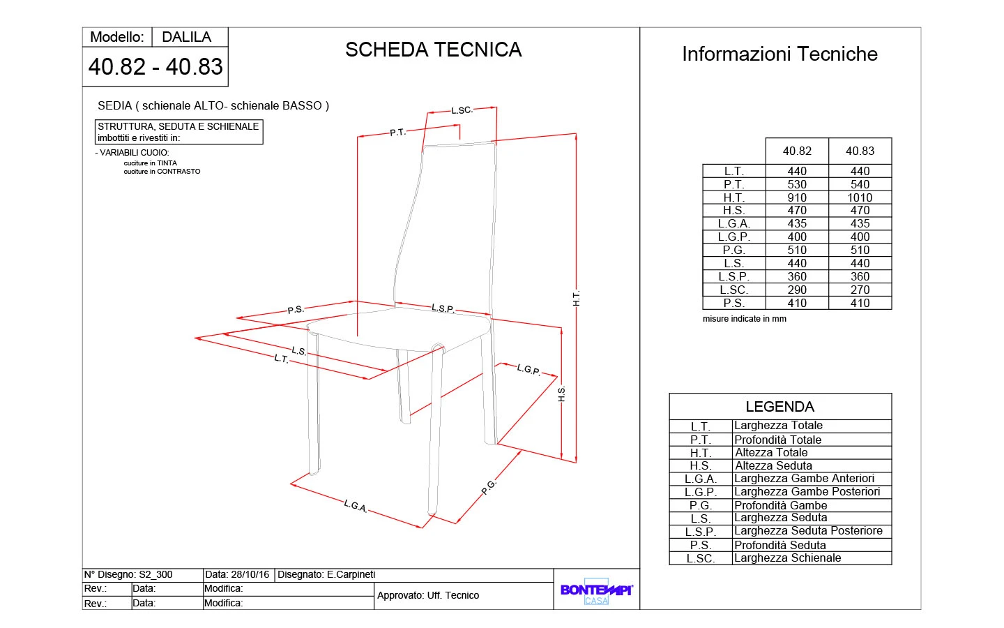DALILA е трапезарен стол от колекцията на италианския производител Bontempi. Италианският трапезарен стол DALILA е изцяло тапициран в естествен гьон – цвят по избор. Предлага се с шевове в същия или контрастен цвят, което позволява персонализация според индивидуалните предпочитания. Столът се предлага с висока (DALILA HIGH) или ниска (DALILA LOW) облегалка. Цената на стола се формира на база на избора на вид облегалка.