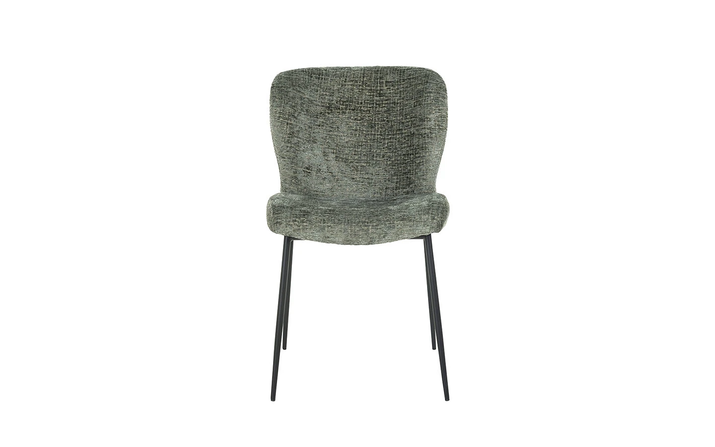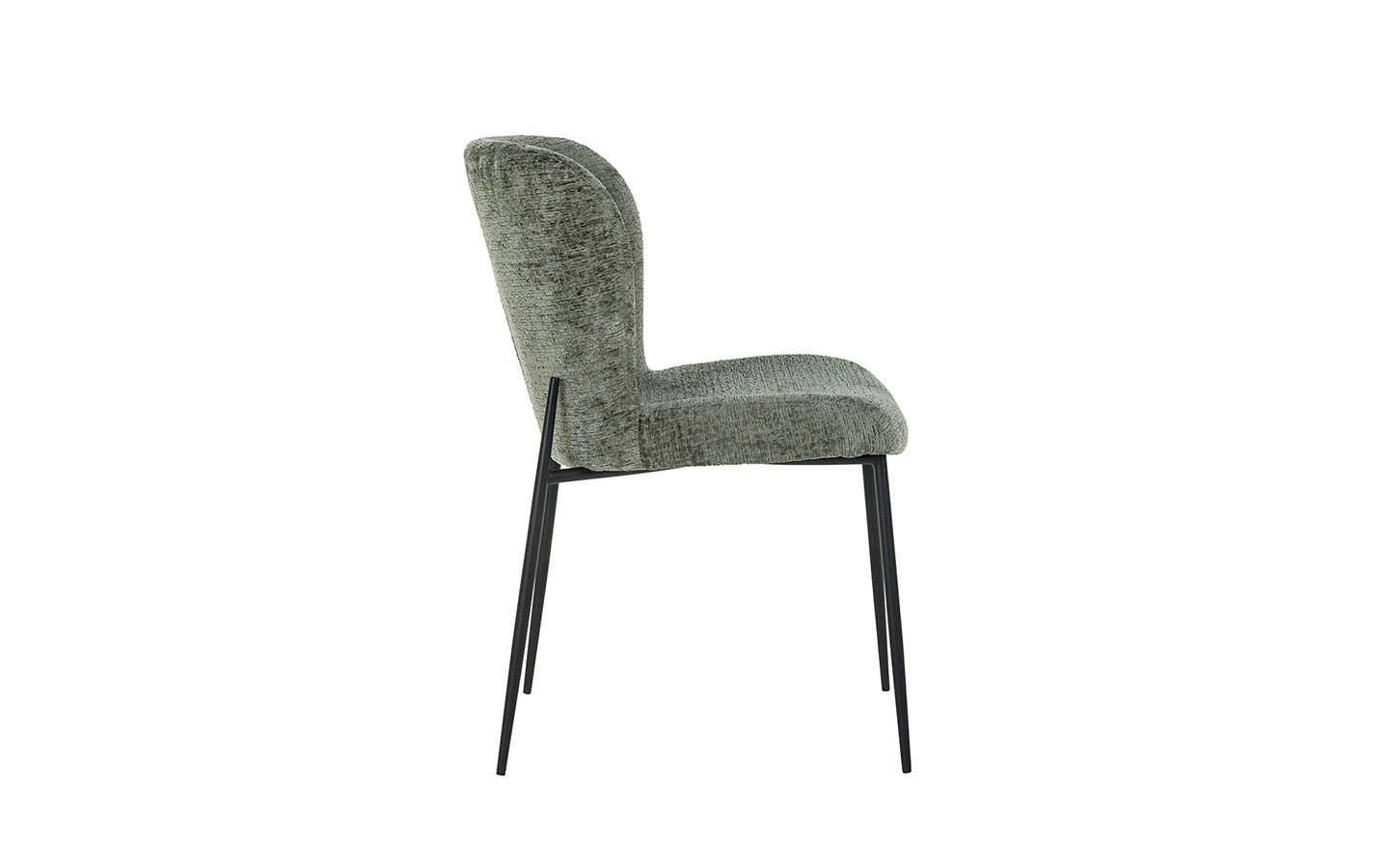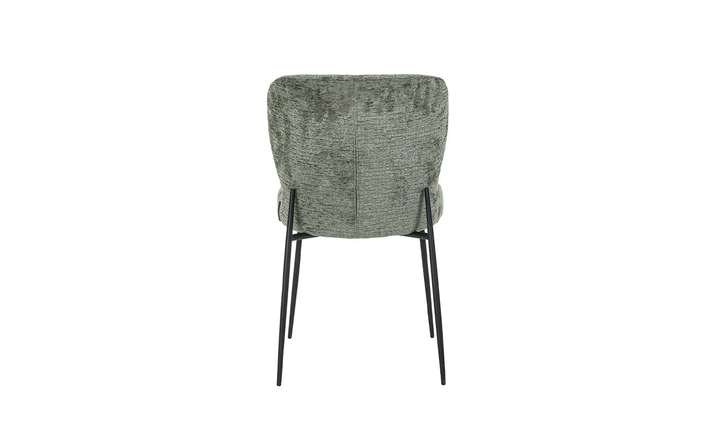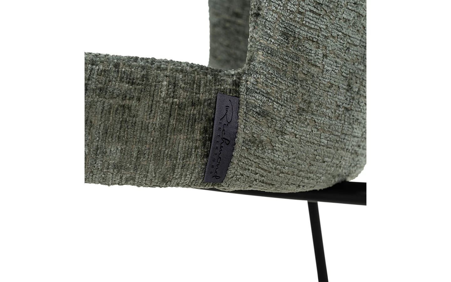 Столът DARBY THYME FUSION от Richmond Interiors е елегантен трапезен стол, който съчетава модерен дизайн с комфорт. Тапициран е с плат Fusion Thyme 206, осигуряващ мека и издръжлива повърхност. Краката са от черен метал, придавайки на стола съвременен вид и стабилност.