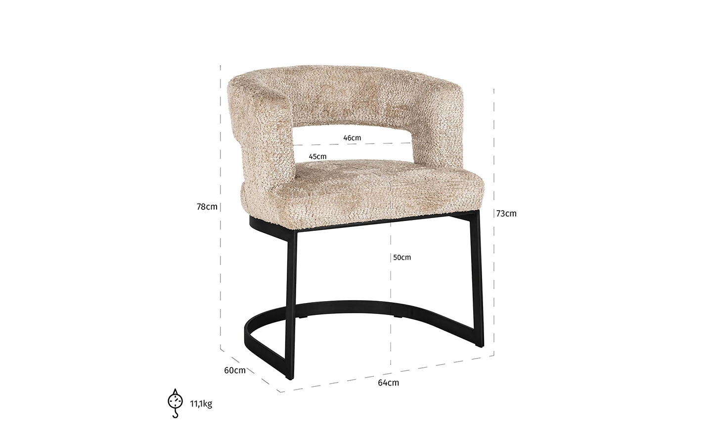 Столът ELLIS LOVELY BEIGE от Richmond Interiors е стилно и удобно решение за обзавеждане, подходящо за различни интериорни пространства. Той е тапициран с дамаска Be Lovely 170 Beige – мек и издръжлив плат от 100% полиестер в неутрален бежов тон, който лесно се съчетава с разнообразни стилове на обзавеждане. Столът разполага с елегантно извита облегалка с интегрирани подлакътници, които осигуряват едновременно естетика и ергономична опора. Здравата му конструкция осигурява стабилност, а омекотената седалка с пълнеж от пяна предоставя приятно усещане при сядане. ELLIS е универсален модел, подходящ за трапезарии, дневни или като акцентен стол в спални помещения.