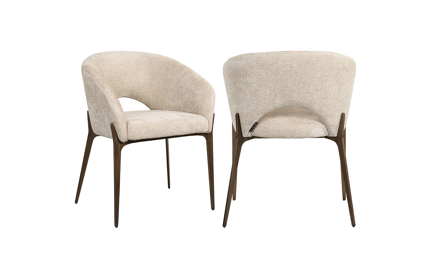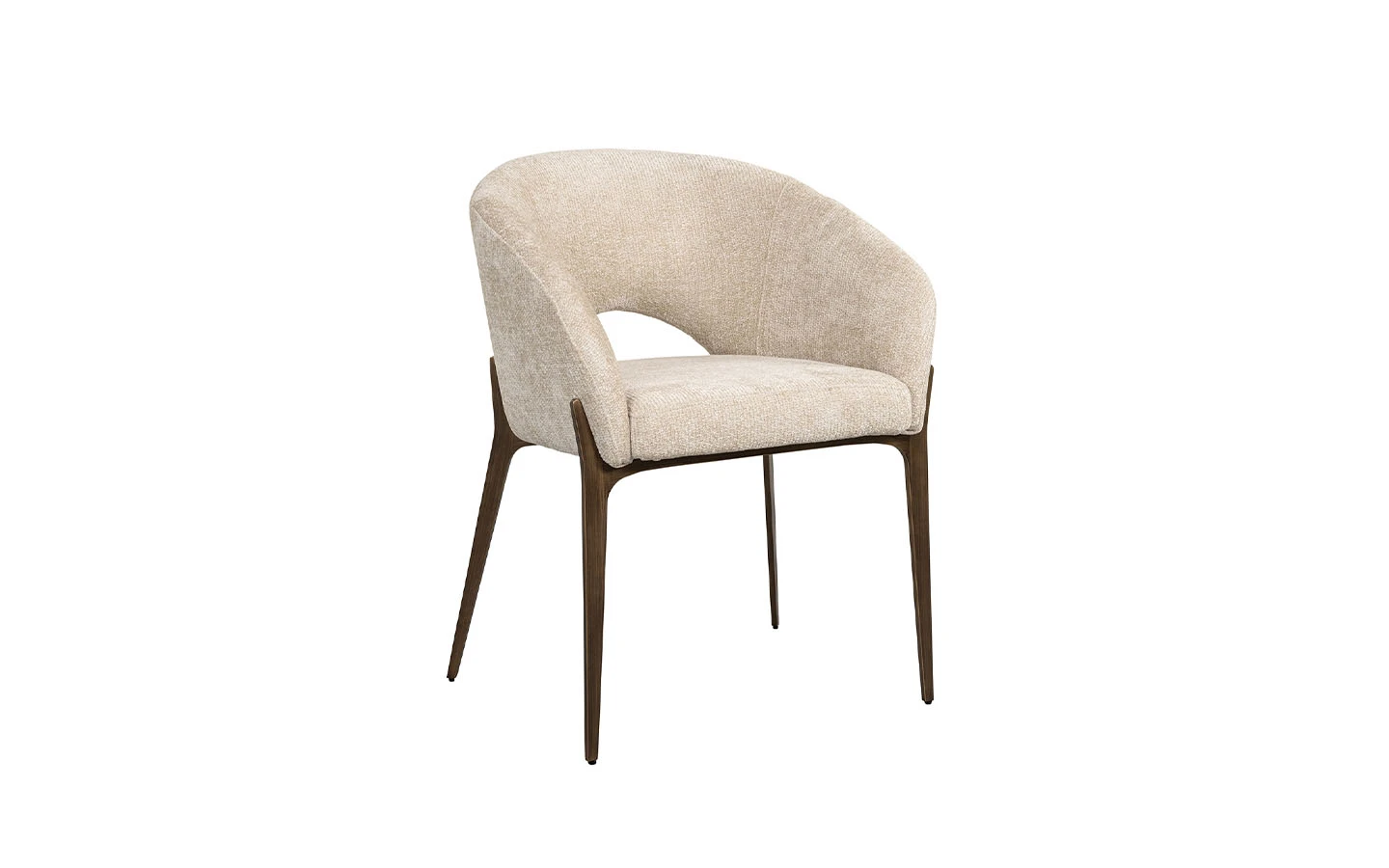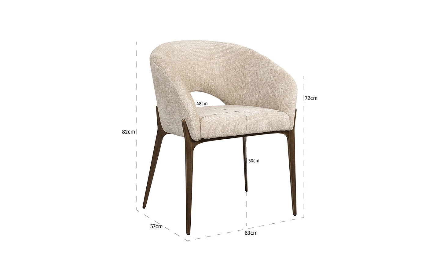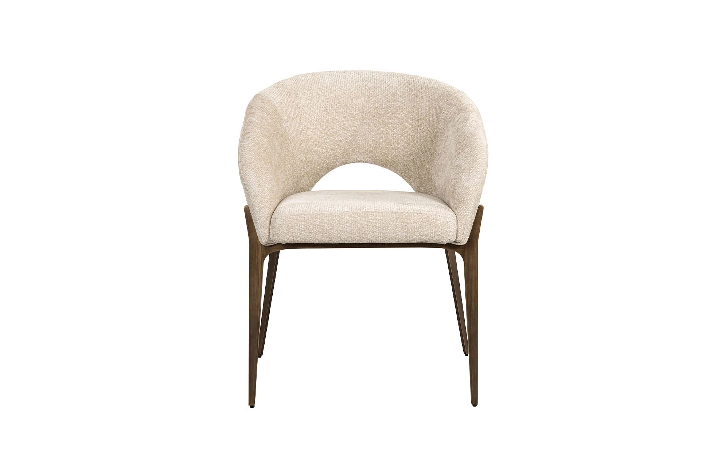 KENZI CREAM UNICORN е трапезарен стол от колекцията на нидерландския производител Richmond Interiors. Основата е изработена от метал – финиш Brushed Bronze. Столът е тапициран в дамаска – Unicorn 11 cream.