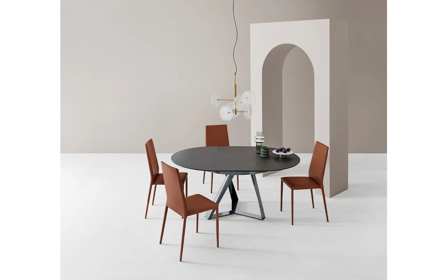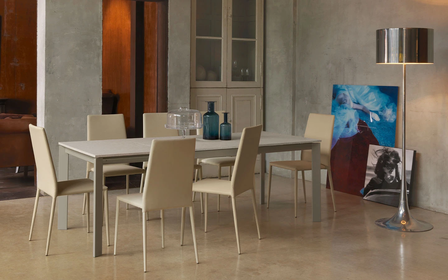 Столът MALIK на Bontempi Casa се отличава с елегантен и изчистен дизайн, съчетаващ комфорт и стил. Тънкият му профил и изцяло тапицирана метална рамка го правят подходящ за съвременни интериори. Метална конструкция, напълно тапицирана за изискан външен вид. Налична в разнообразие от материали. Предлага се версия с гъвкава и ергономична облегалка, осигуряваща допълнителен комфорт. Опция за капитонирана облегалка. Благодарение на разнообразието от опции за тапицерия и дизайна на облегалката, столът MALIK може да бъде персонализиран според индивидуалните предпочитания, което го прави подходящ както за трапезарии, така и за офис пространства.