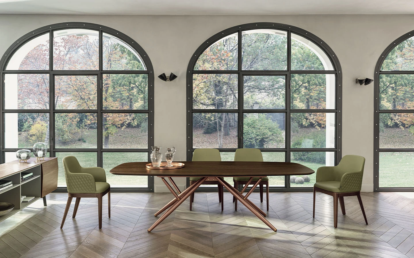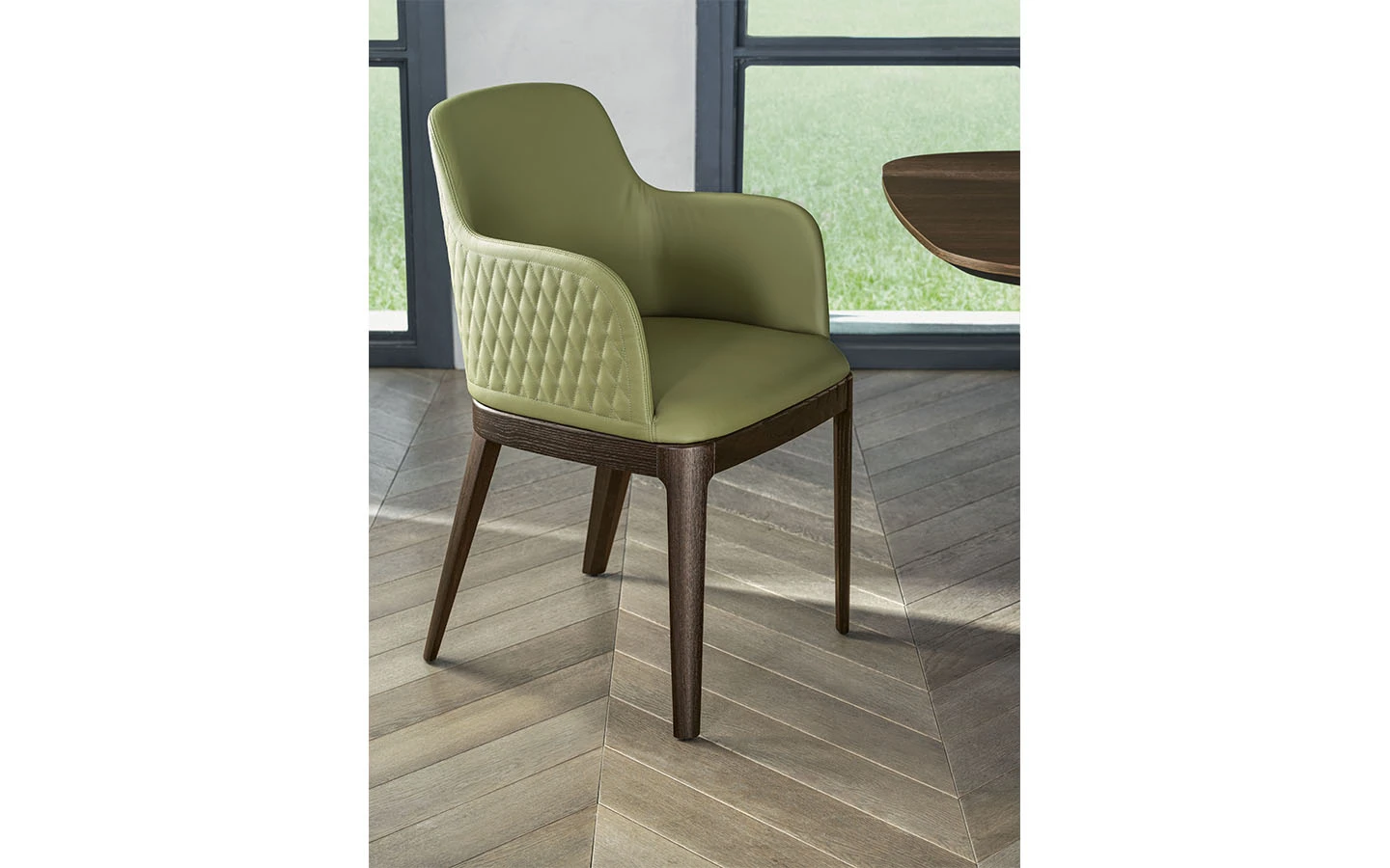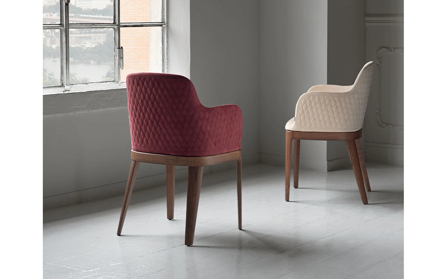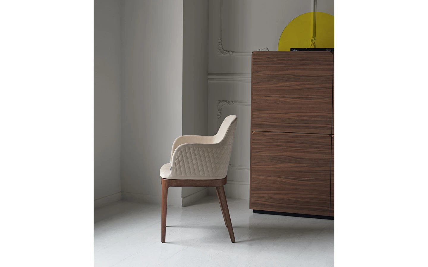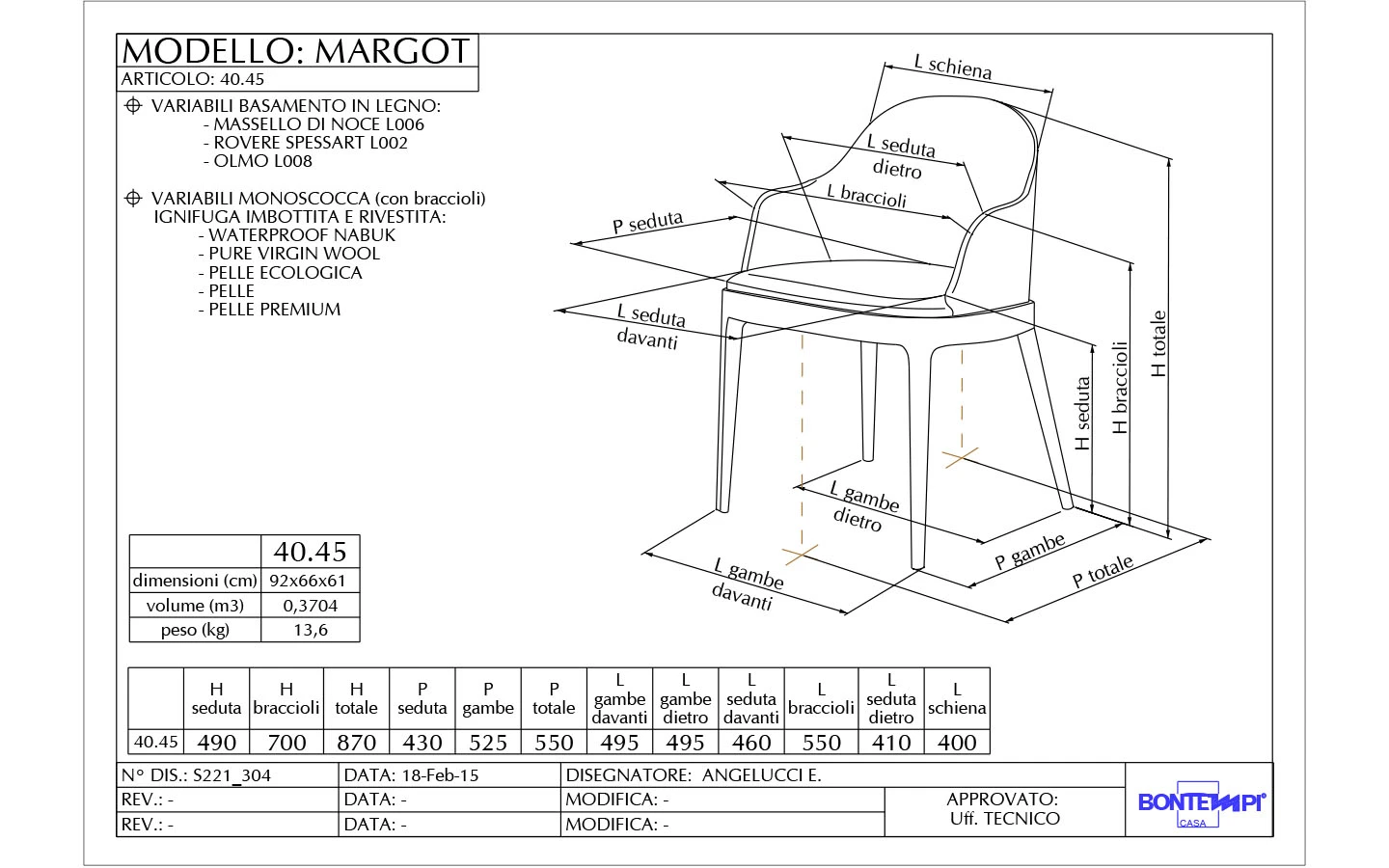 MARGOT WOOD WITH ARMS е трапезарен стол от колекцията на италианския производител Bontempi. Структурата и основата са изработени от масивно дърво – финиш по избор. Италианският трапезарен стол MARGOT WOOD WITH ARMS може да бъде тапициран в дамаска, еко кожа или естествена кожа – материал и цвят по избор на клиента. Опционално, гърбът на облегалката може да бъде с капитонаж на ромбове. Цената на стола се формира на база на избора на вид тапицерия.