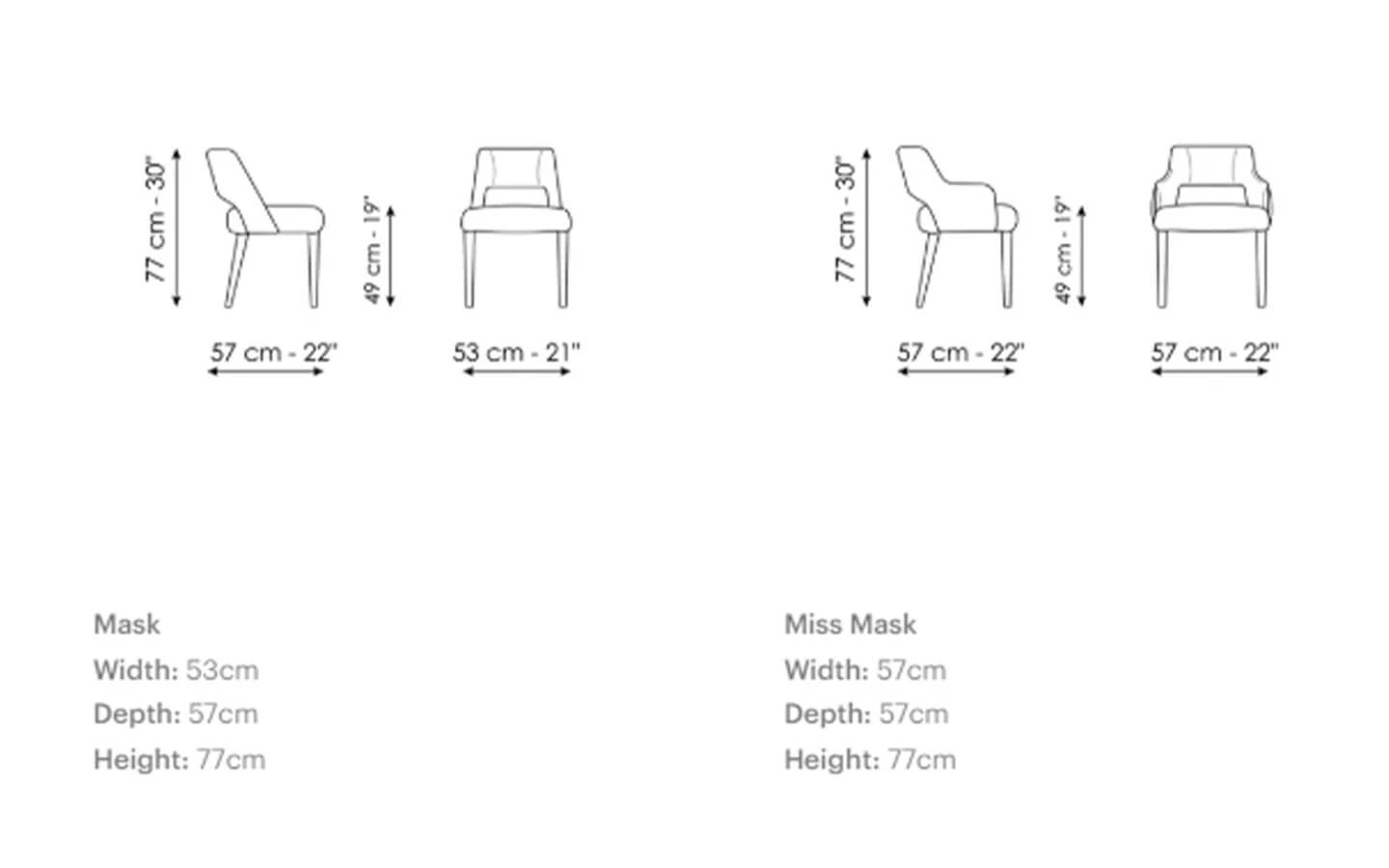 MASK е трапезен стол от колекцията на италианския производител Bonaldo. Структурата е изработена от метал. Столът може да бъде тапициран в дамаска, кожа или еко кожа – материал и цвят по избор. Цената се определя спрямо избора на вид тапицерия.