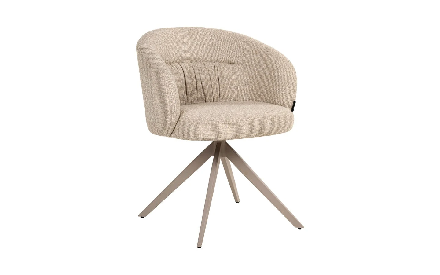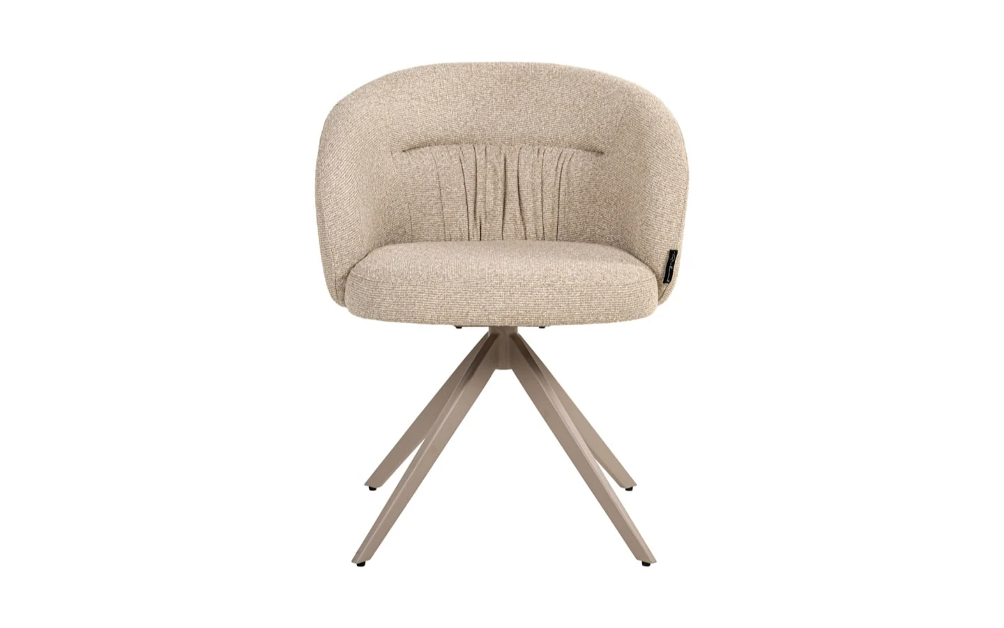OLIVIA BISCOTTI е трапезарен стол от колекцията на нидерландския производител Richmond Interiors. Основата е въртяща се и е изработена от метал. Столът е тапициран в дамаска – Biscotti. Столът е с размери см. 62/62/79H.