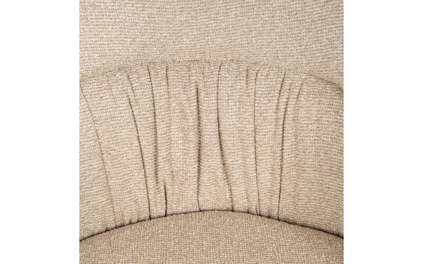 Въртящият се стол OLIVIA BISCOTTI от Richmond Interiors е стилно и функционално допълнение към всеки интериор. Тапициран е с плат в топъл нюанс Biscotti, който се съчетава лесно с различни стилове на обзавеждане. Столът разполага с извита облегалка с интегрирани подлакътници, осигуряващи ергономична опора и комфорт. Конструкцията му е изработена от желязо и шперплат, което гарантира здравина и дълготрайност. Оборудван е с 360-градусов въртящ се механизъм за гъвкавост и удобство при използване.