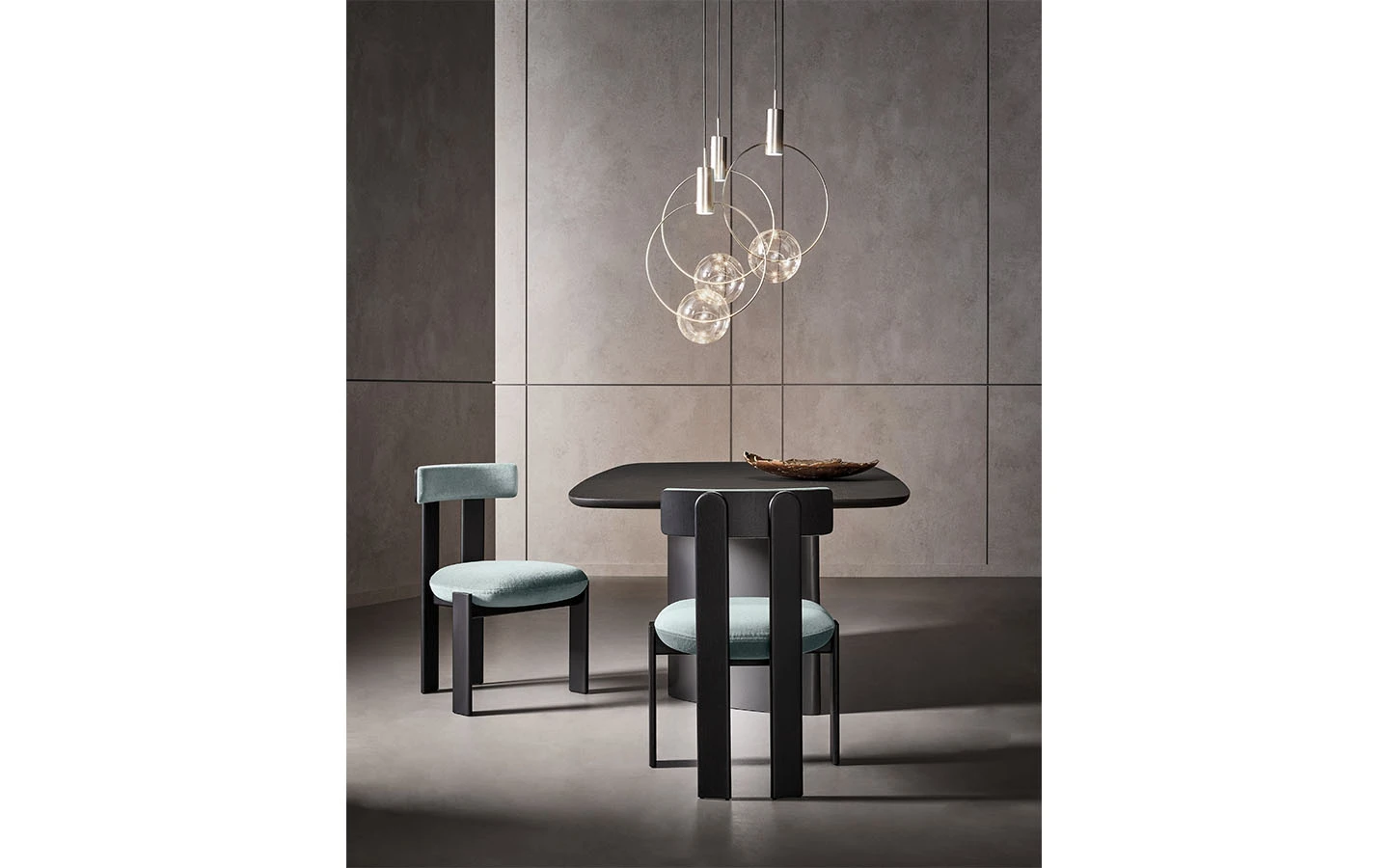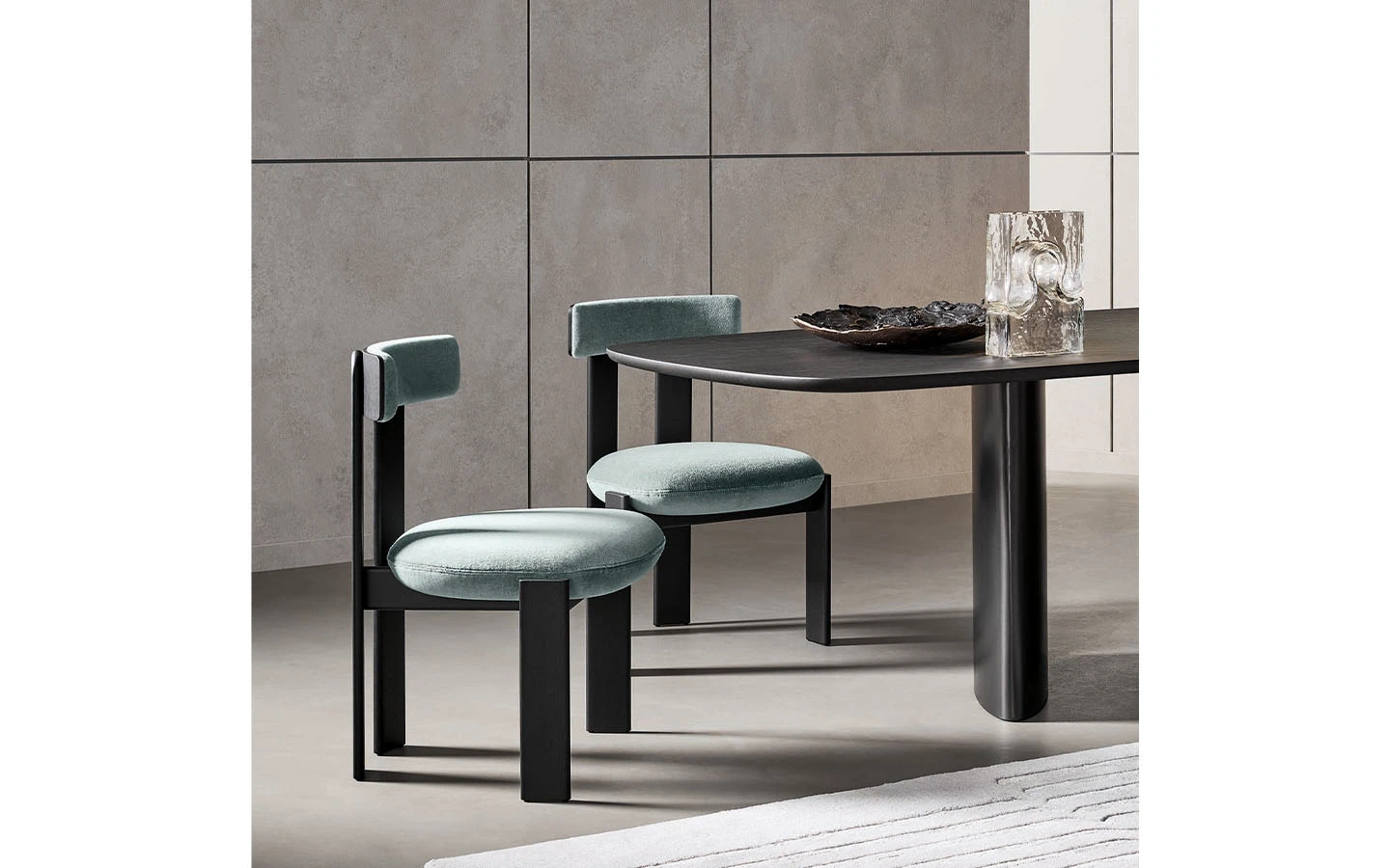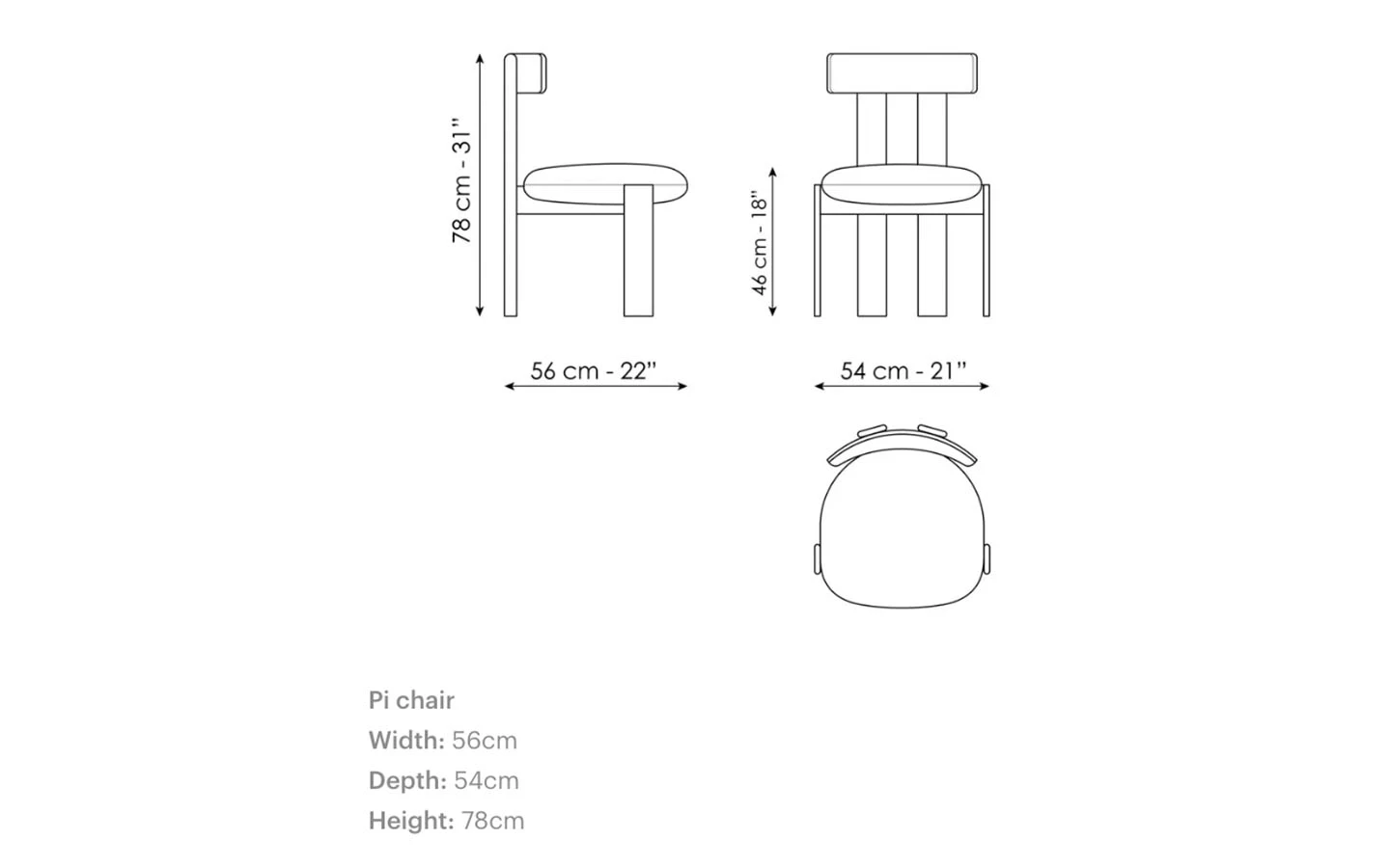 Проектиран от Alain Gilles, столът PI има емблематичен стил и графична и строга рамка, която съчетава минимален стил и максимален комфорт. Меката и заоблена възглавница на седалката почти сякаш се слива с рамката от масивно дърво, а деликатно извитата облегалка напомня формата на математическия знак „Пи“, като хармонично съчетава всички елементи. Столът PI напълно разкрива своя характер, когато е разположен около маса, превръщайки се в център на пространството с отличително присъствие.