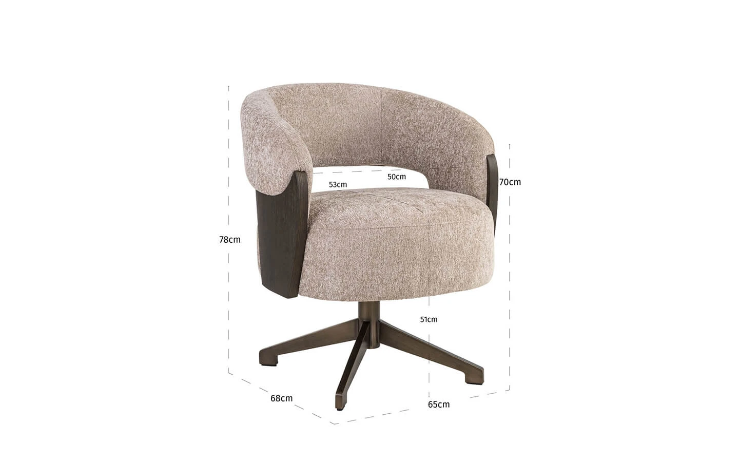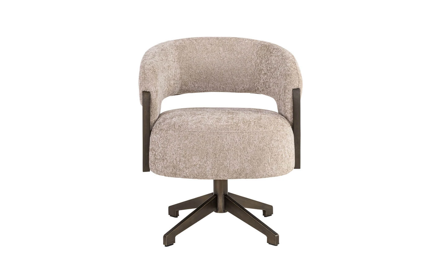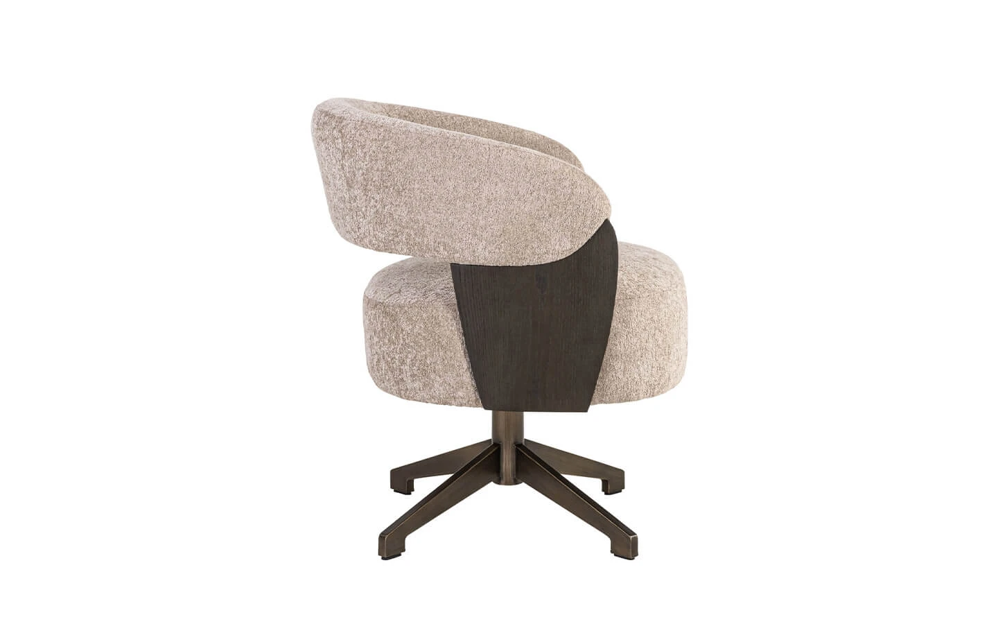 POLLUX BE EASY SAND OAK е трапезен стол от колекцията на нидерландския производител Richmond Interiors. Столът e тапициран в дамаска – Be Easy Sand. Основата е въртяща се и е изработена от метал. Елемент при подлакътниците, изработен от дърво.