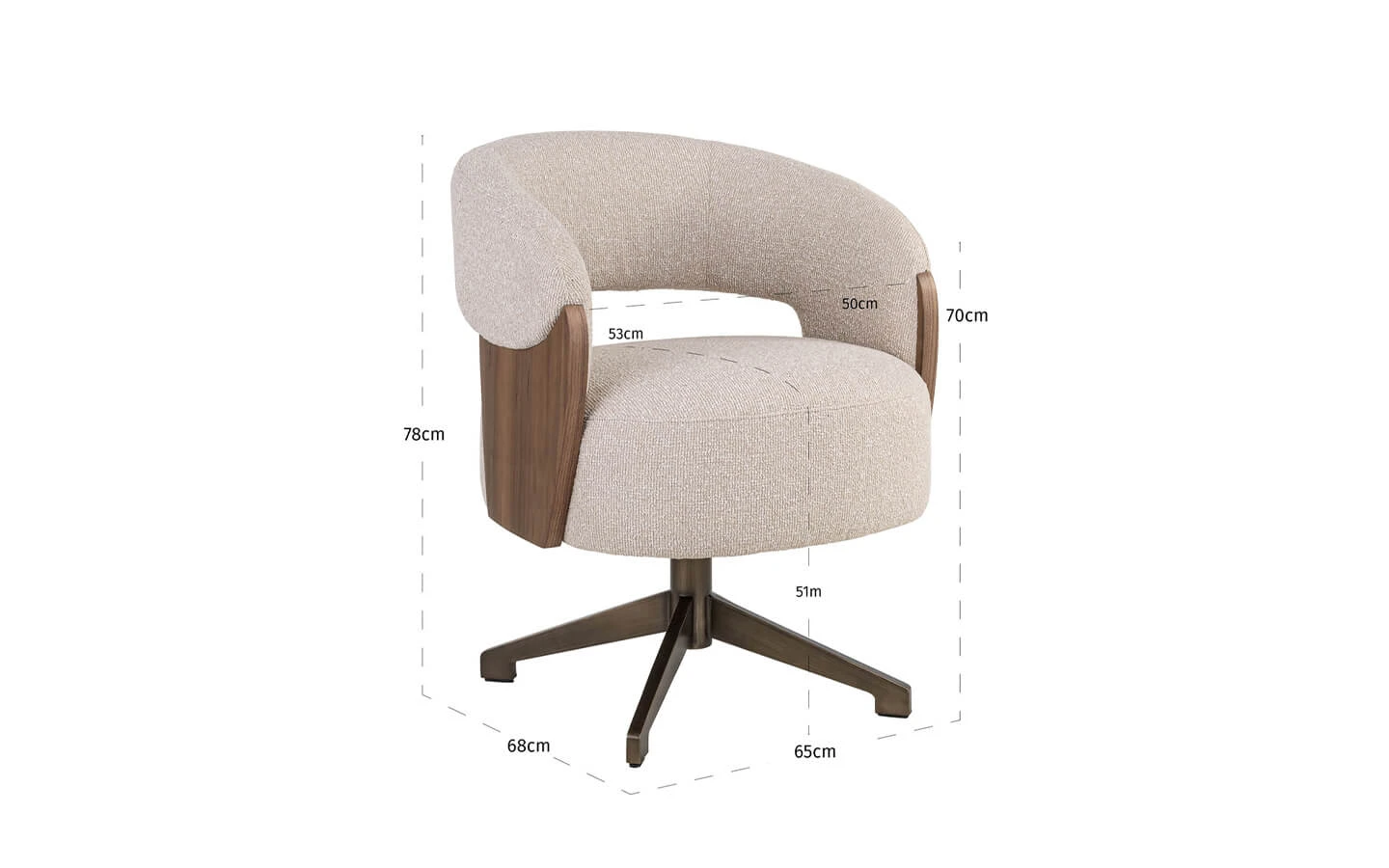 POLLUX LODGE DESERT WALNUT е трапезен стол от колекцията на нидерландския производител Richmond Interiors. Столът e тапициран в дамаска – Lodge desert. Основата е въртяща се и е изработена от метал. Елемент при подлакътниците, изработен от дърво – финиш Walnut.