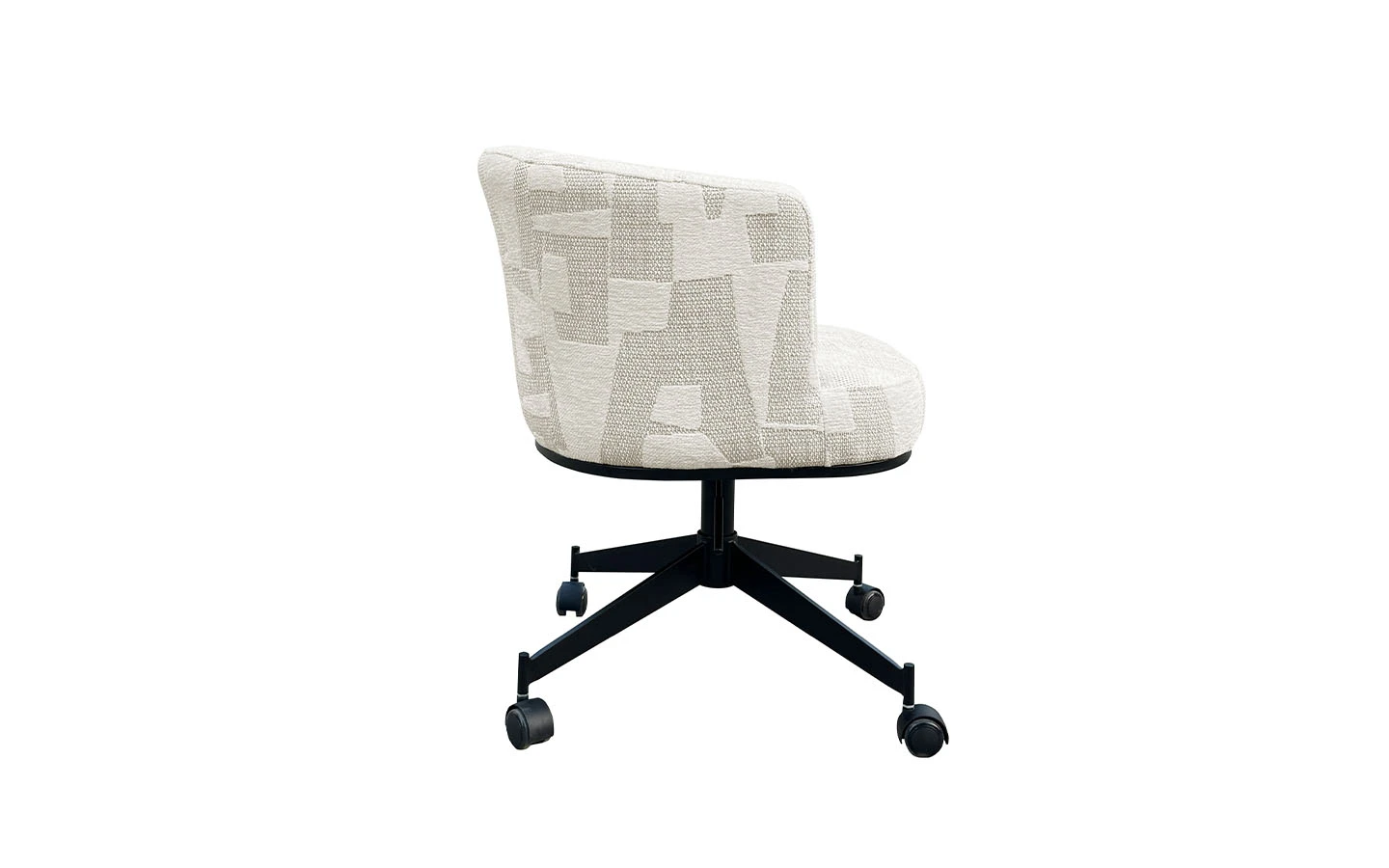 Въртящият се стол ROCHENNE BEIGE GRAFFIC с колелца от Richmond Interiors е стилно и практично допълнение към вашето работно пространство или трапезария. Тапициран е с висококачествен 100% полиестерен плат в бежов графичен десен, който придава модерен и елегантен вид. Столът разполага с извита облегалка и интегрирани подлакътници, осигуряващи комфорт и ергономична опора. Здравата метална основа с черно покритие е оборудвана с 360-градусов въртящ се механизъм и колелца, които предоставят гъвкавост и лесно придвижване.