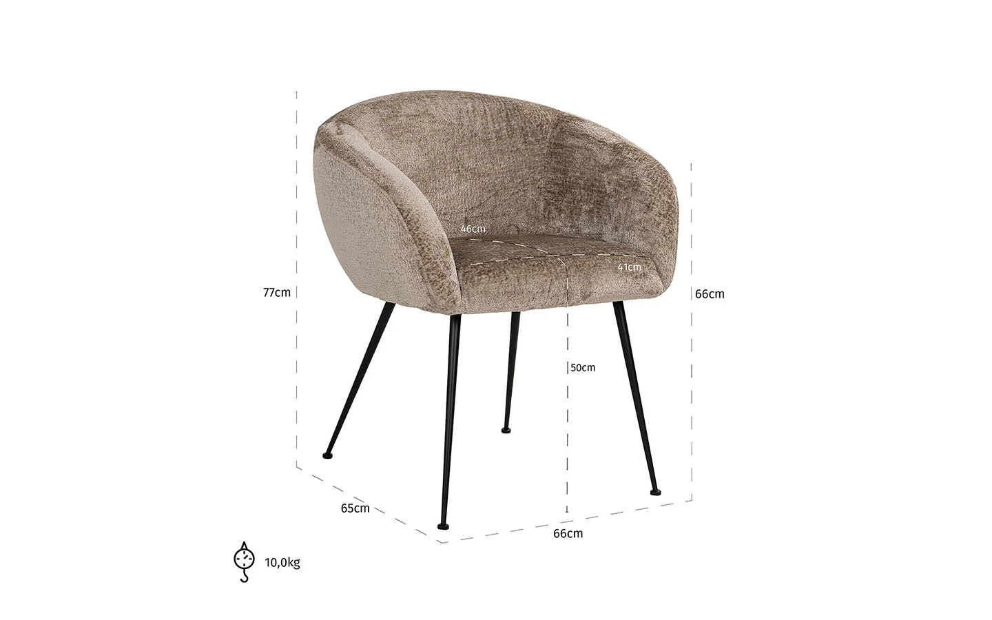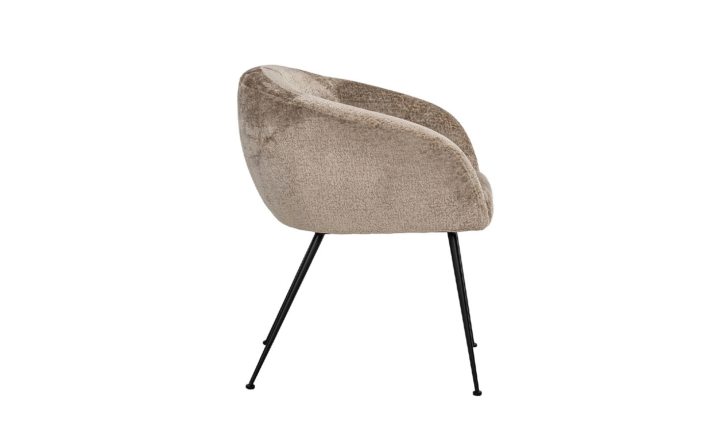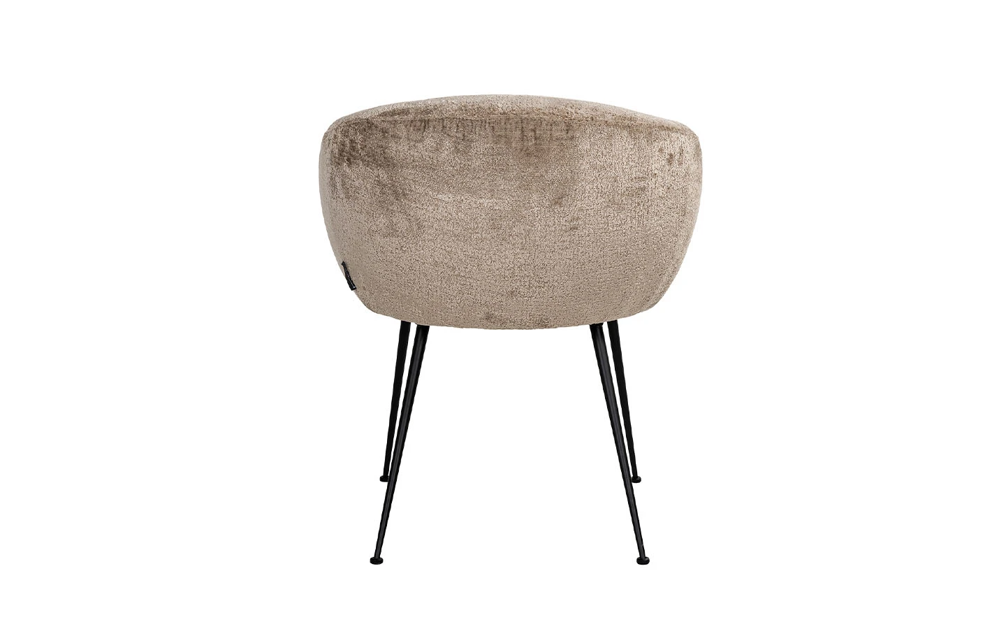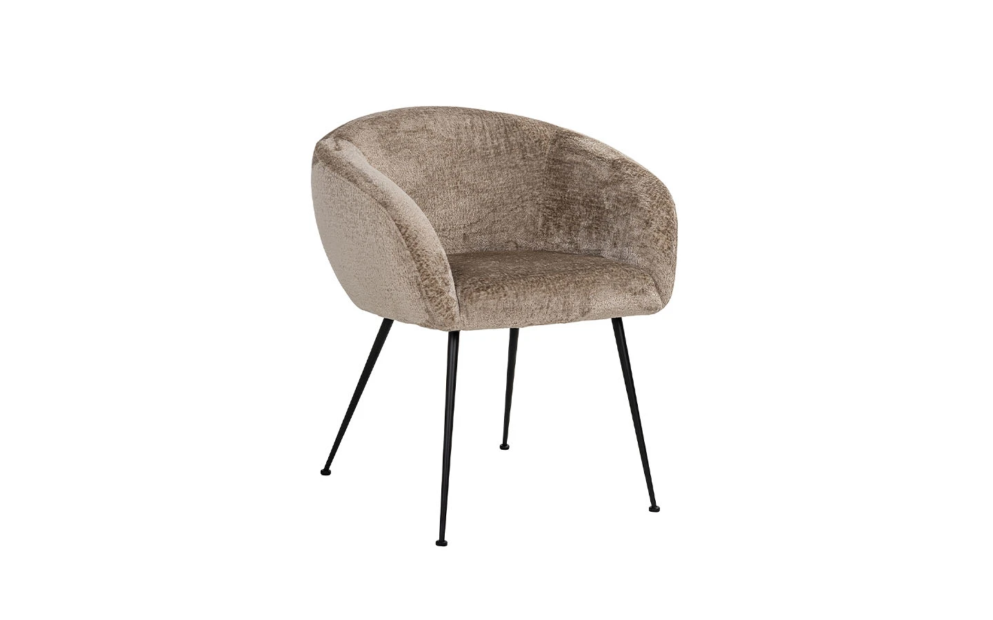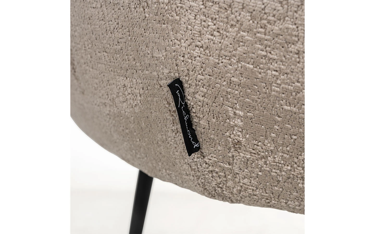 RUBY TAUPE CHENILLE е трапезарен стол от колекцията на нидерландския производител Richmond Interiors. Основата е изработена от метал – финиш Black. Столът е тапициран в дамаска – Bergen 104 taupe chenille.