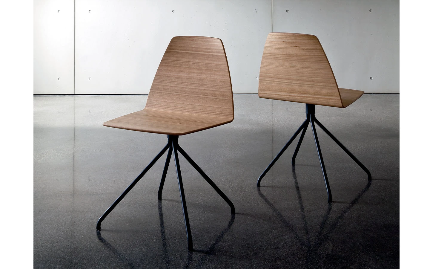 Цената е за стол със седалка и облегалка, изработени от фурнировано дърво и метална основа в начална категория.
