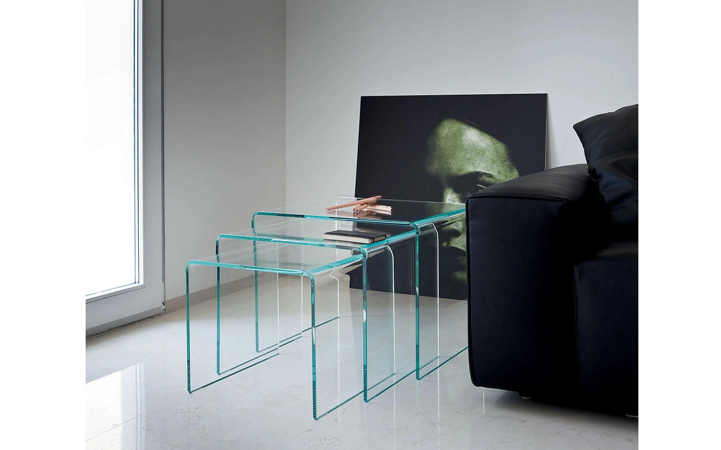 BRIDGE TRIX е италианска странична маса от колекцията на италианския производител Sovet. Структурата на масата може да бъде изработена от извито прозрачно, опушено стъкло, стъкло в един цвят или в комбинация от два цвята по избор. Цената на масата се формира на база на избора на размер и финиш на стъклото.